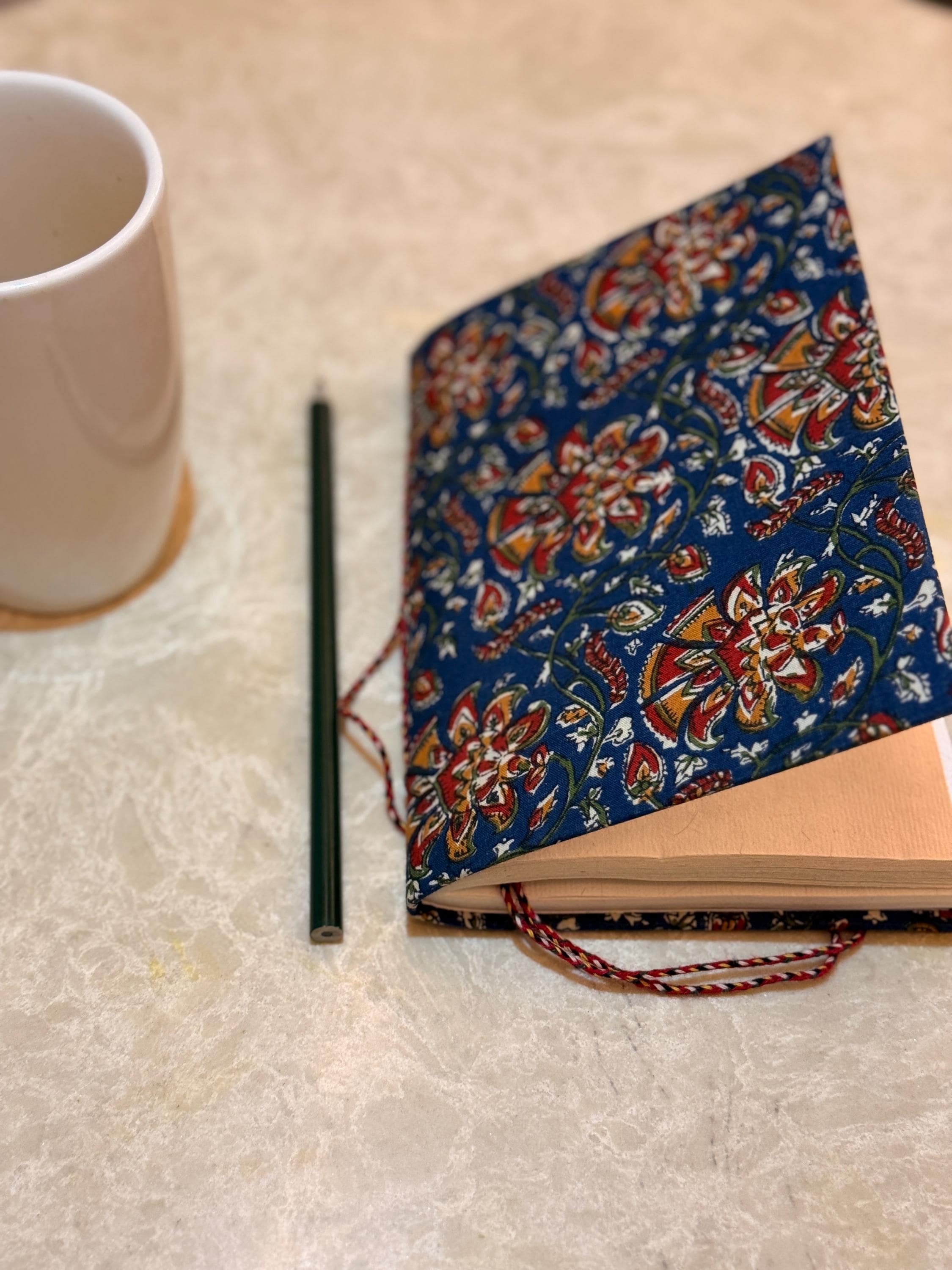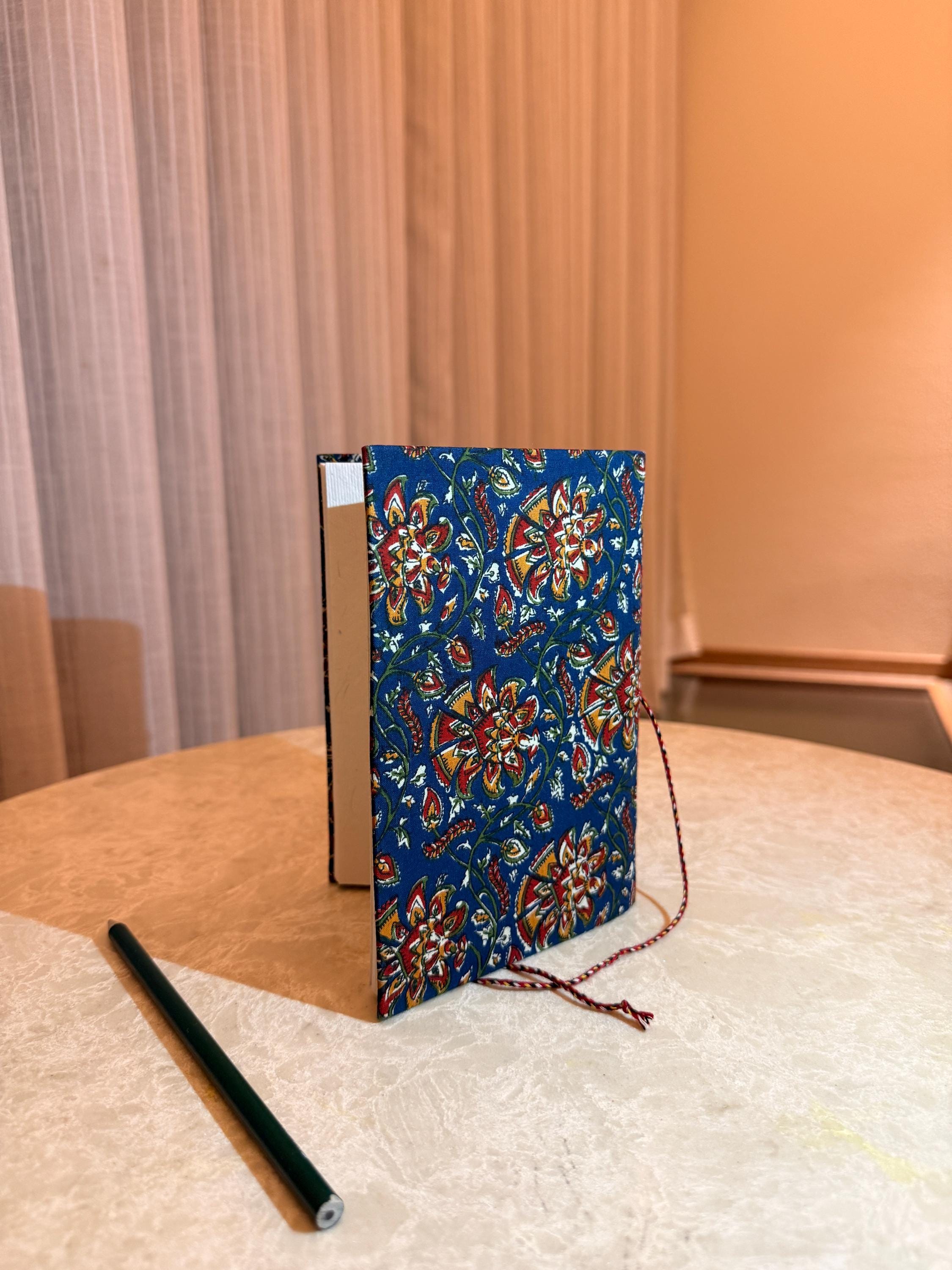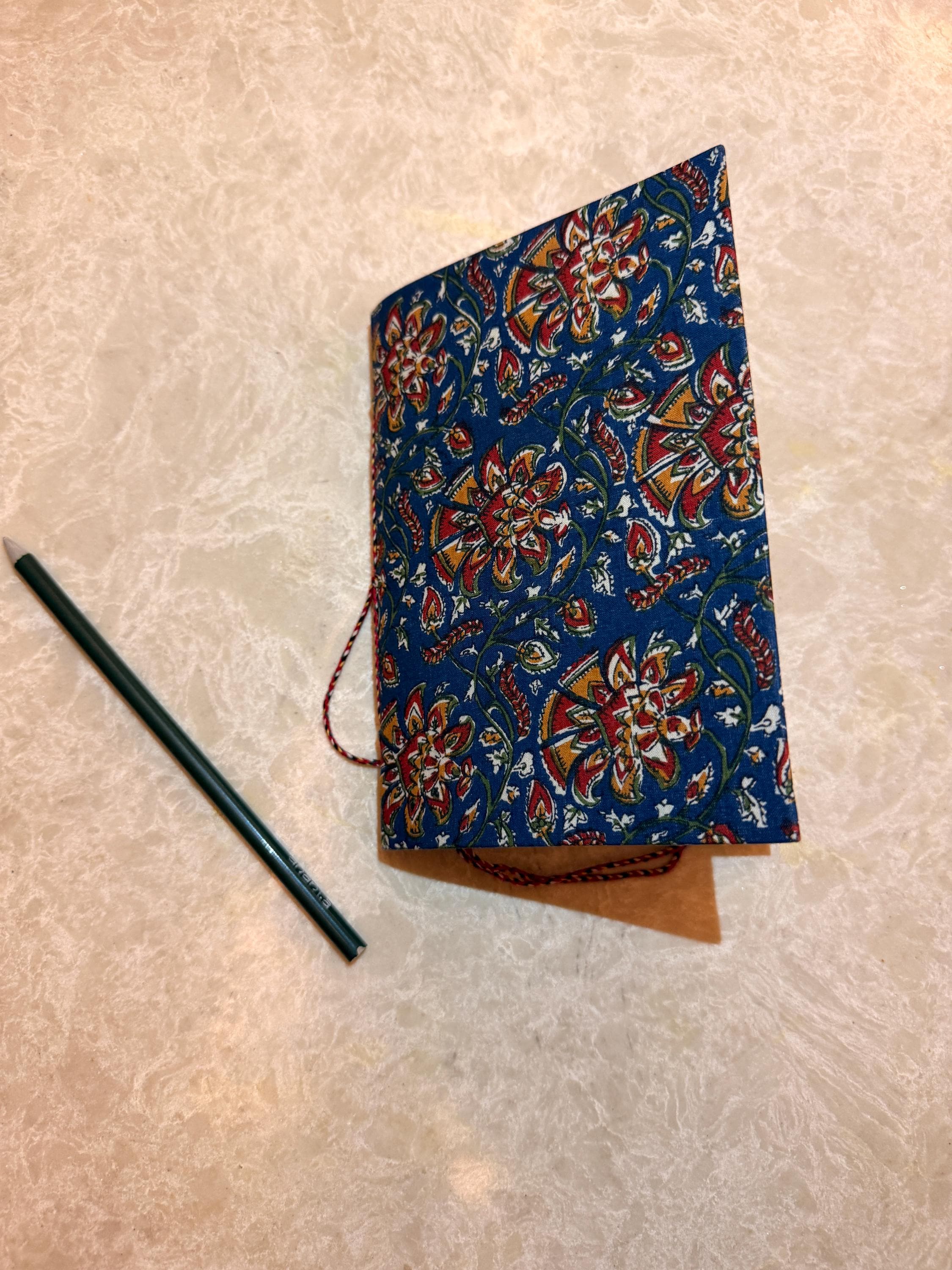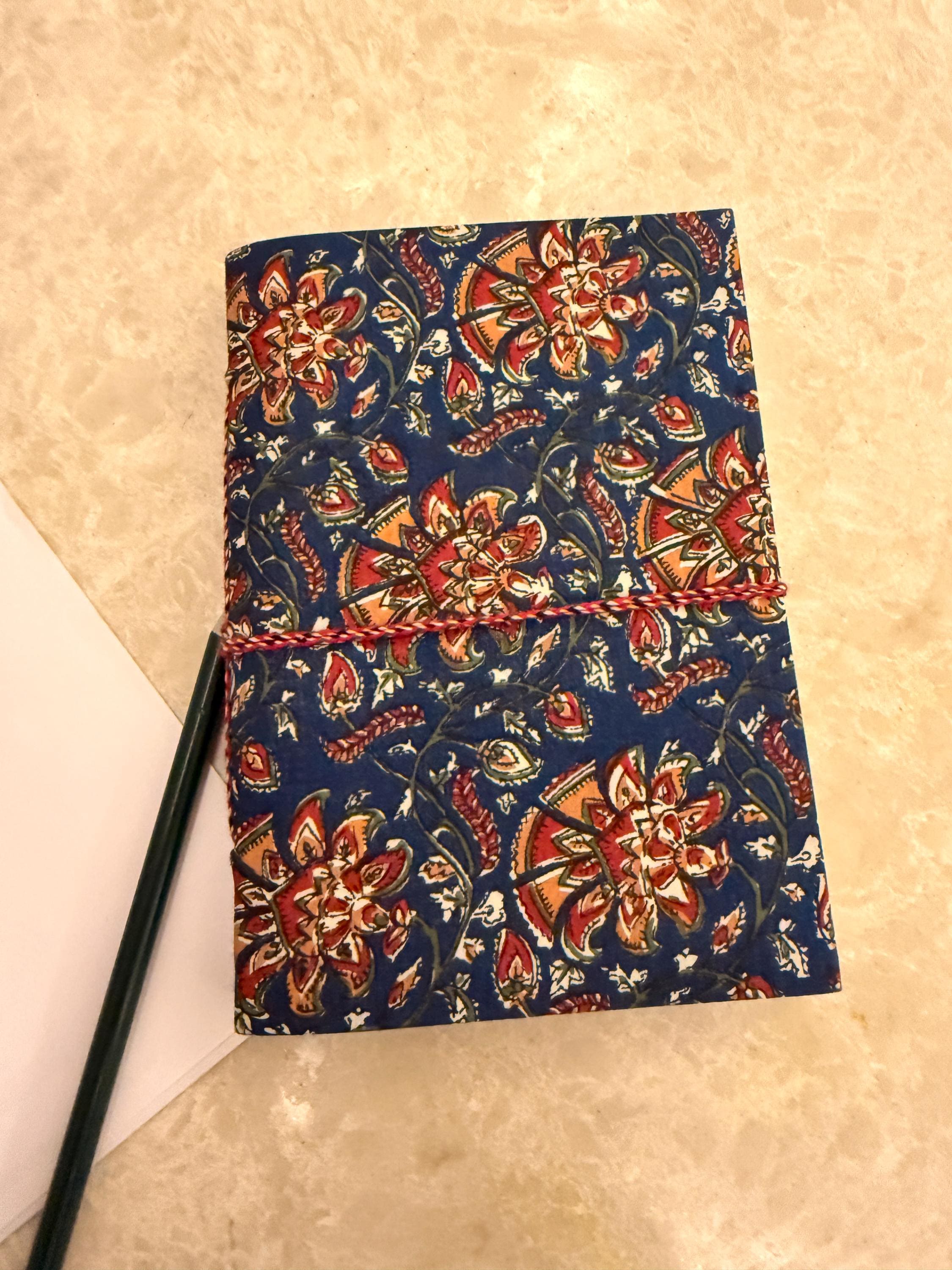 Bring beauty and intention to your everyday writing with this handmade block print fabric diary.
