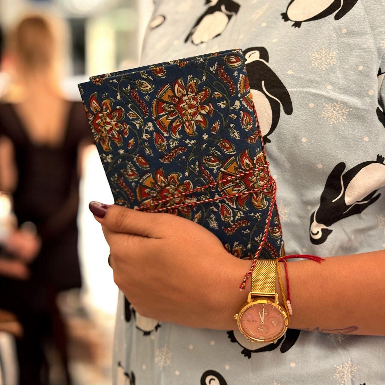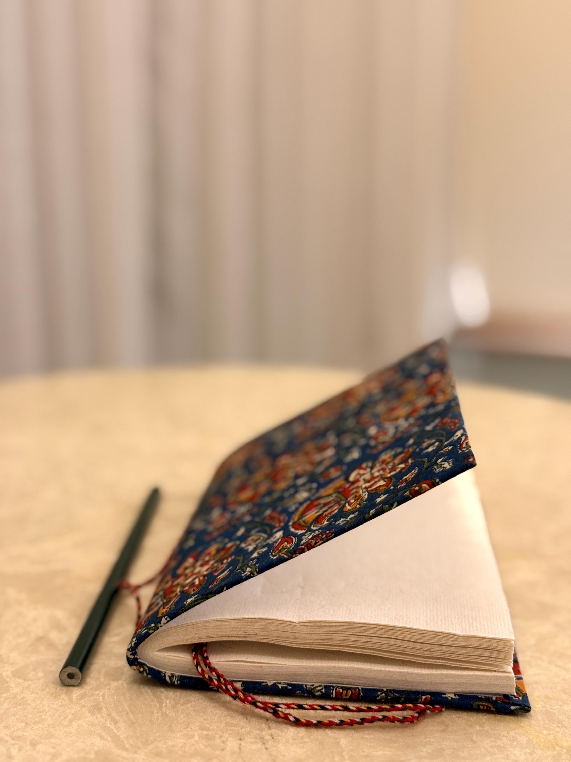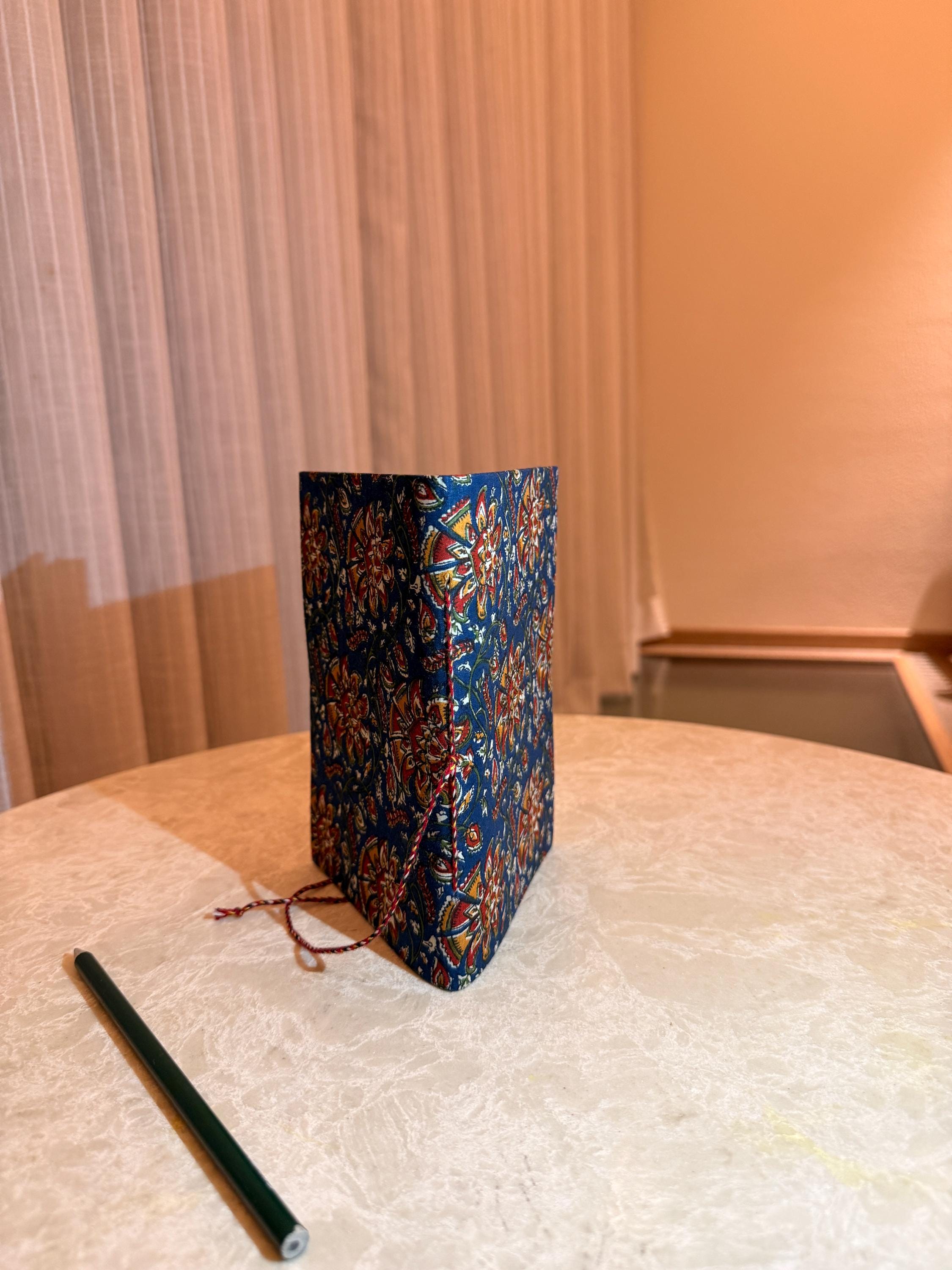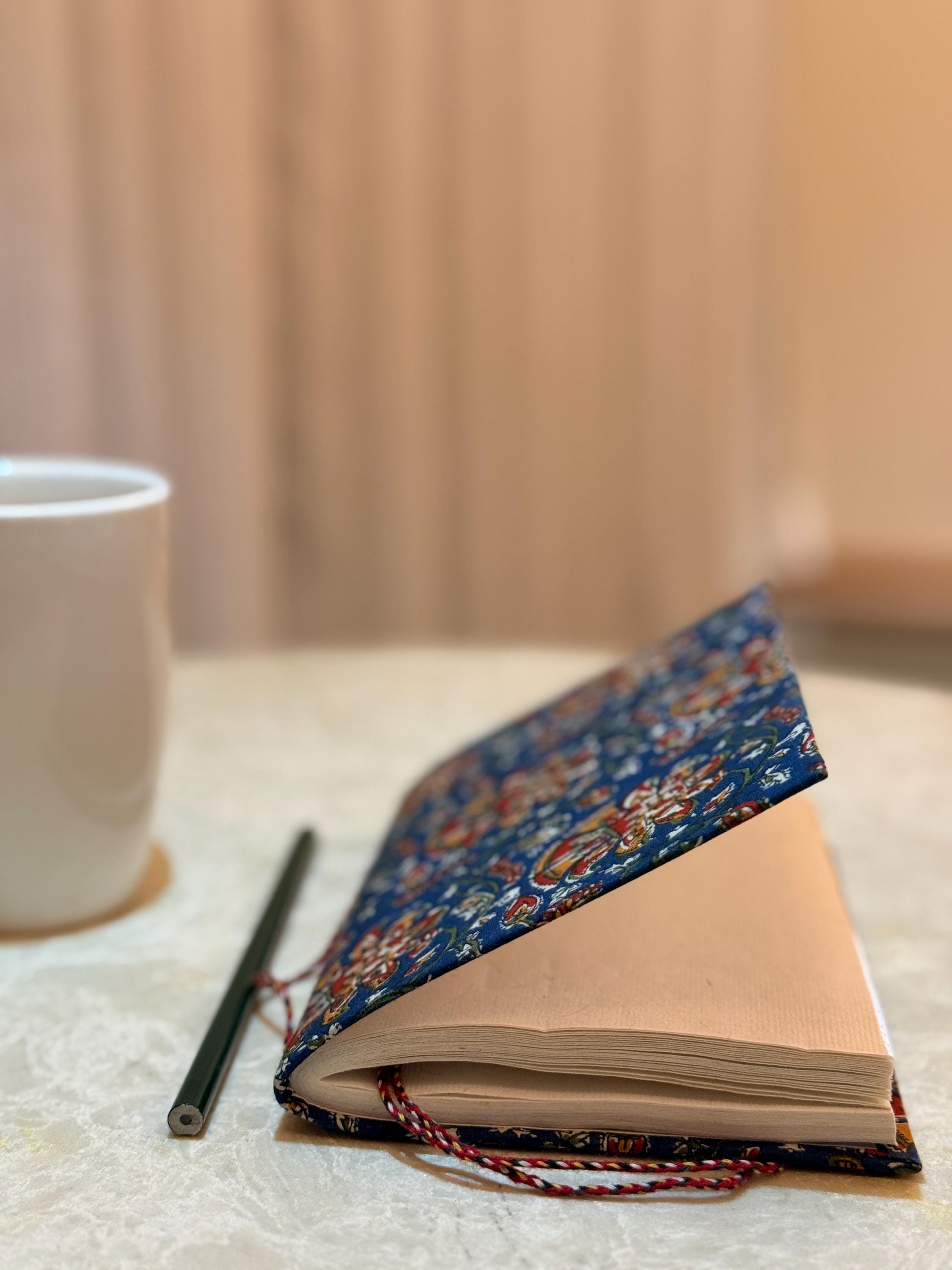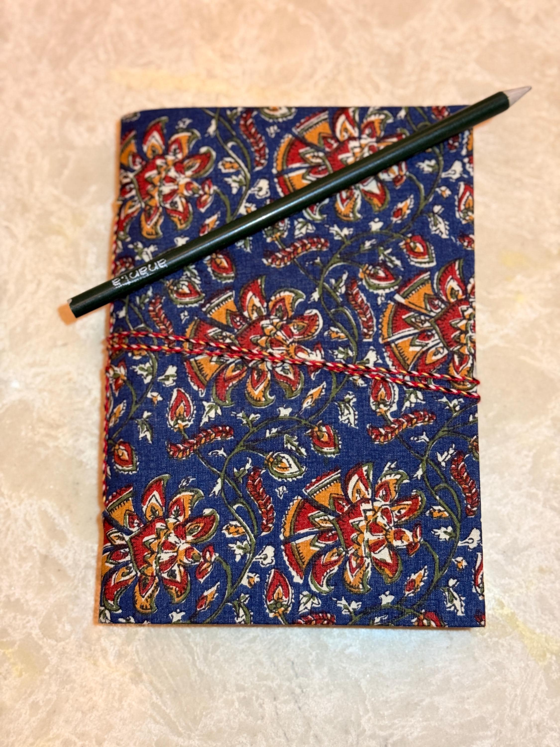 Bring beauty and intention to your everyday writing with this handmade block print fabric diary.