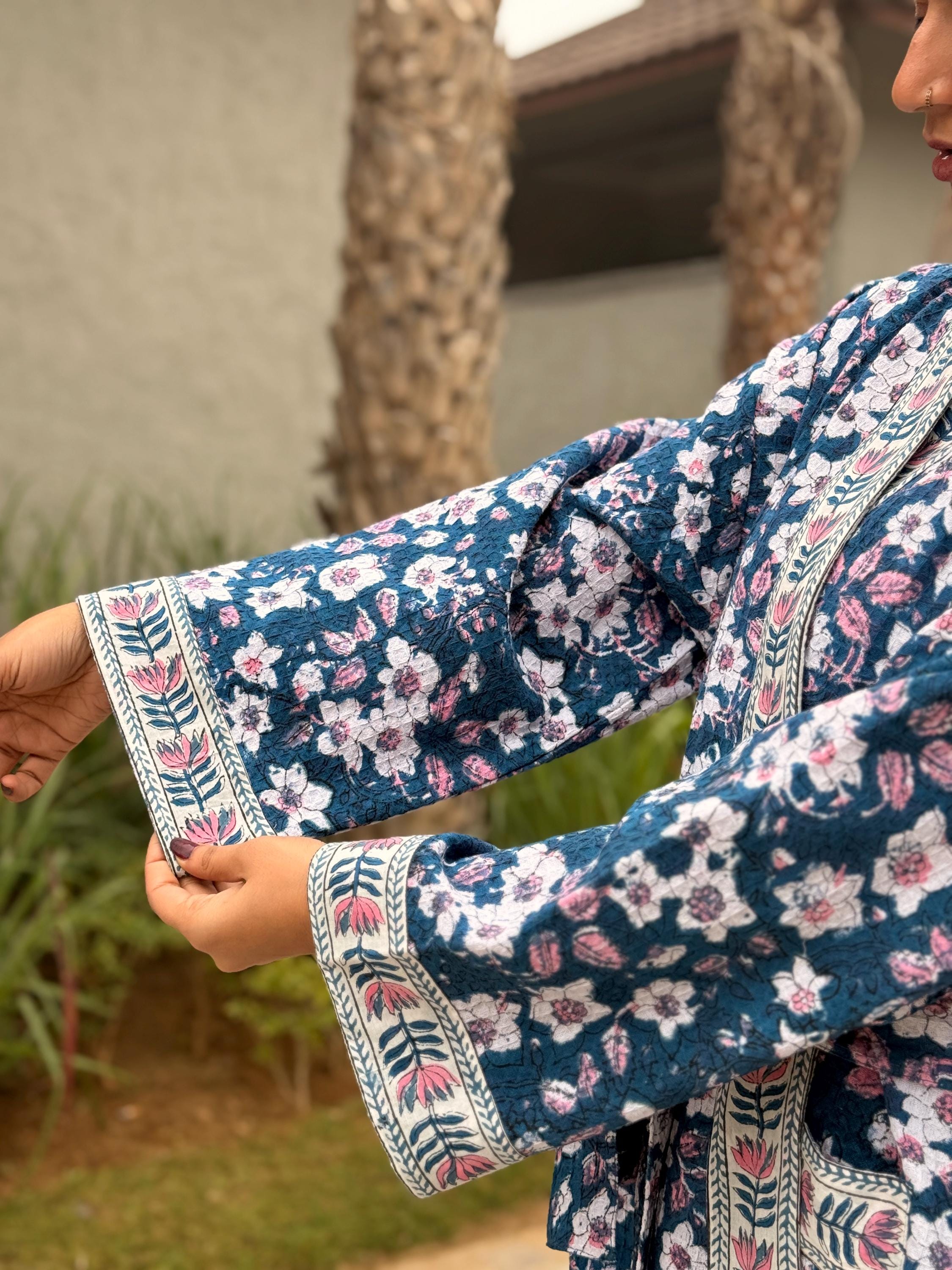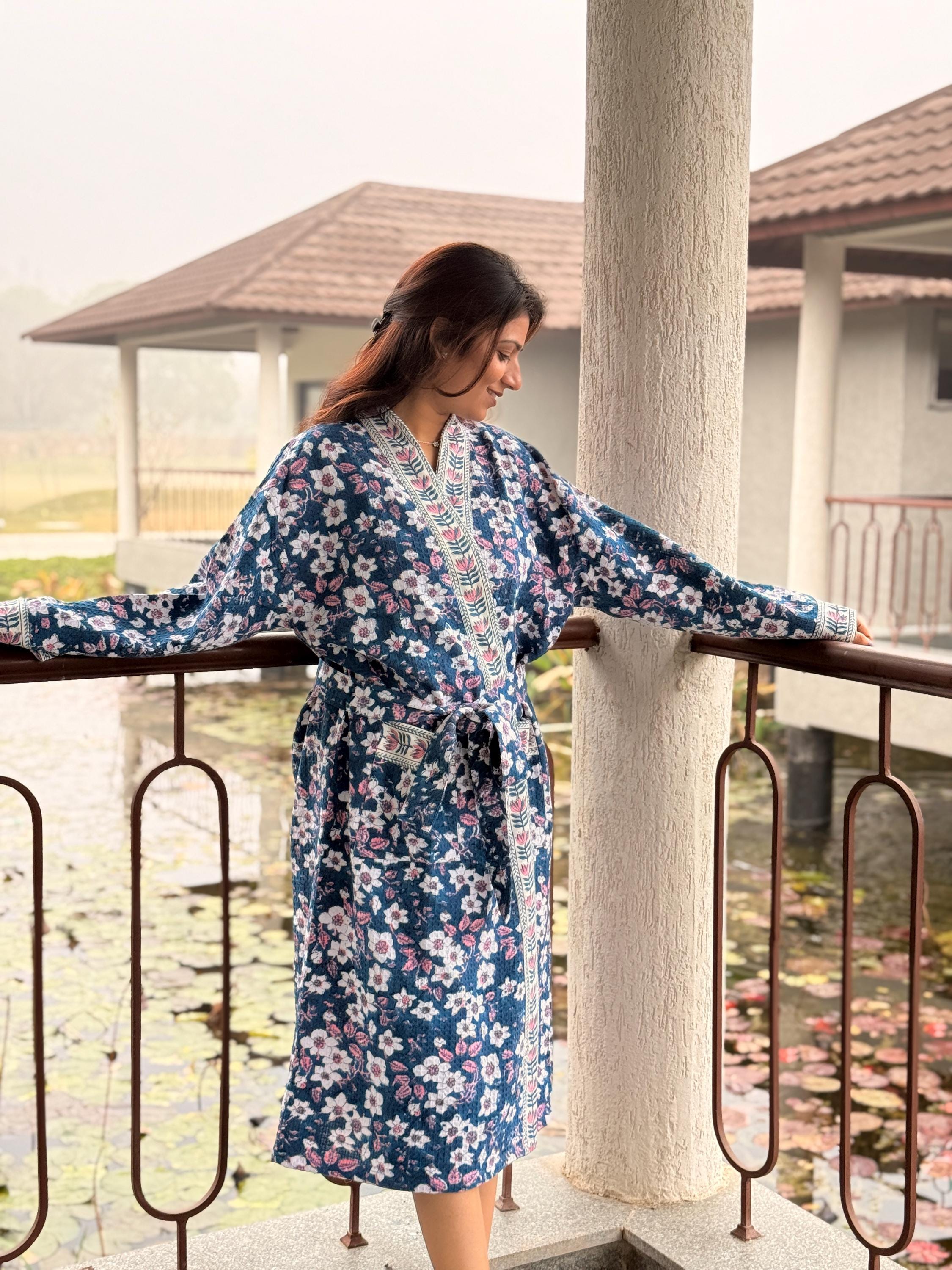 Experience relaxed elegance with our Hand Block Printed Cotton Waffle Kimono Robe, thoughtfully handcrafted for comfort, beauty, and everyday luxury.