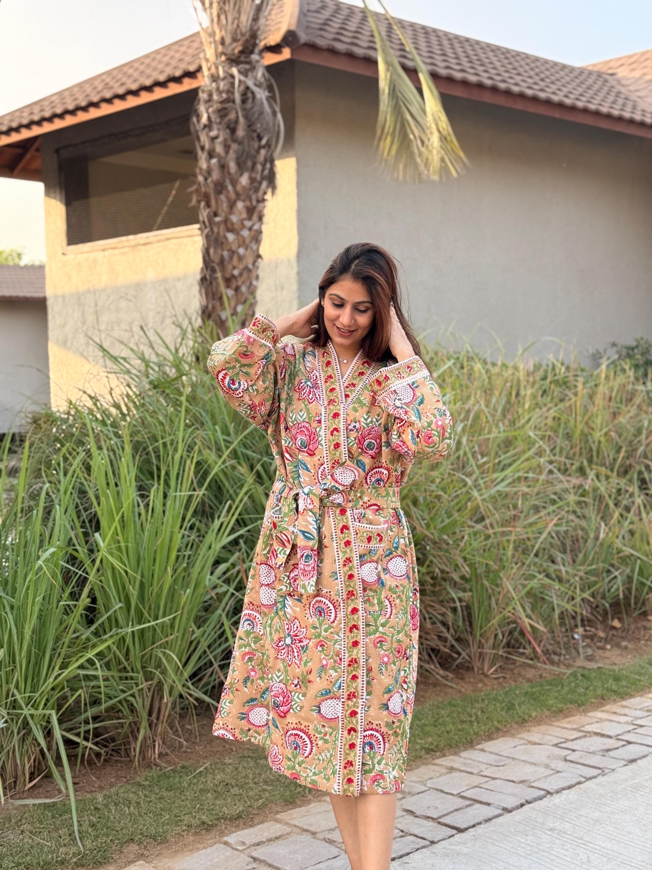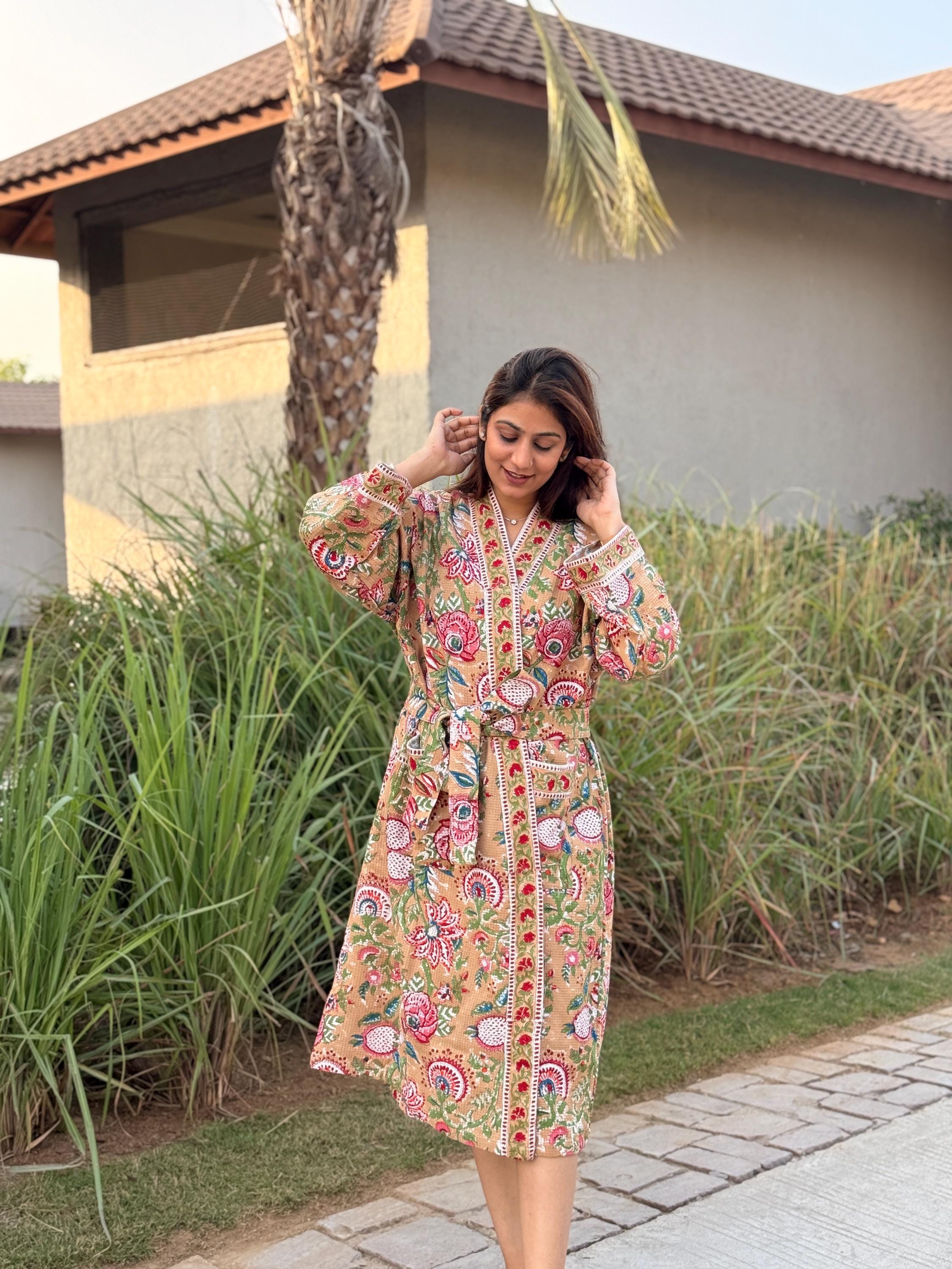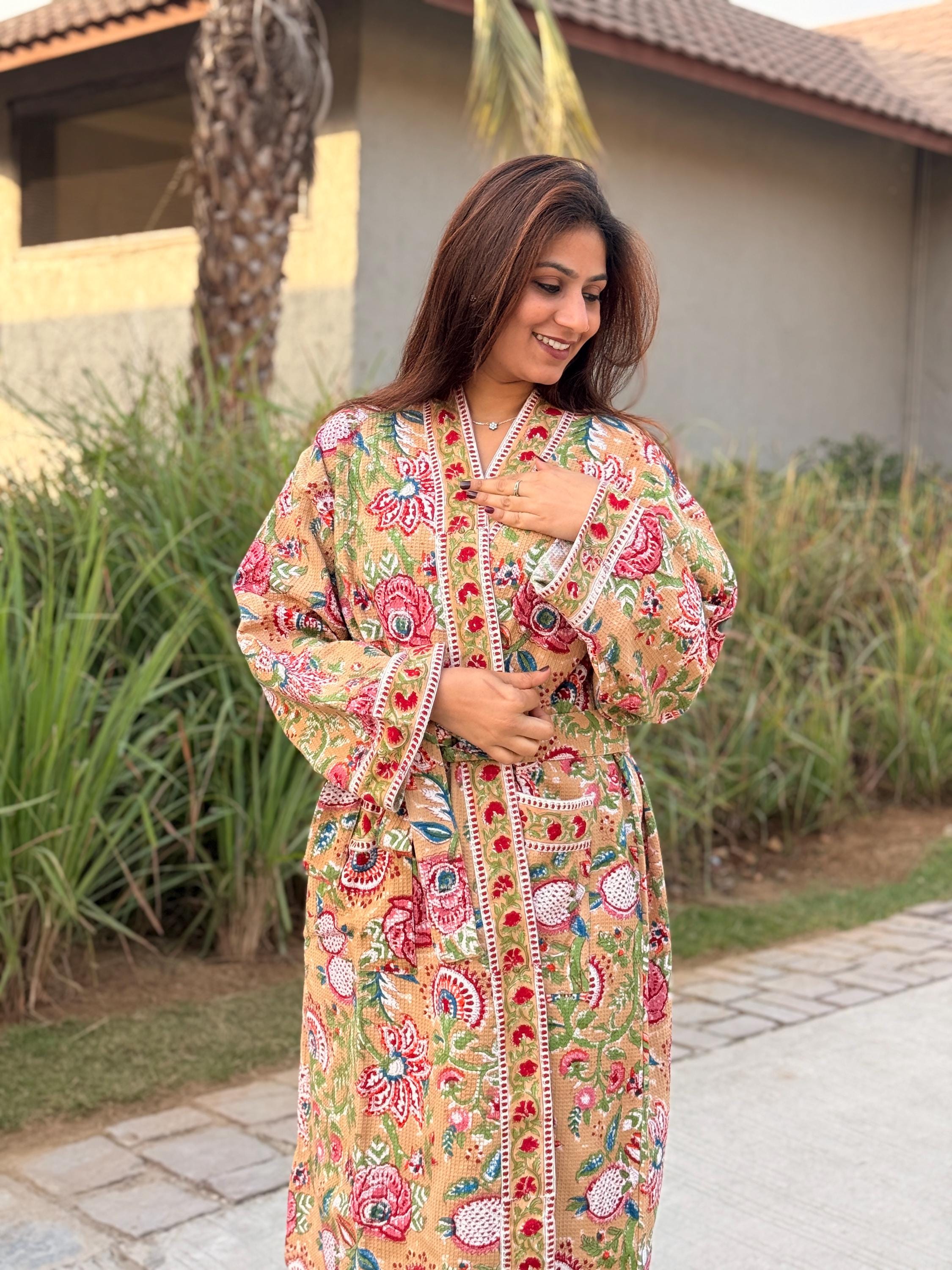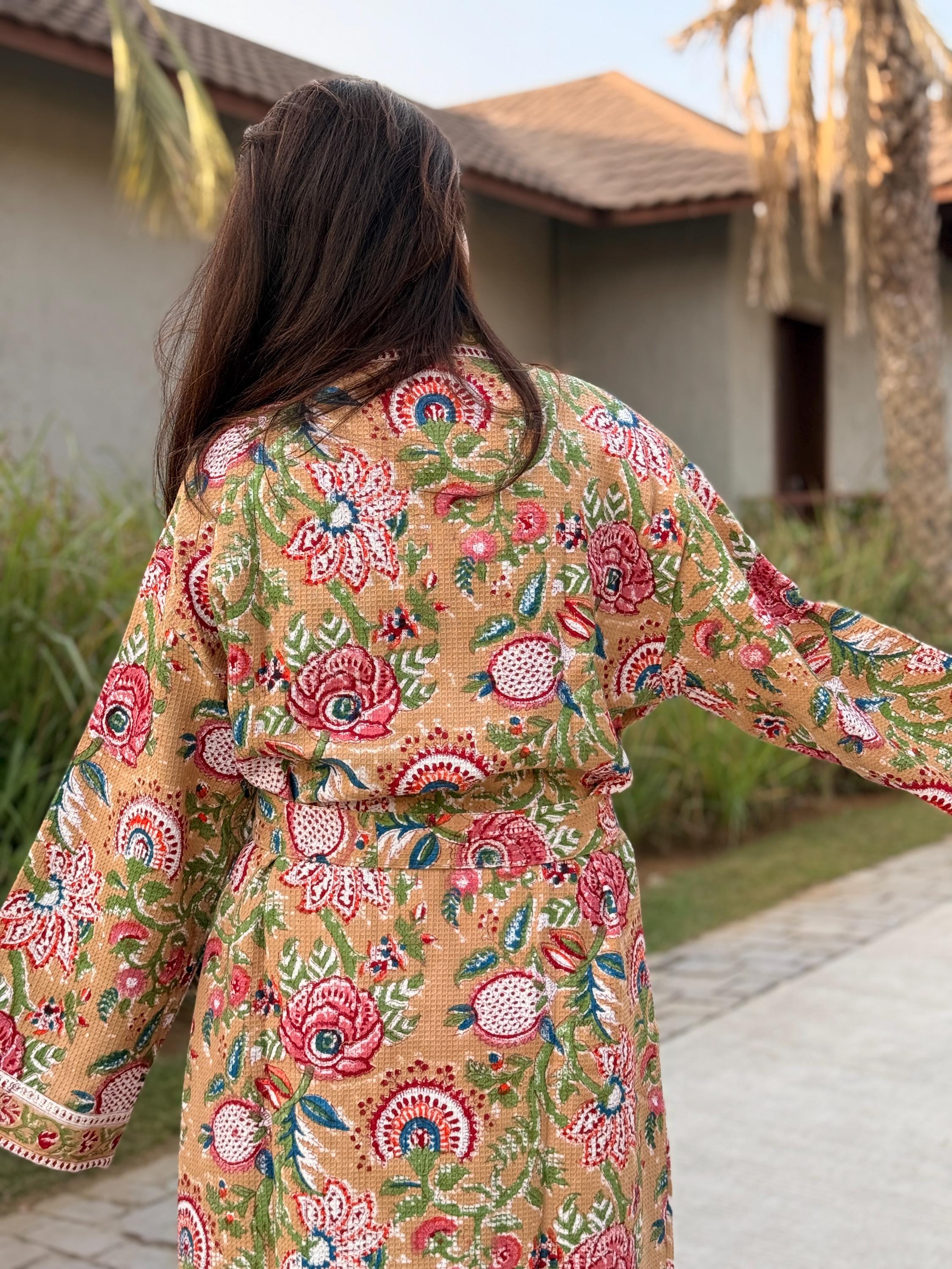 Celebrate heritage craftsmanship and everyday comfort with our Hand Block Printed Cotton Waffle Kimono Robe, lovingly handmade using traditional Indian techniques.