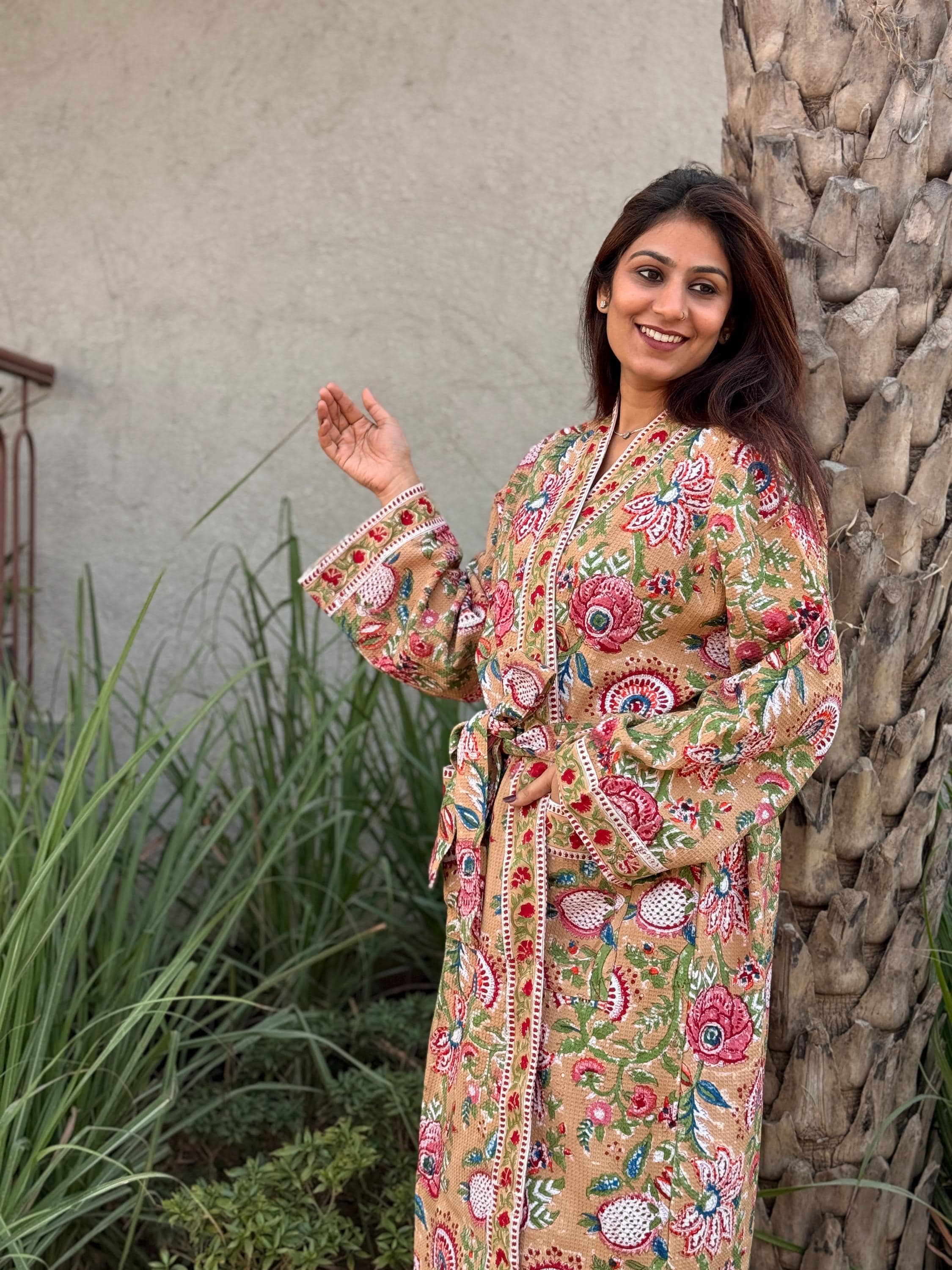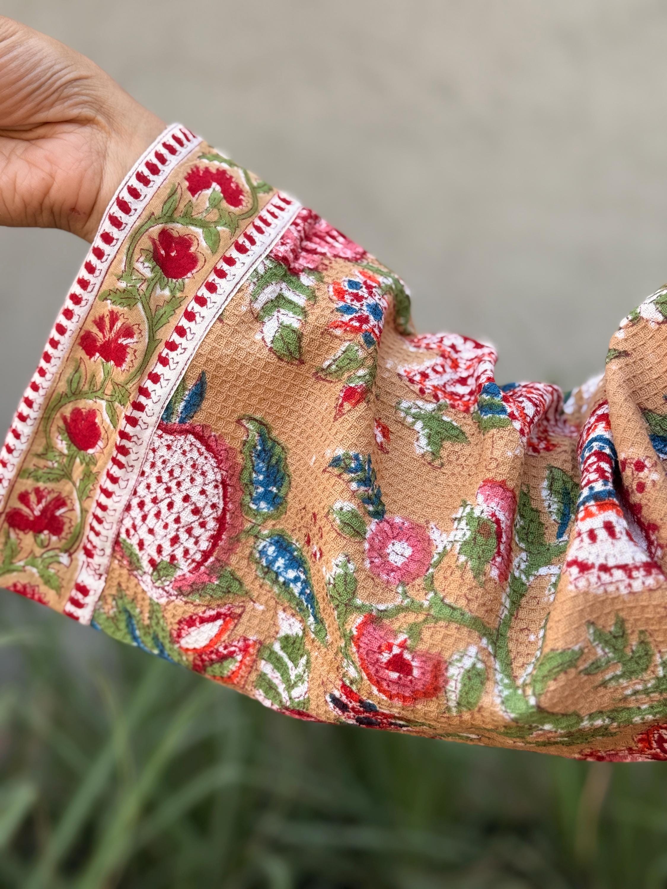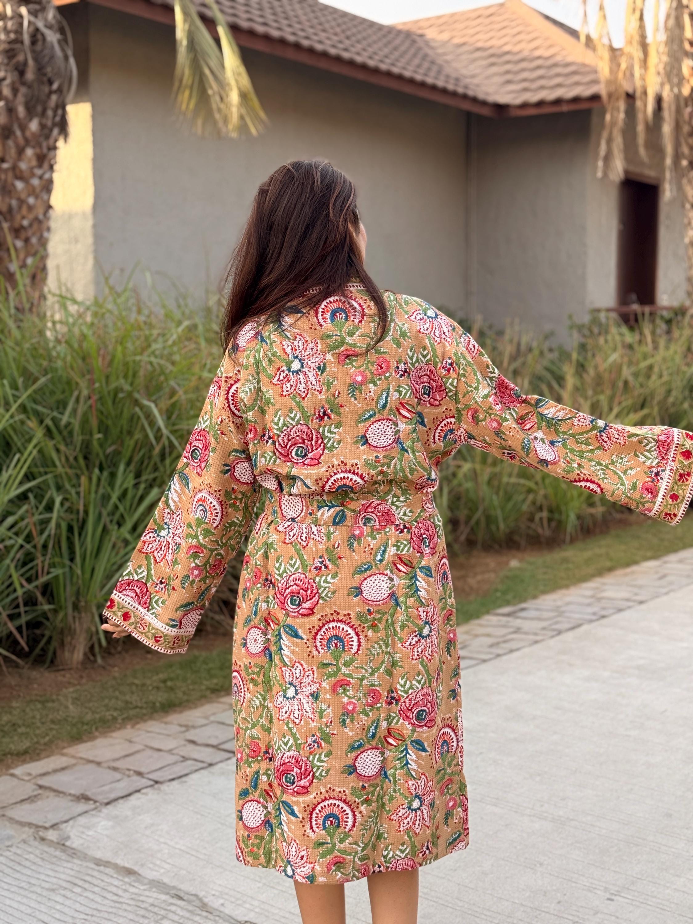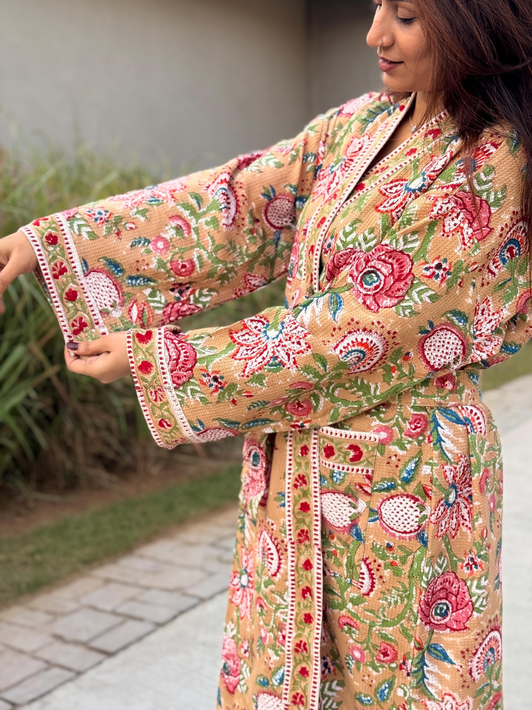 Celebrate heritage craftsmanship and everyday comfort with our Hand Block Printed Cotton Waffle Kimono Robe, lovingly handmade using traditional Indian techniques.