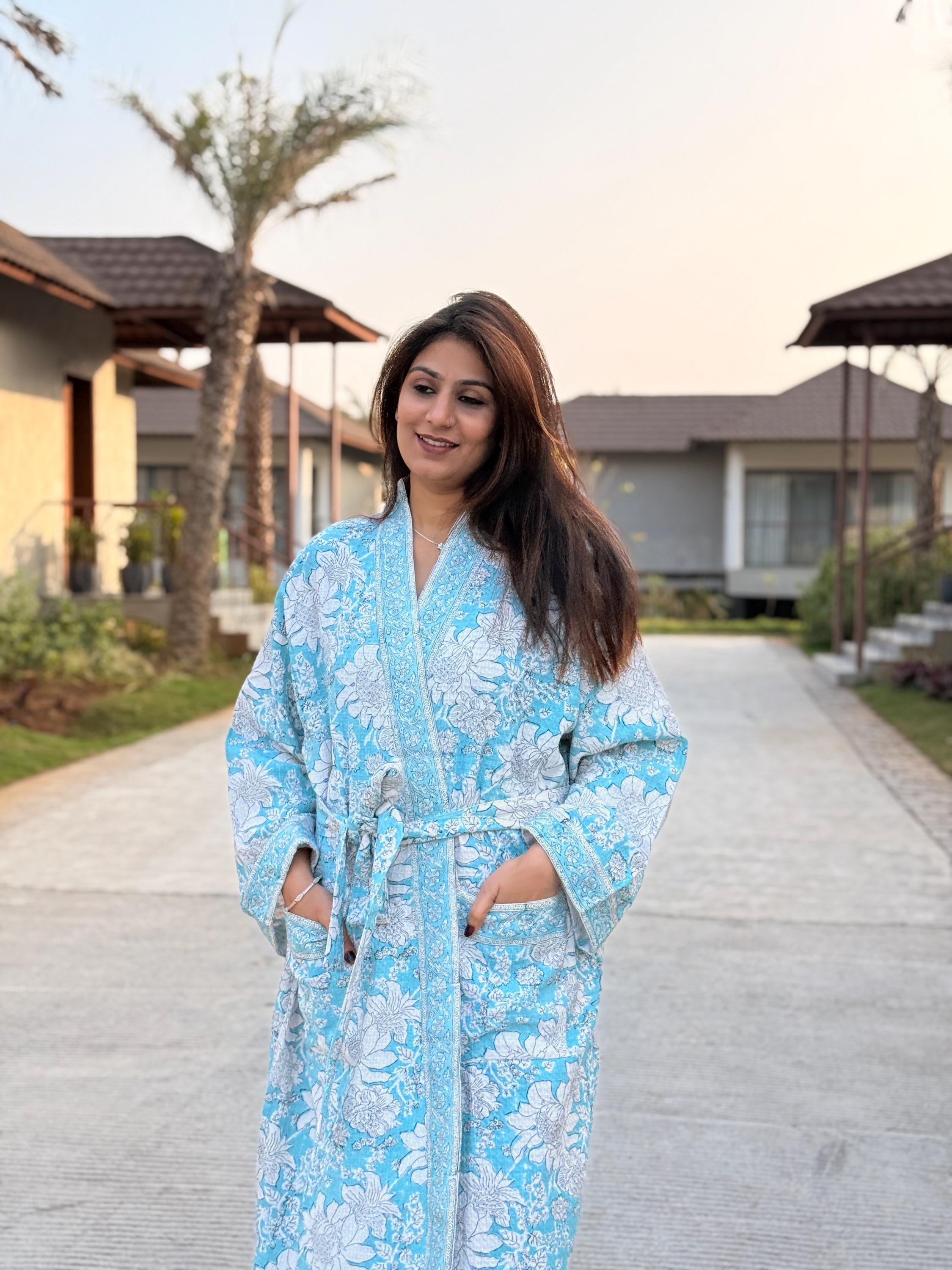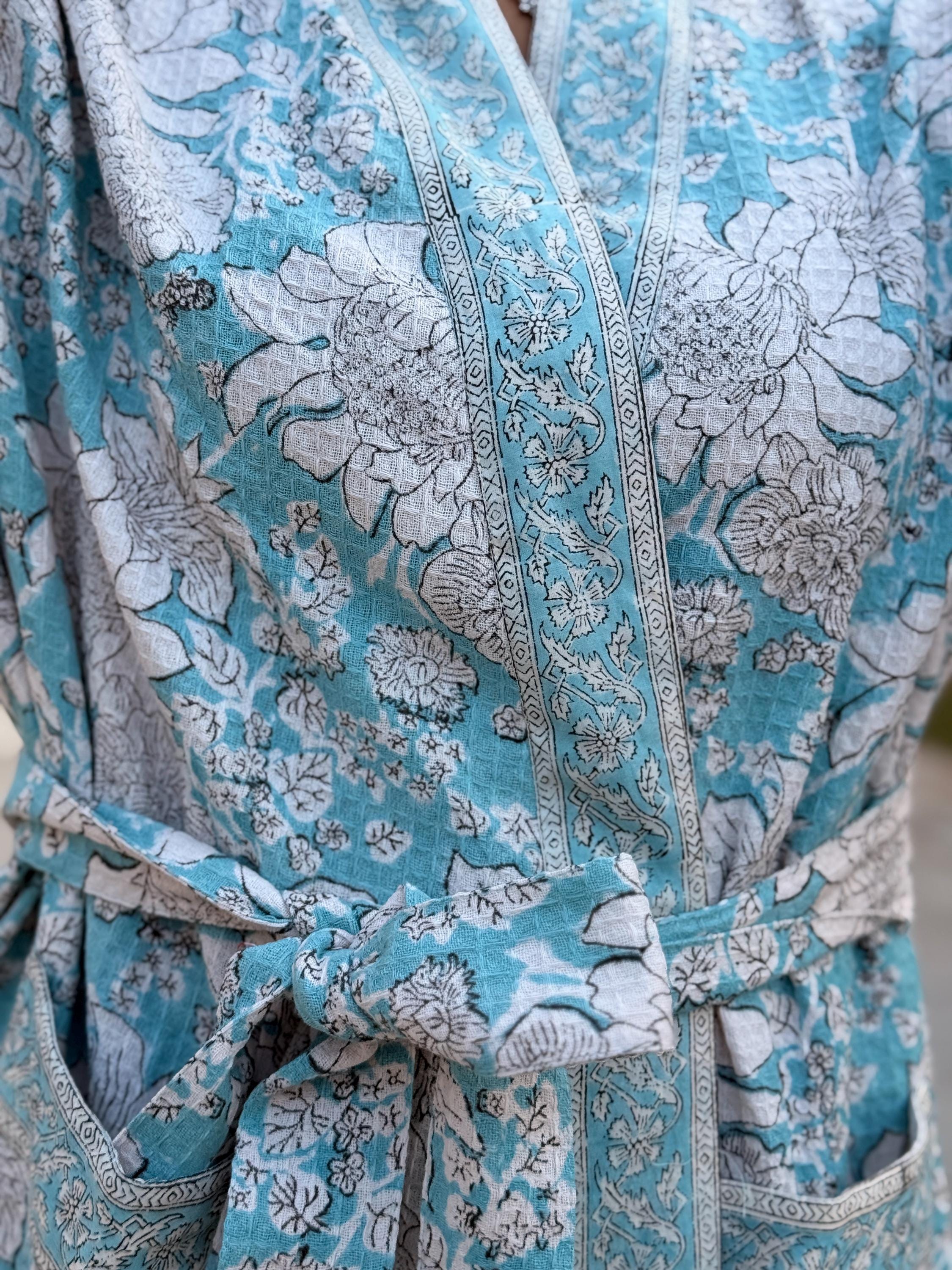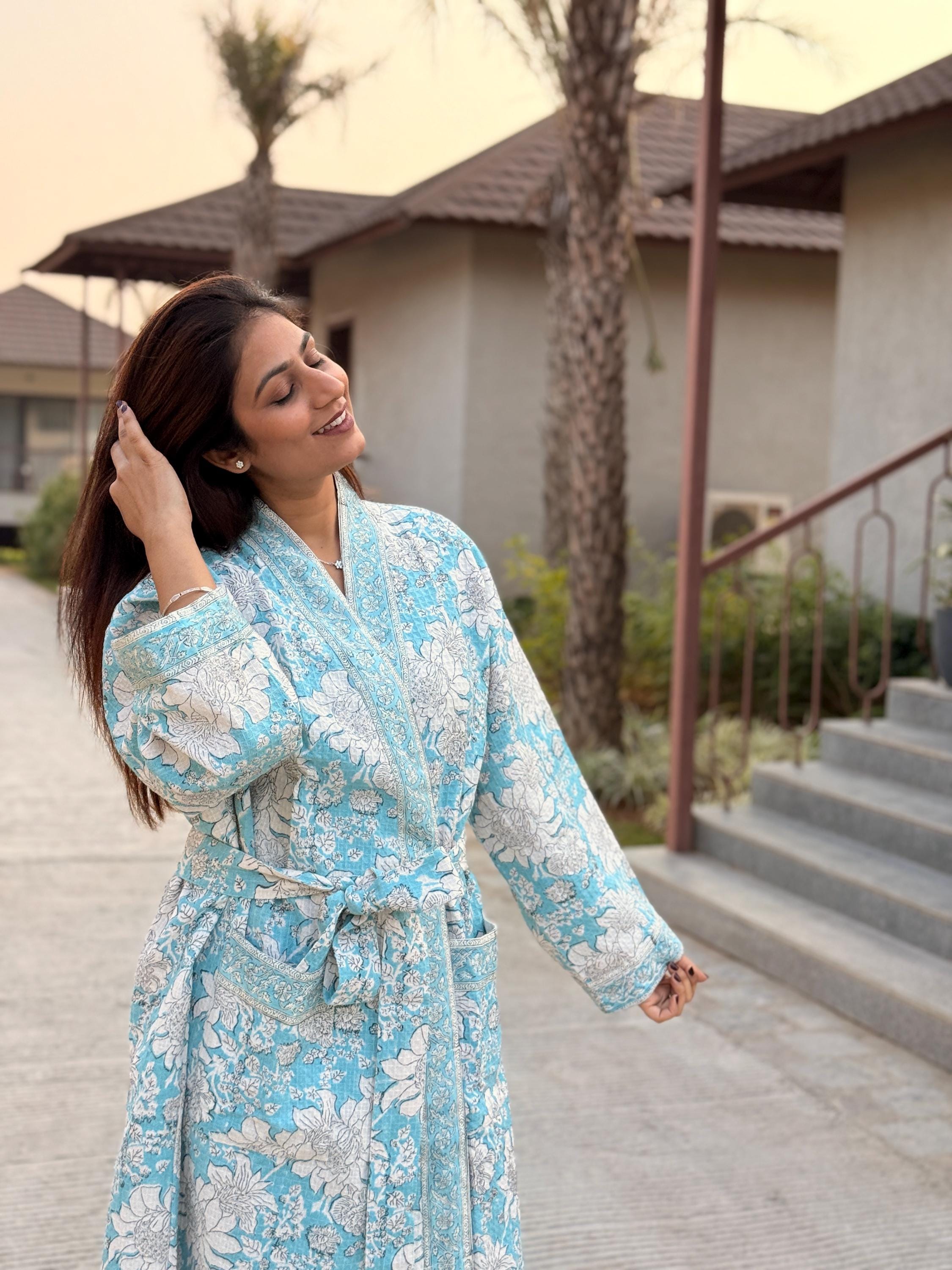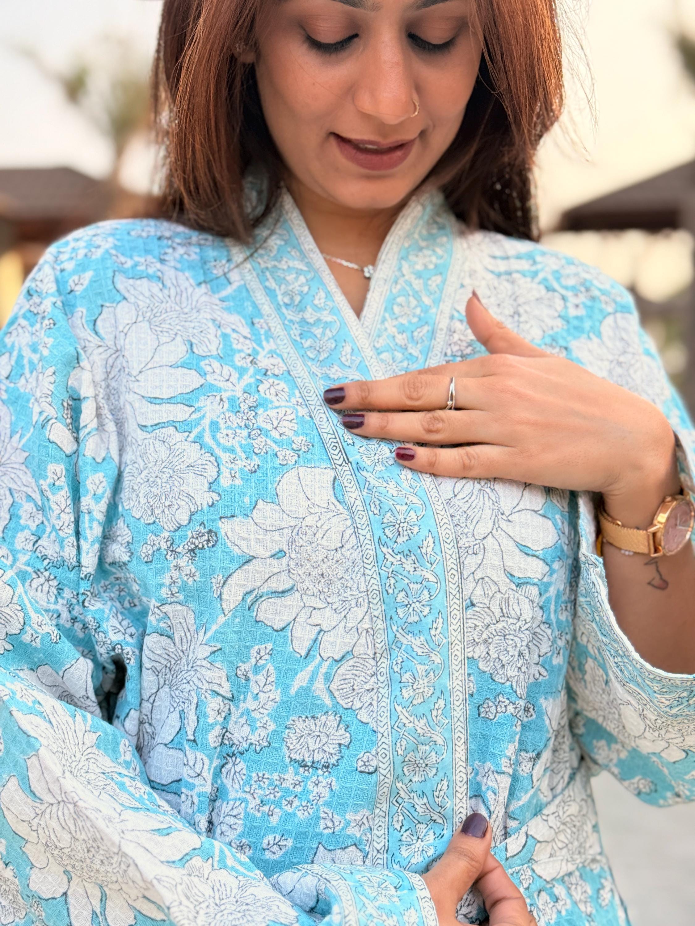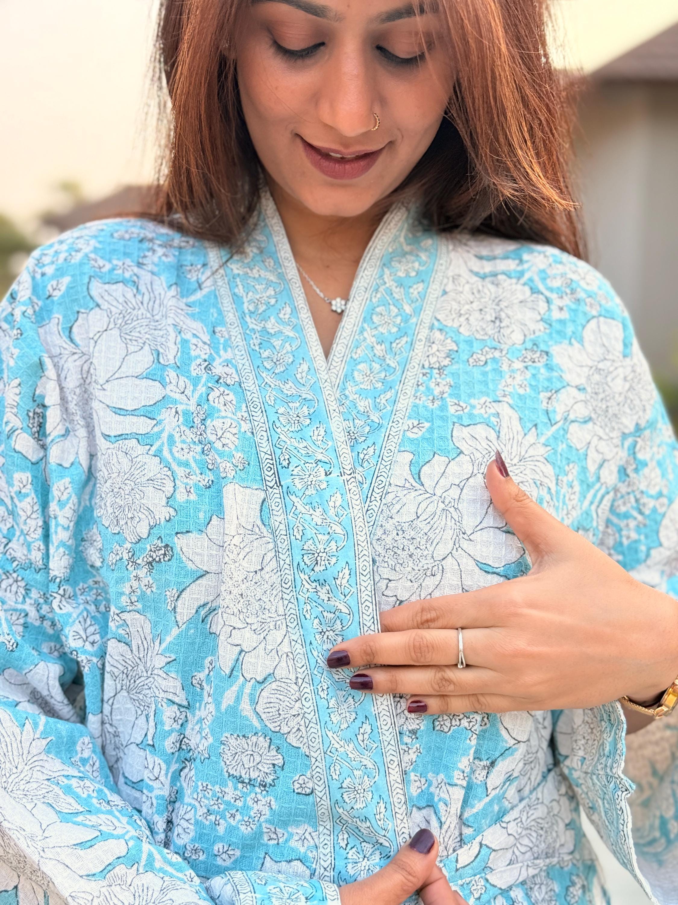 Step into calm, comfort, and craftsmanship with our Hand Block Printed Cotton Waffle Kimono Robe, thoughtfully handmade using traditional Indian textile artistry.