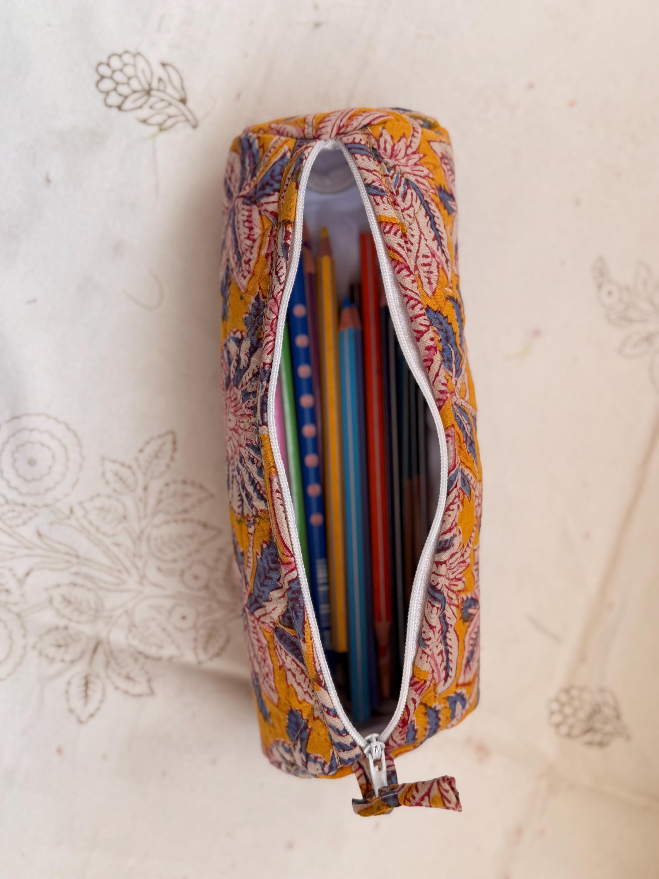 Hand Block Print Cotton Pencil Case, Handmade Zipper Pencil Bag, Stationery Pouch, Eco Friendly School Supplies Organizer