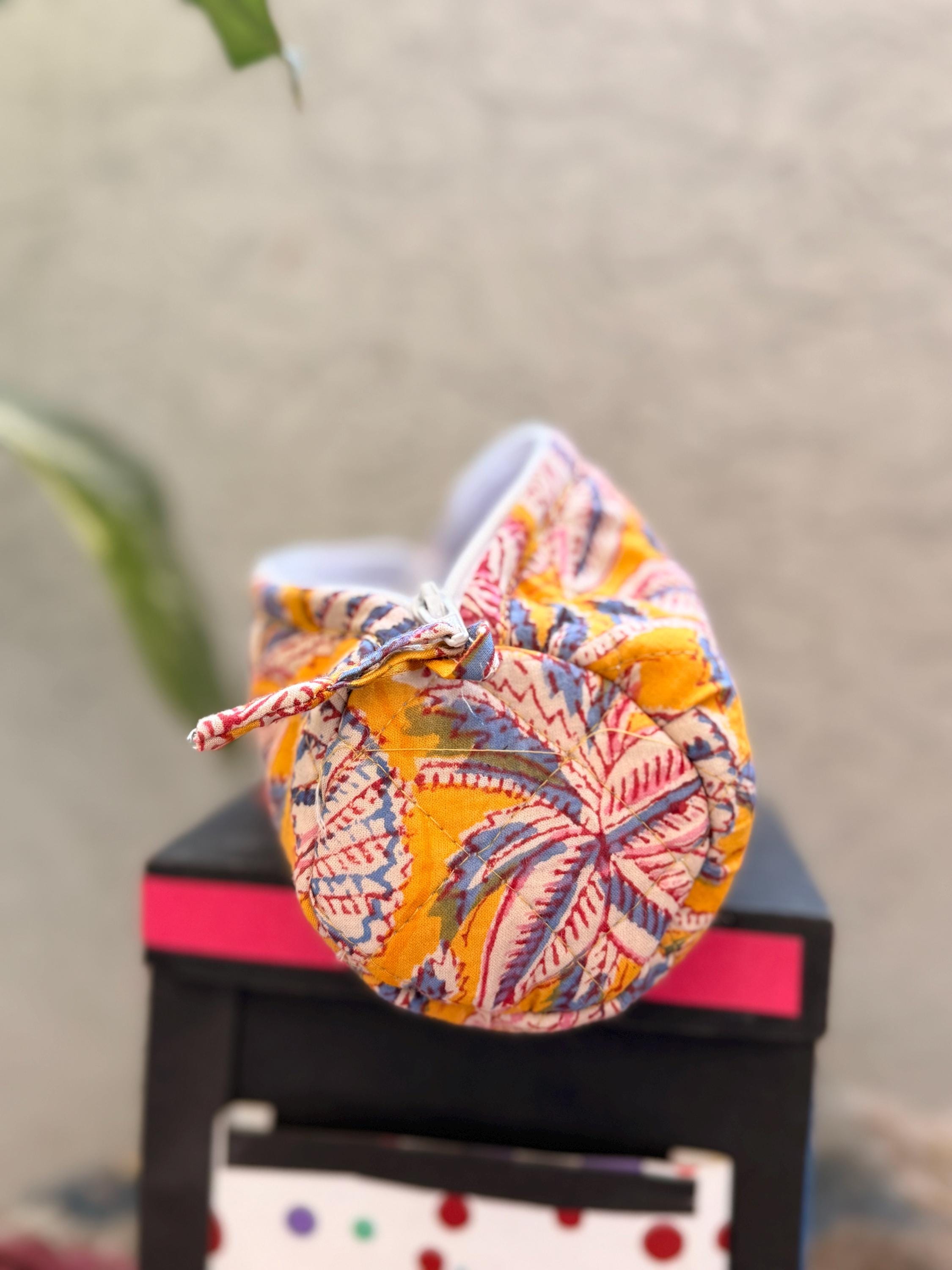 Each pouch is individually hand block printed, making every piece truly unique. Slight variations in print and color are natural and celebrate the beauty of handmade craftsmanship.