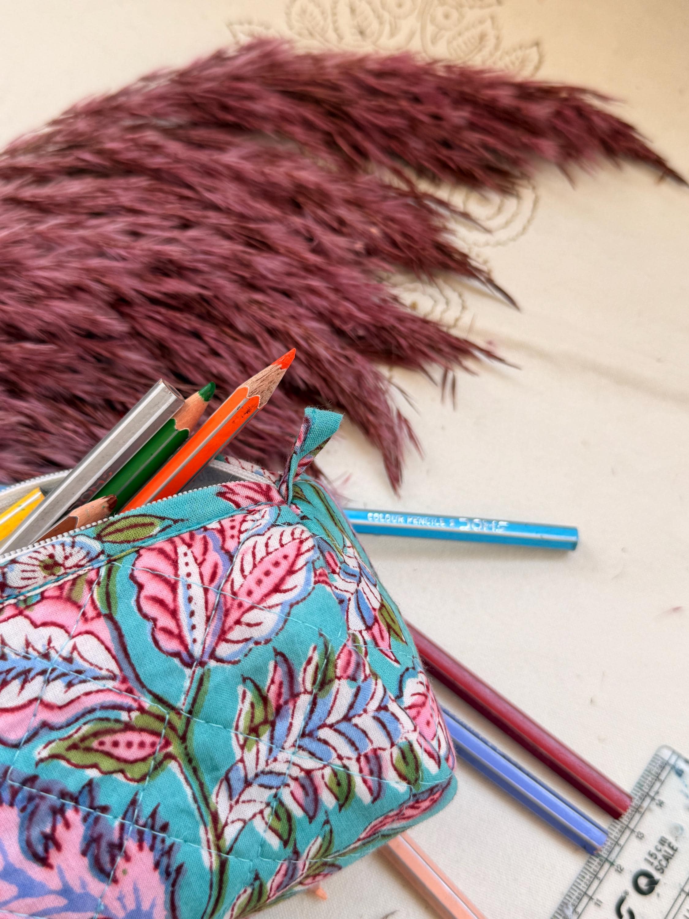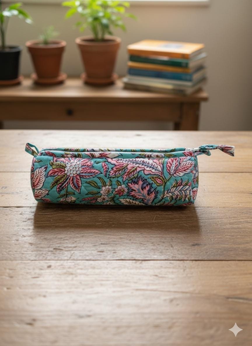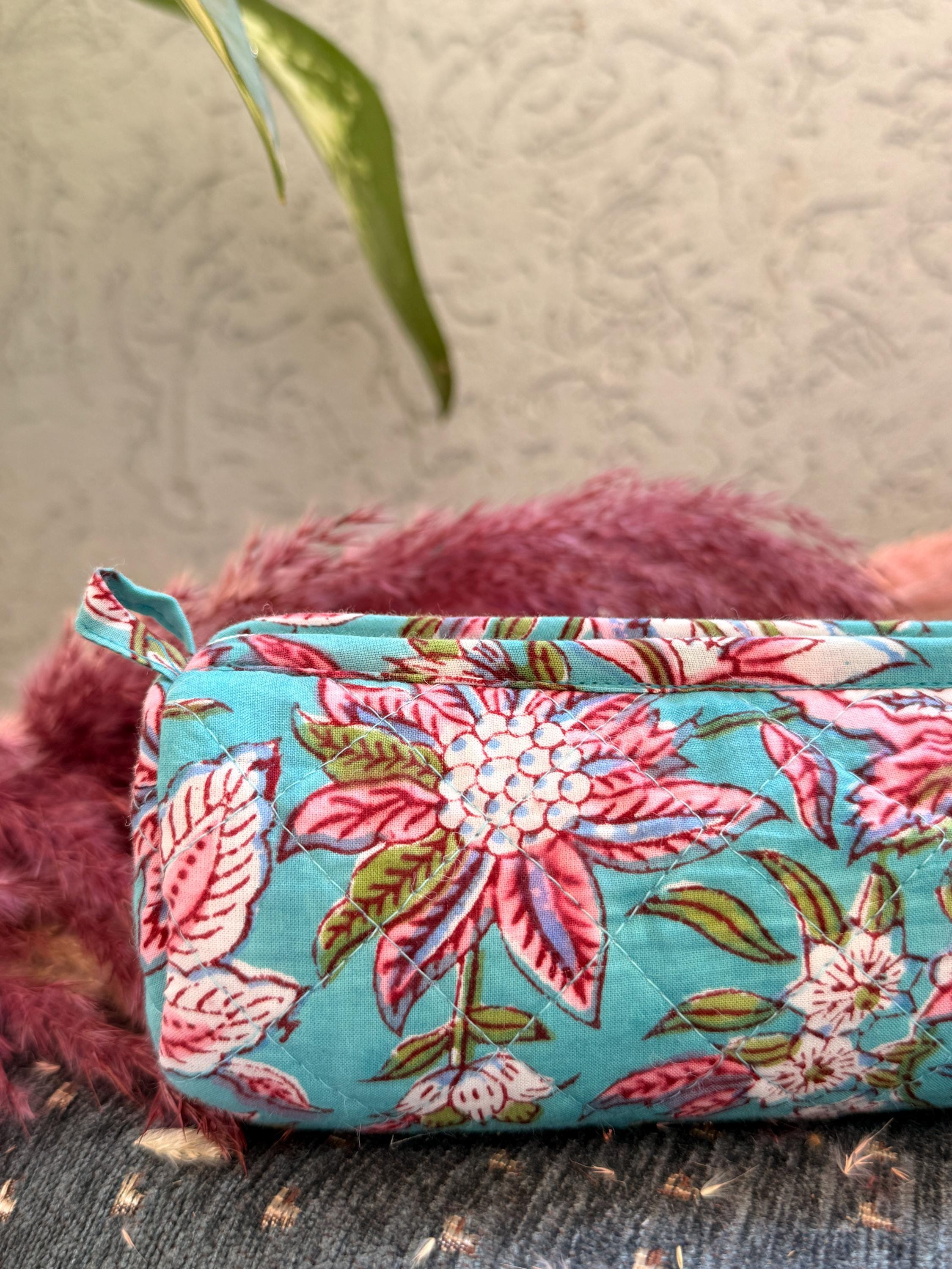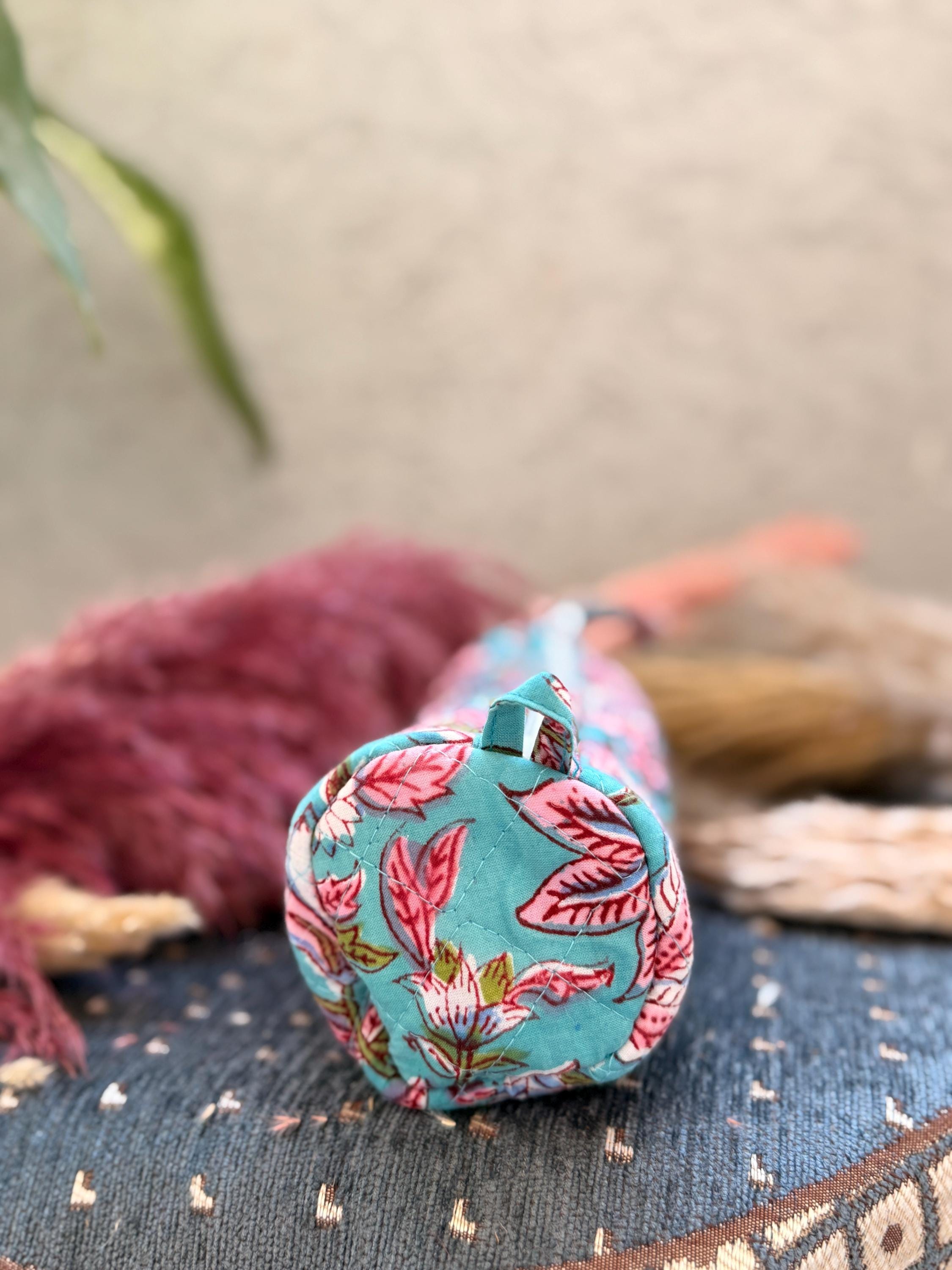 Each piece is individually hand block printed, making every pouch truly unique. Slight variations in print and color are natural and celebrate the authenticity of handmade craftsmanship.
