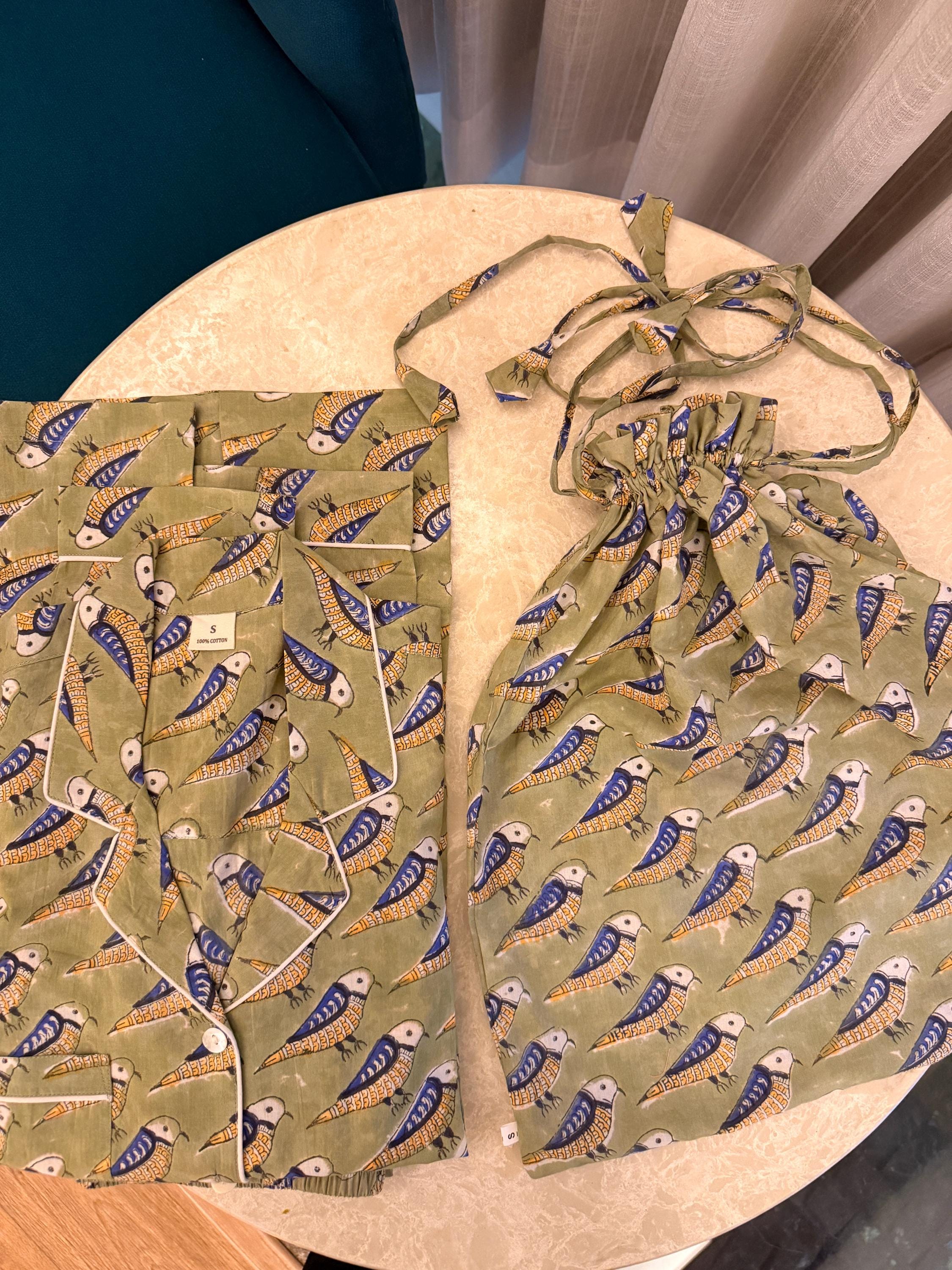 Designed for both style and practicality, this night suit comes with a matching block print cover bag, making it easy to store, travel with, or gift beautifully. The cover bag adds a thoughtful touch and keeps the set neatly organized when not in use.