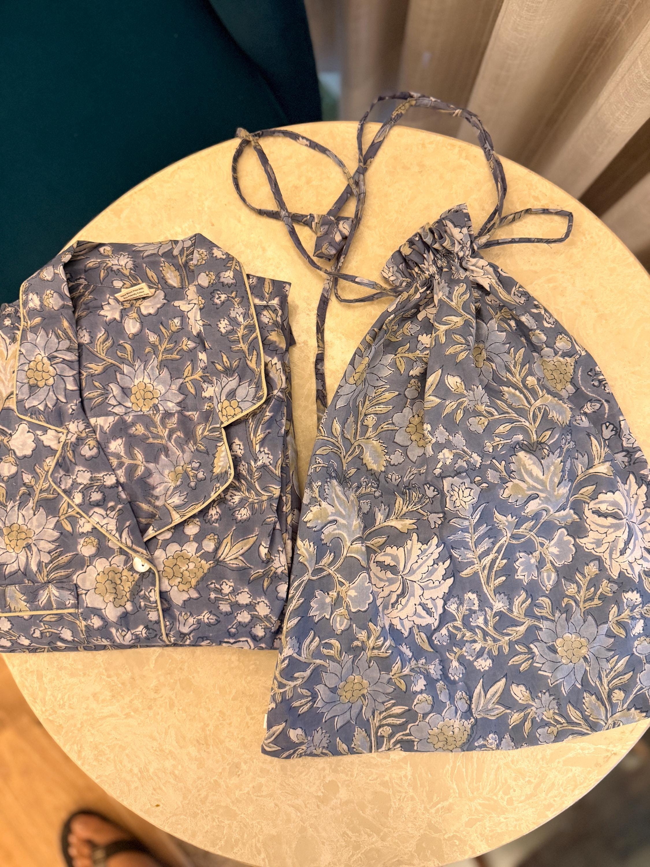 To make it even more special, this night suit comes with a matching block print cover bag. The reusable cover bag is perfect for travel, storage, or gifting, keeping your nightwear neatly packed and protected.