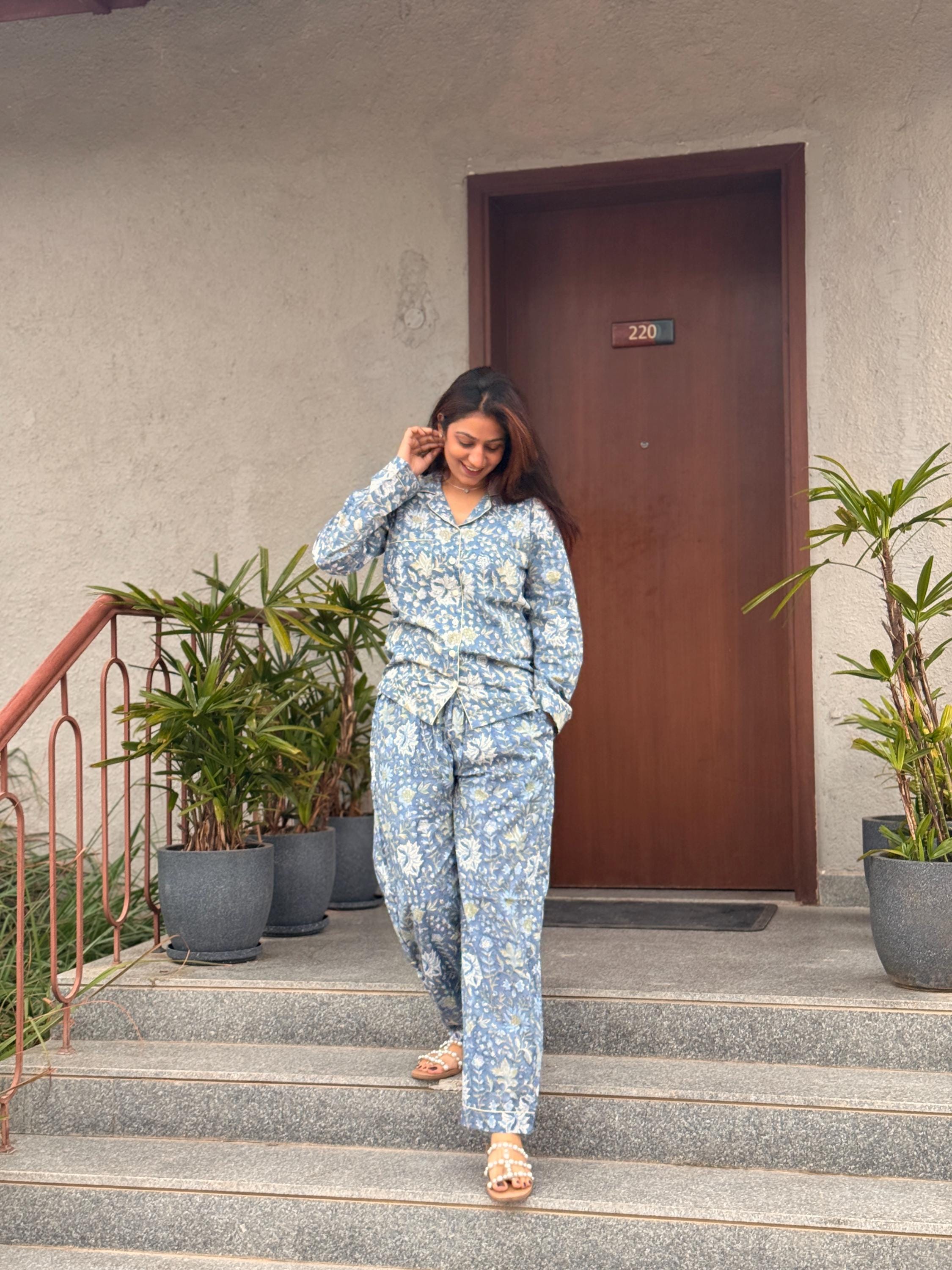 Experience effortless comfort and timeless craftsmanship with this hand block printed cotton co-ord night suit, thoughtfully handmade for restful nights and relaxed daytime lounging. Inspired by traditional Indian textile art, this set blends heritage printing with modern comfort.