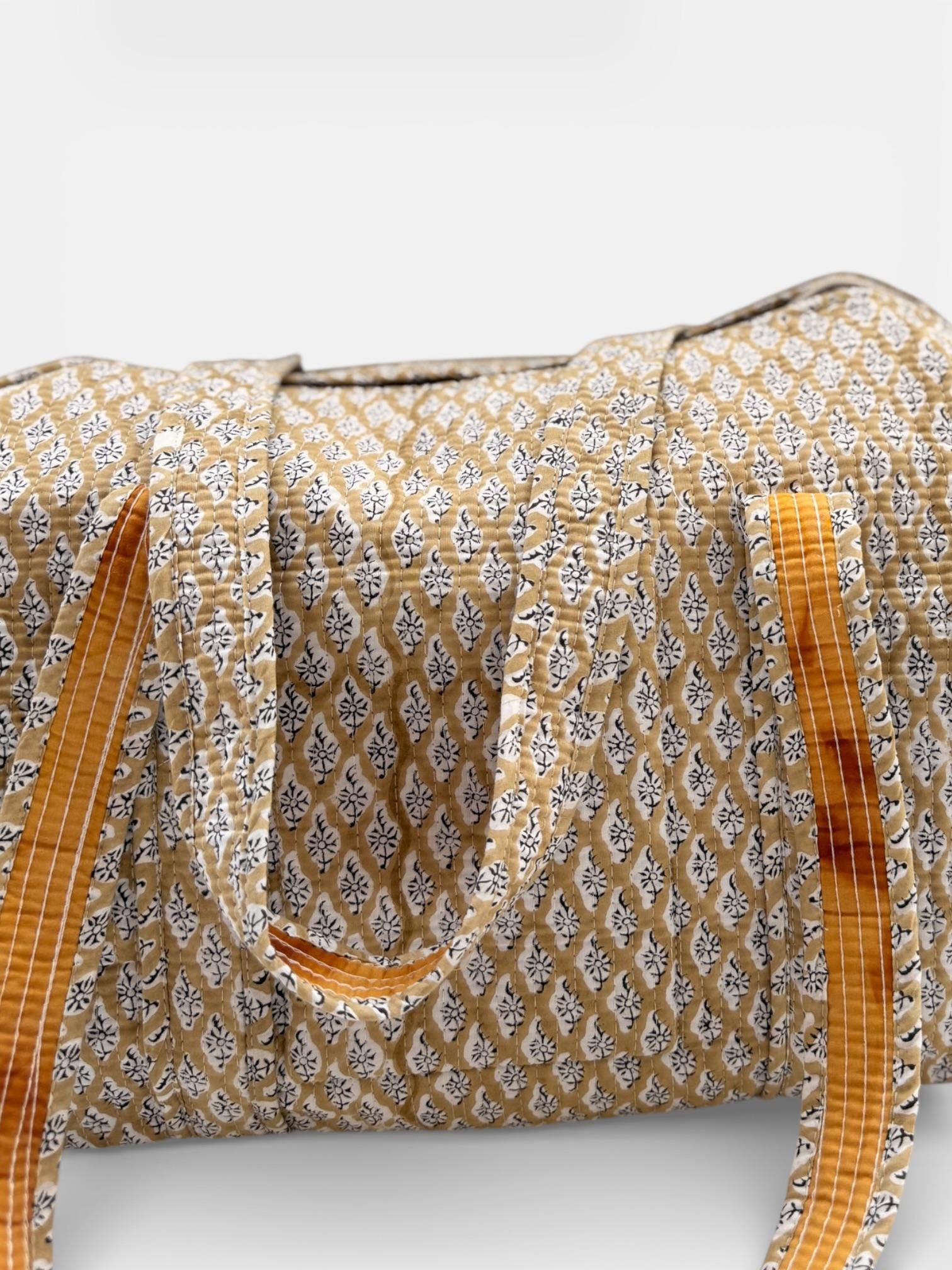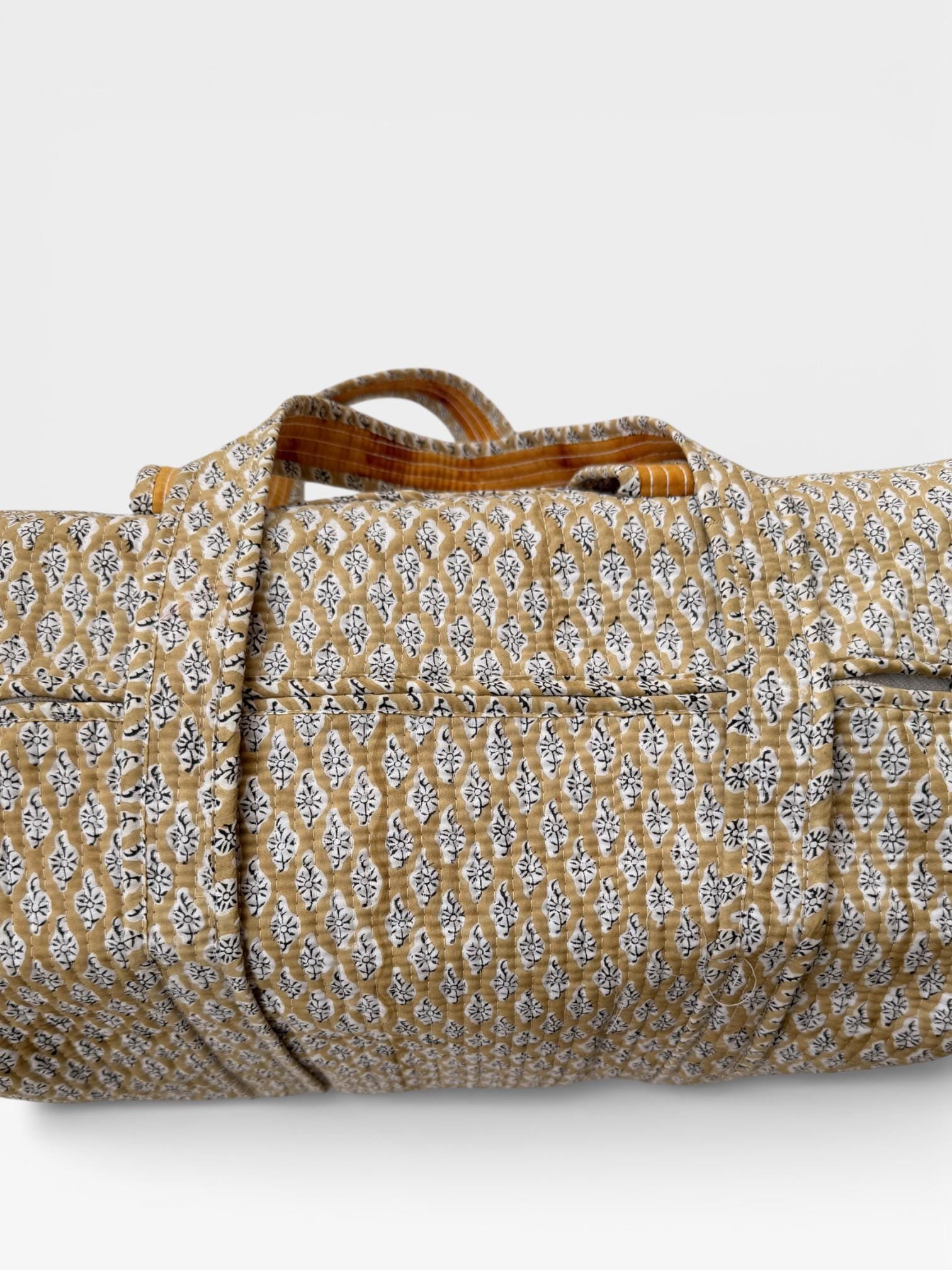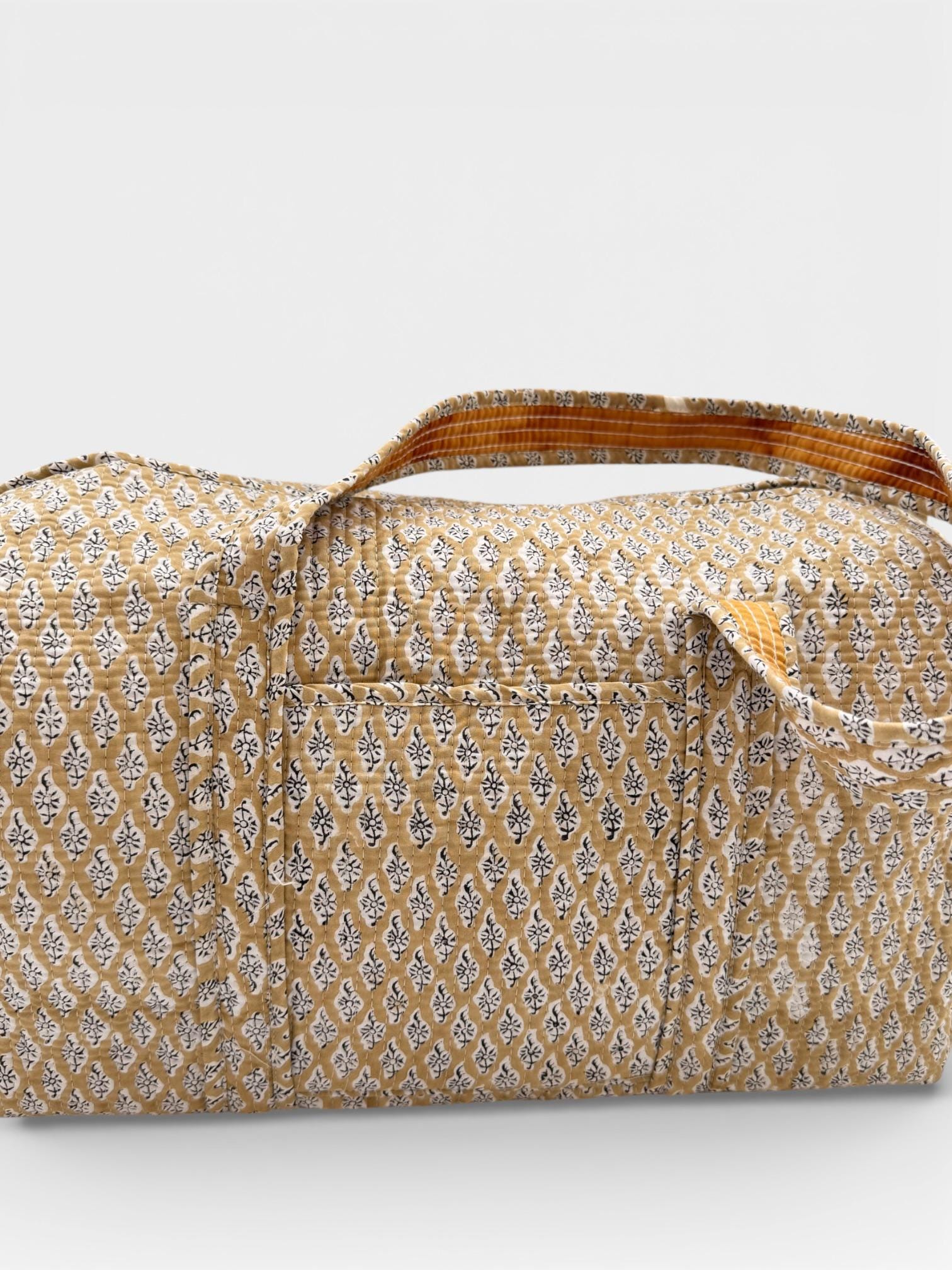 Spacious yet lightweight, it’s perfect for weekend trips, gym use, overnight stays, yoga sessions, or daily carry. The sturdy cotton fabric, reinforced handles, and roomy interior make it both durable and practical, while the unique block print adds a distinctive boho charm.