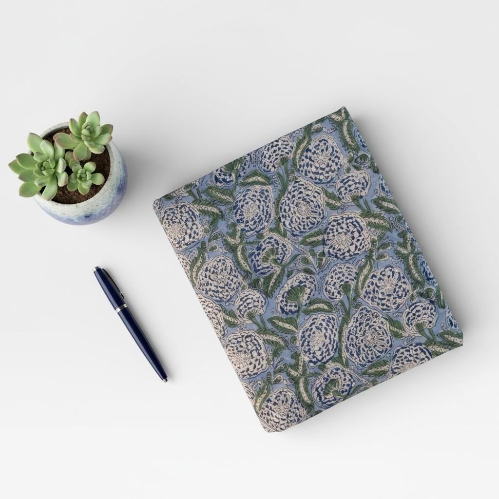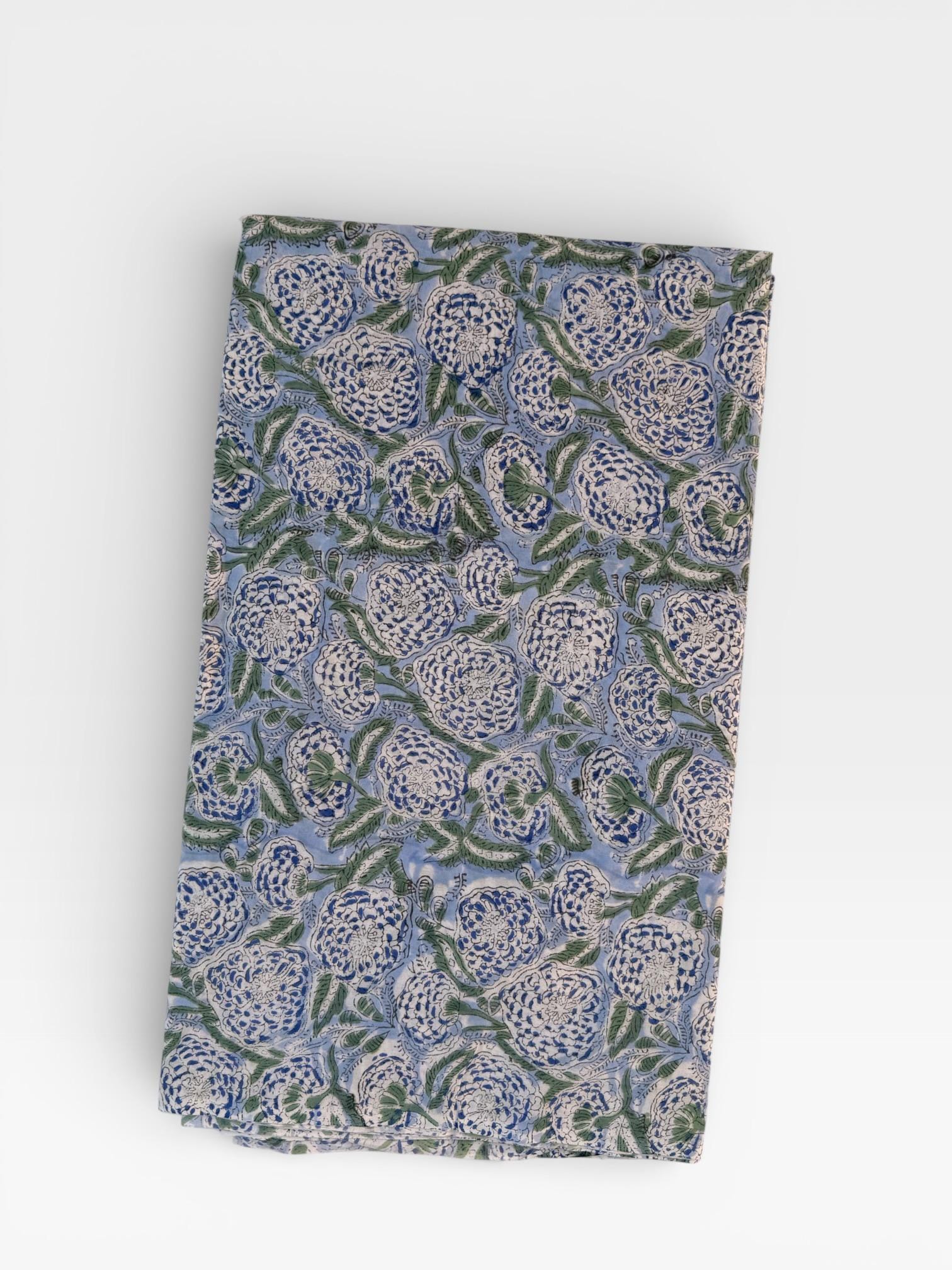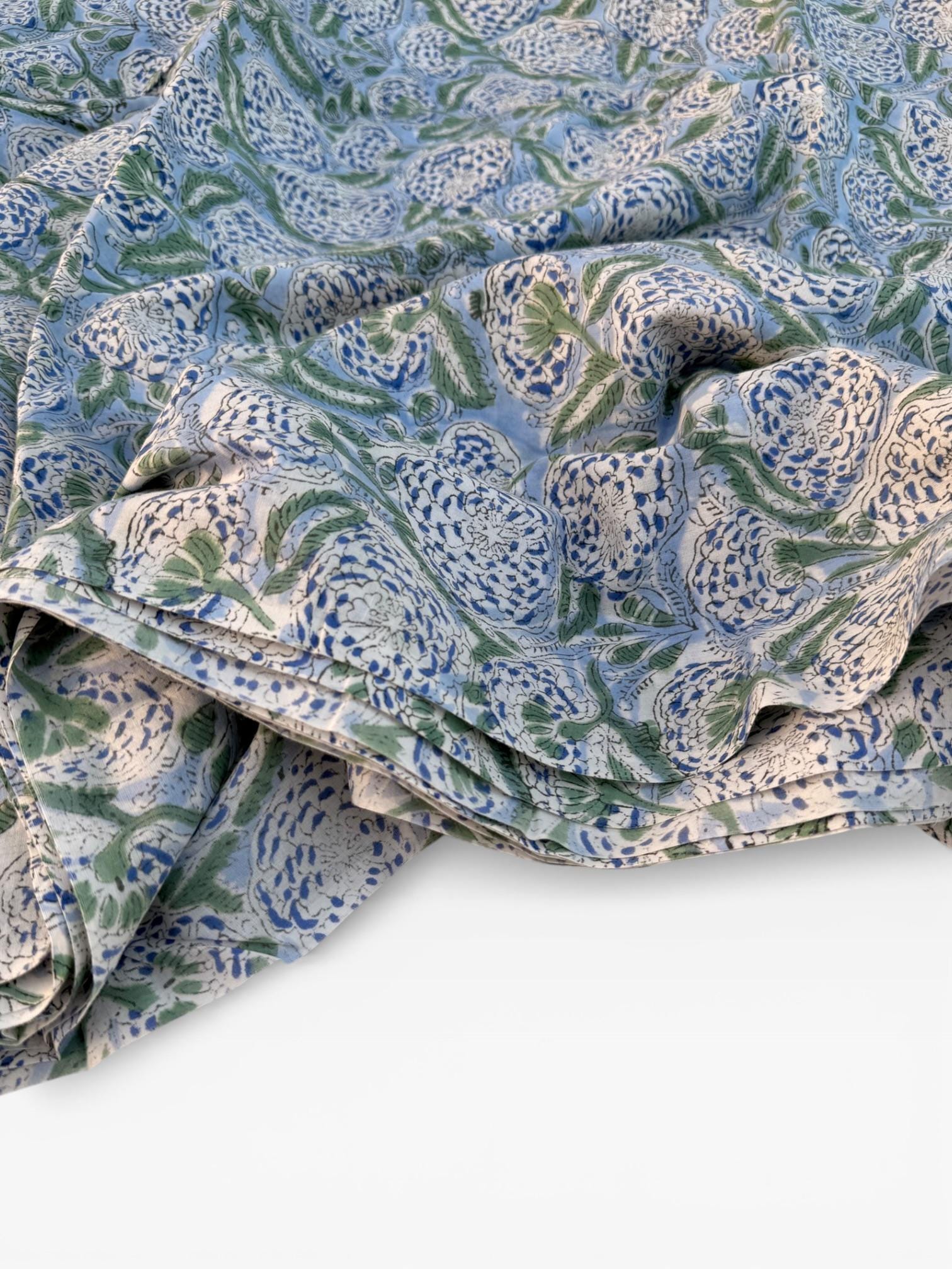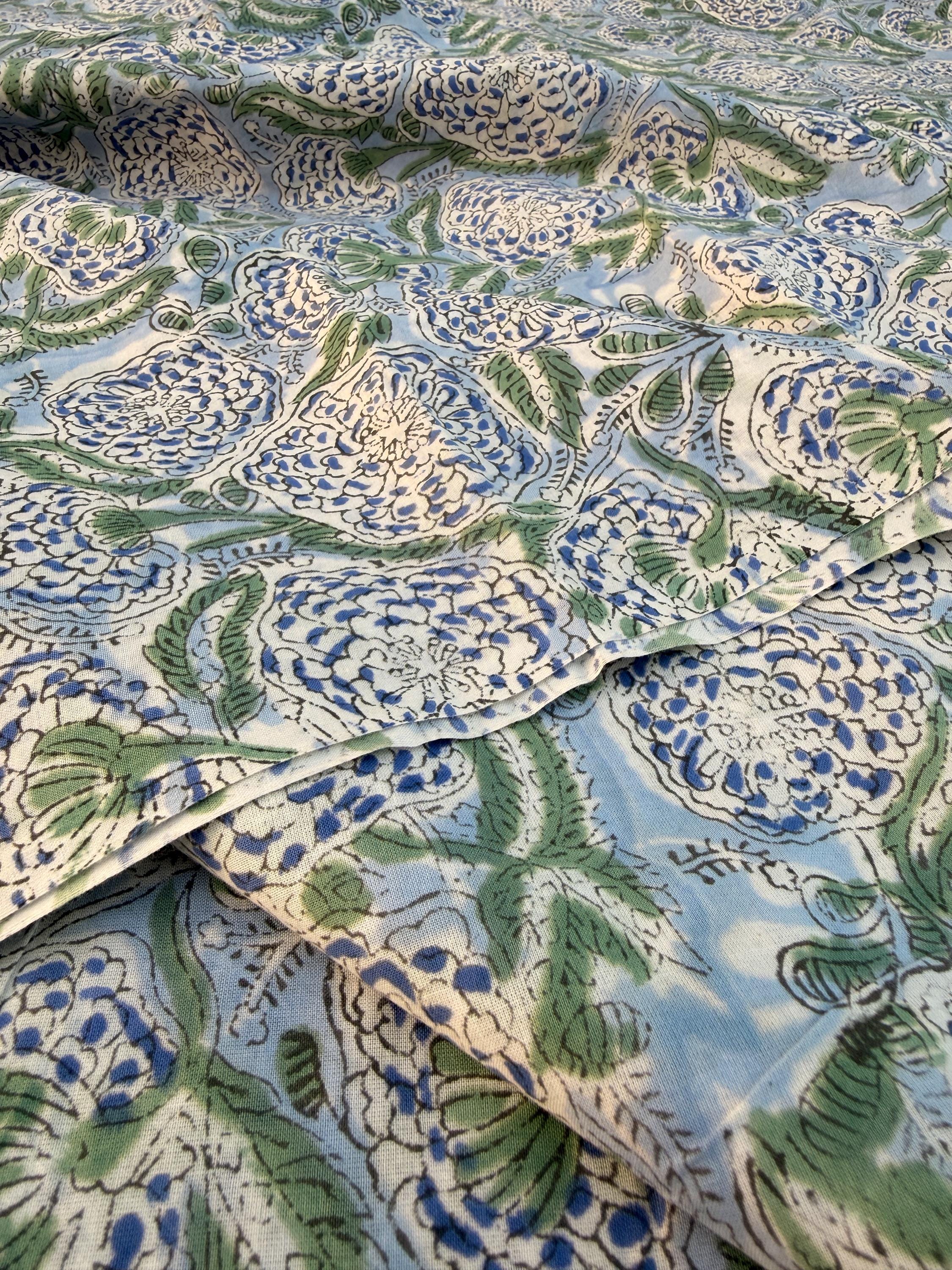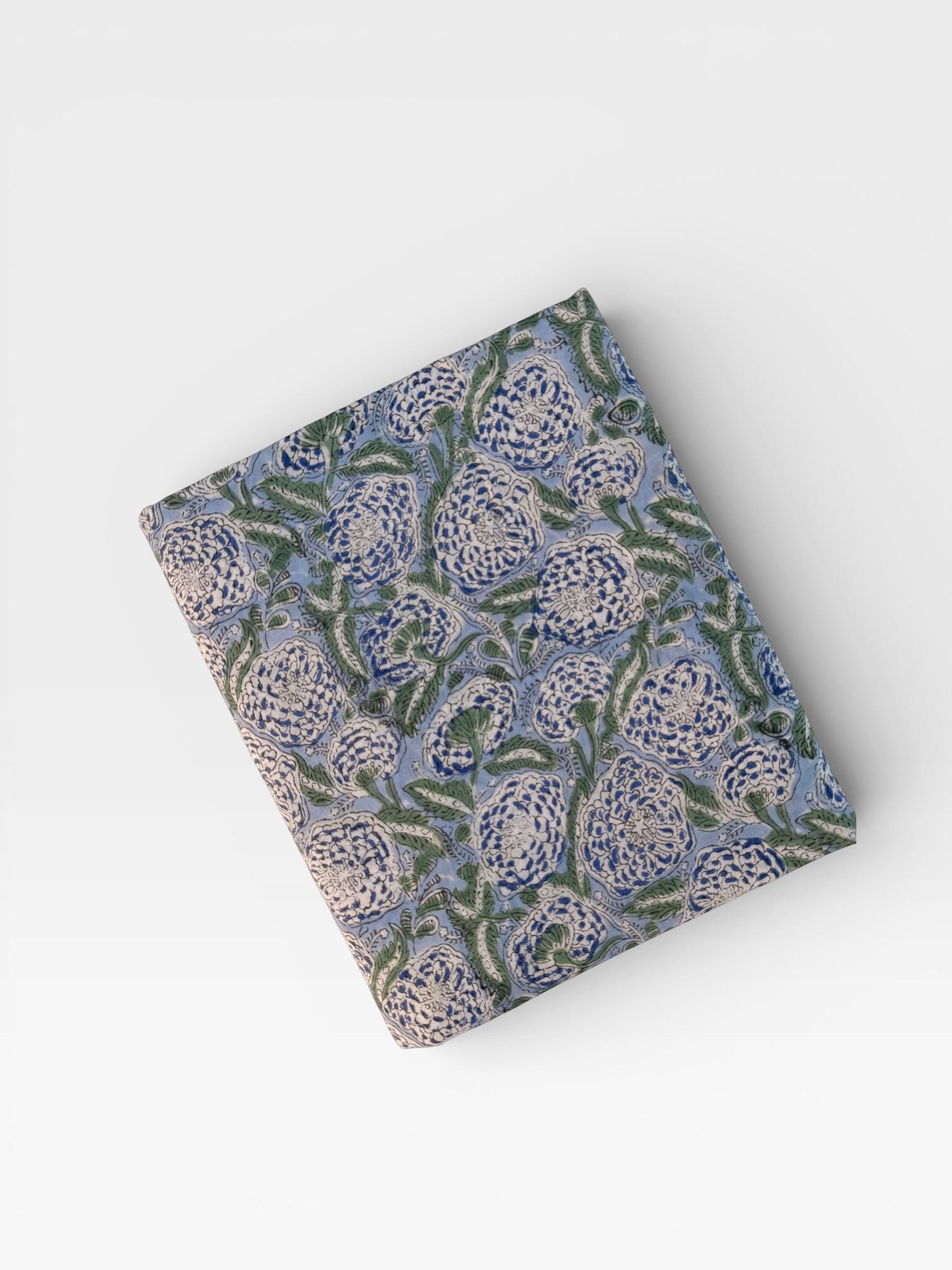 Hand Block Printed Cotton Fabric – Powder Blue Base with White & Indigo Floral Design | Indian Blockprint Fabric for Sewing and Home Décor