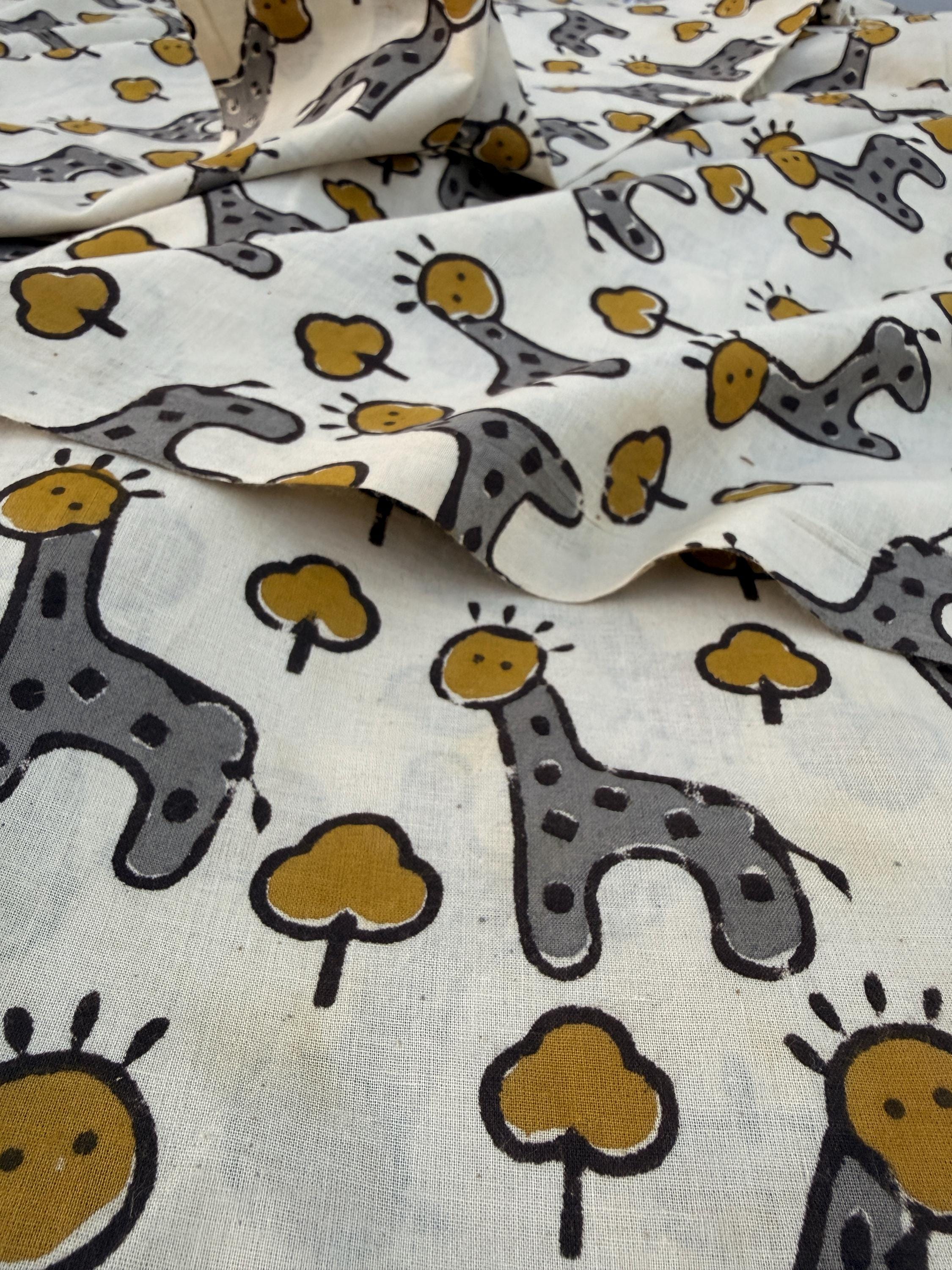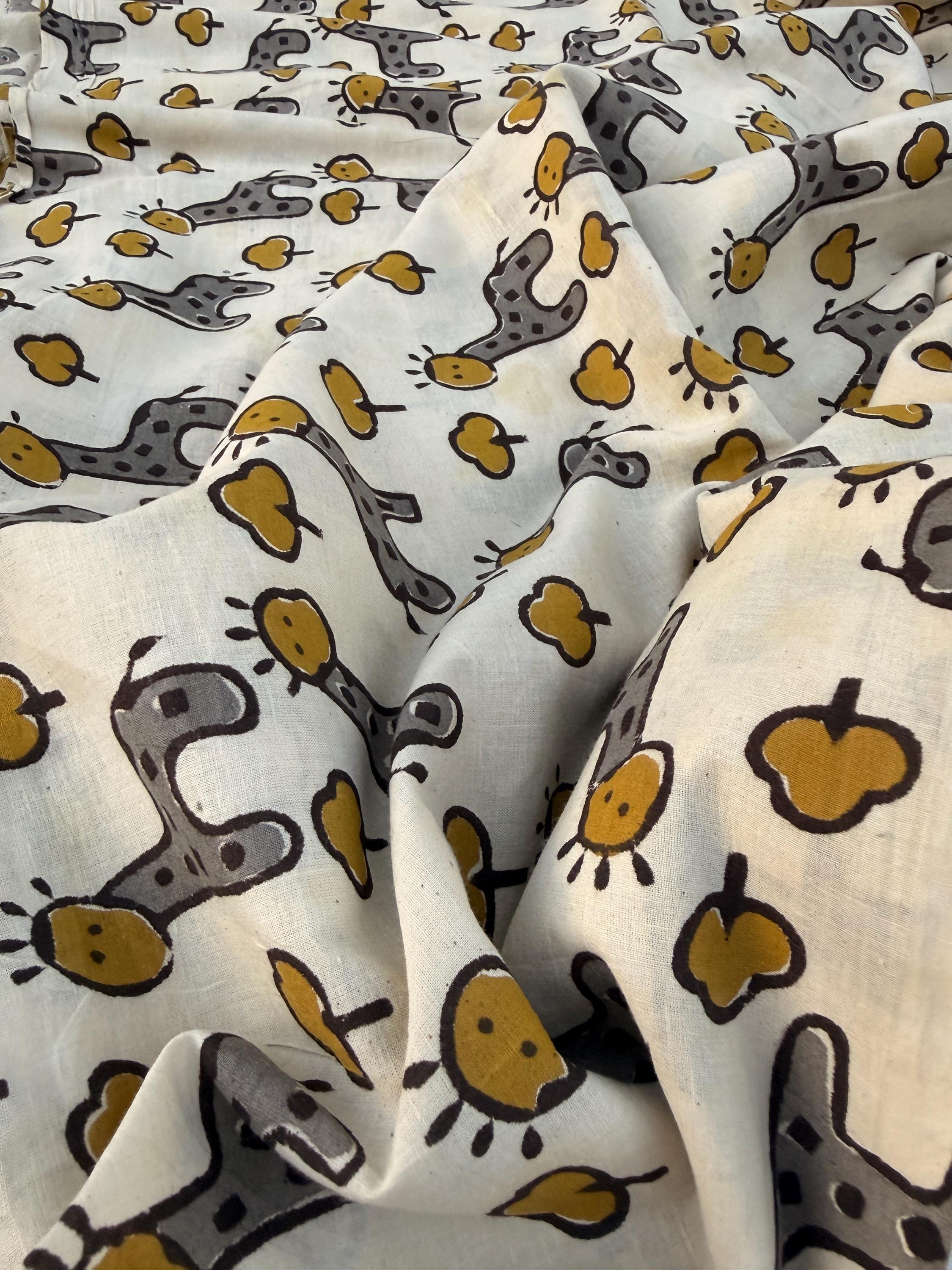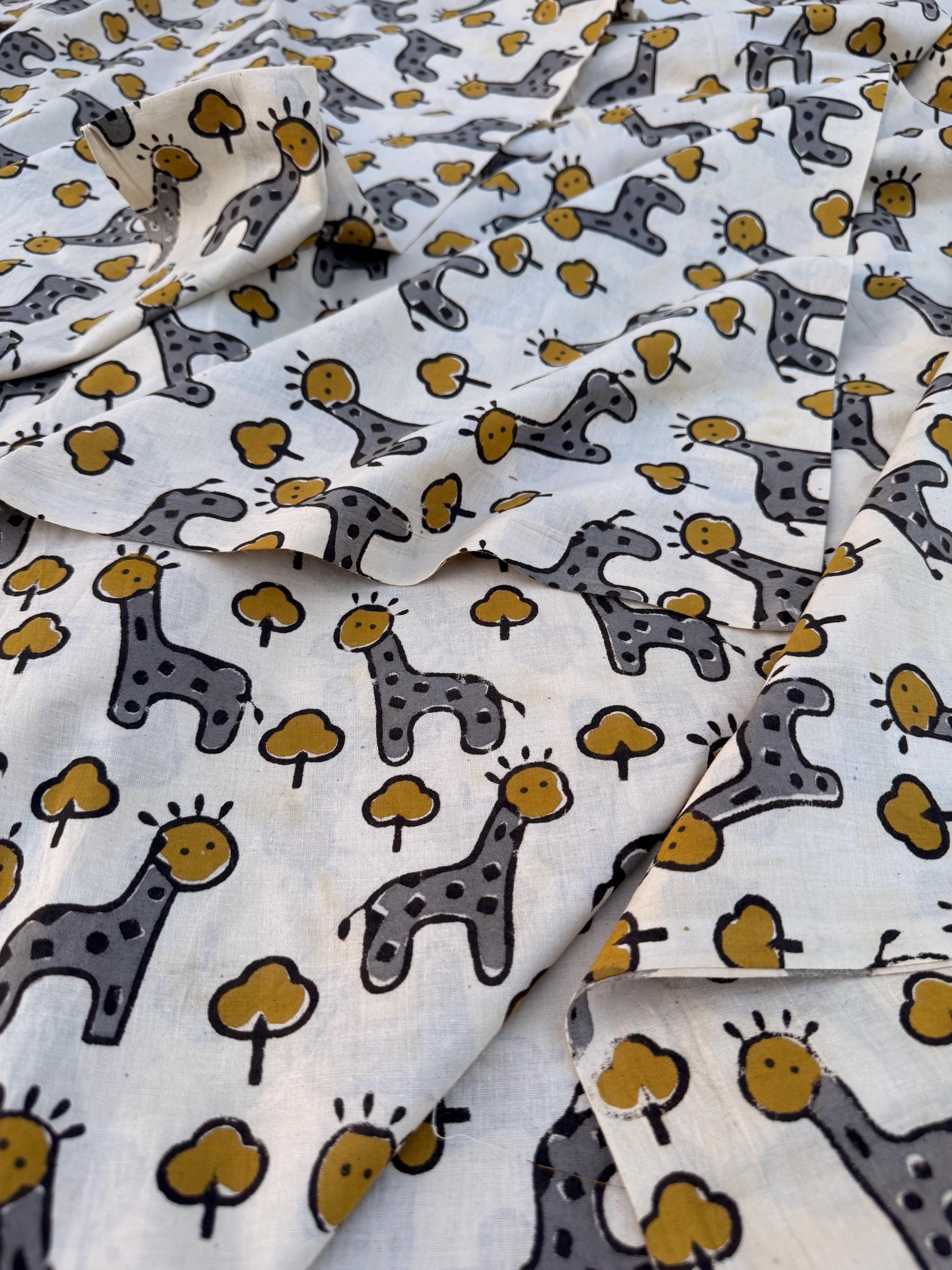 Bagru Hand Block Print Cotton Fabric – Natural Dye Cute Giraffe Print – Kids Animal Print Fabric – Vegetable Dyed Indian Cotton by Yard