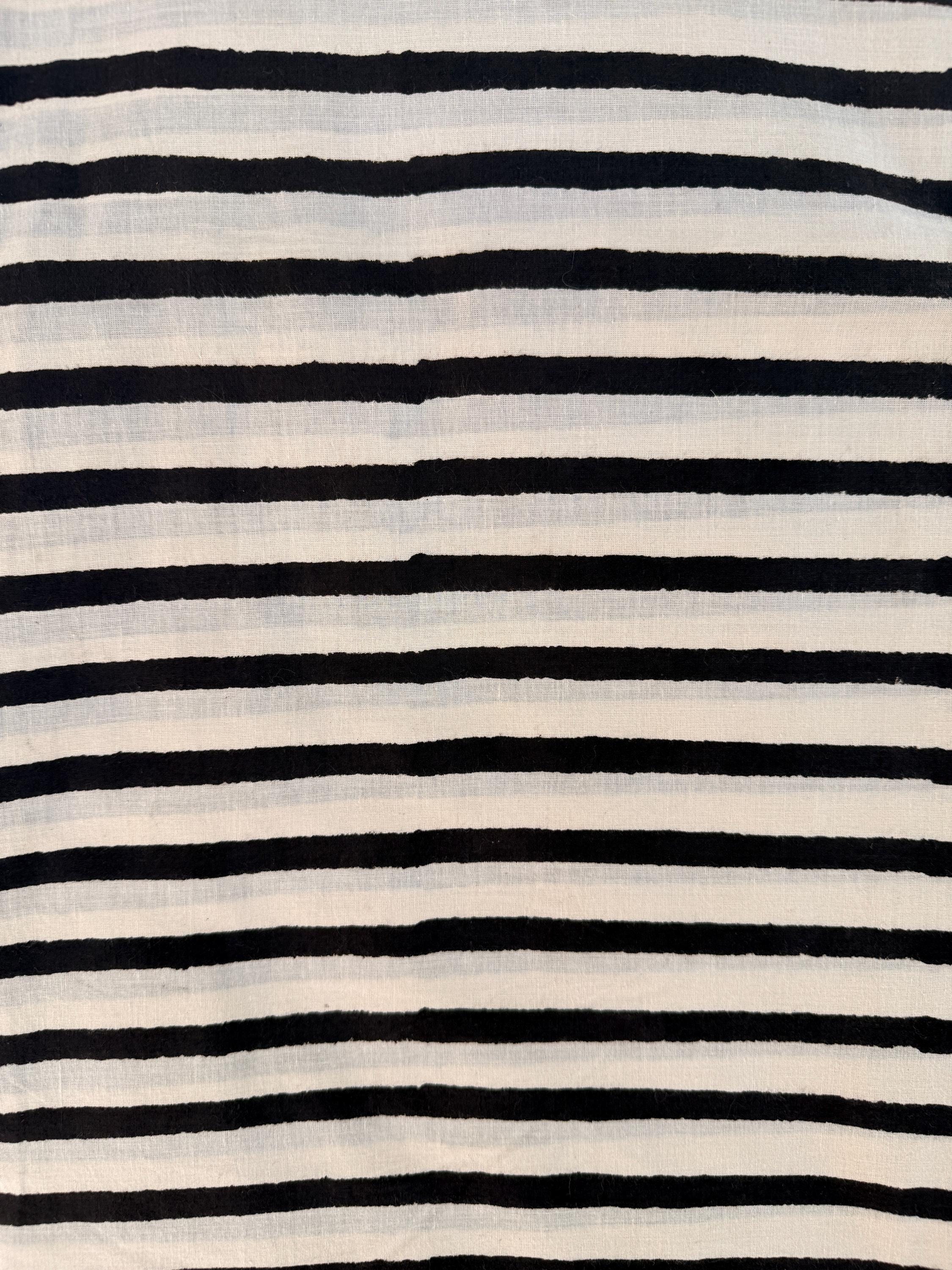 Bagru Hand Block Print Stripe Cotton Fabric – Natural Dye Off White base & Black Stripes – Minimalist Vegetable Dyed Fabric by Yard