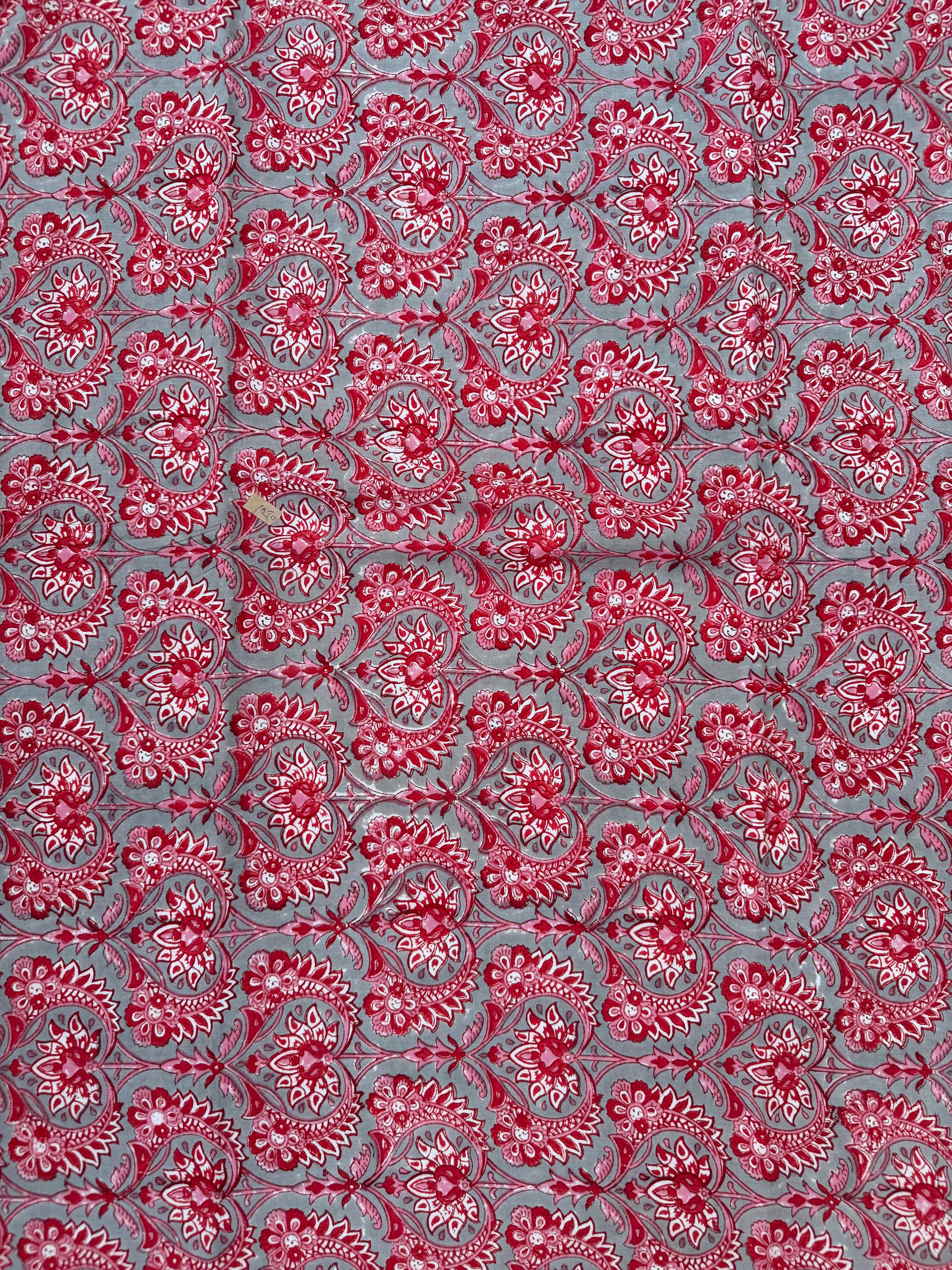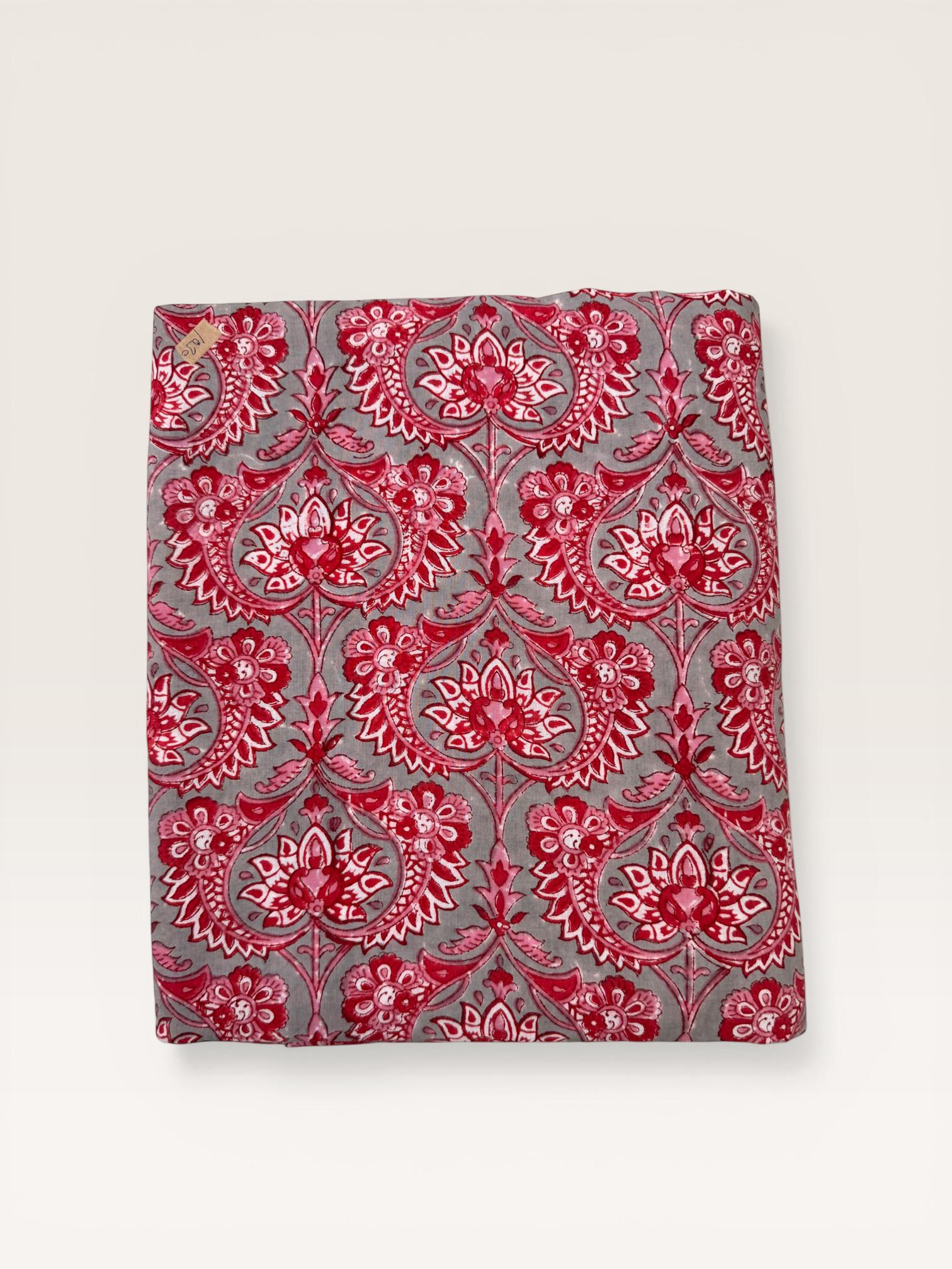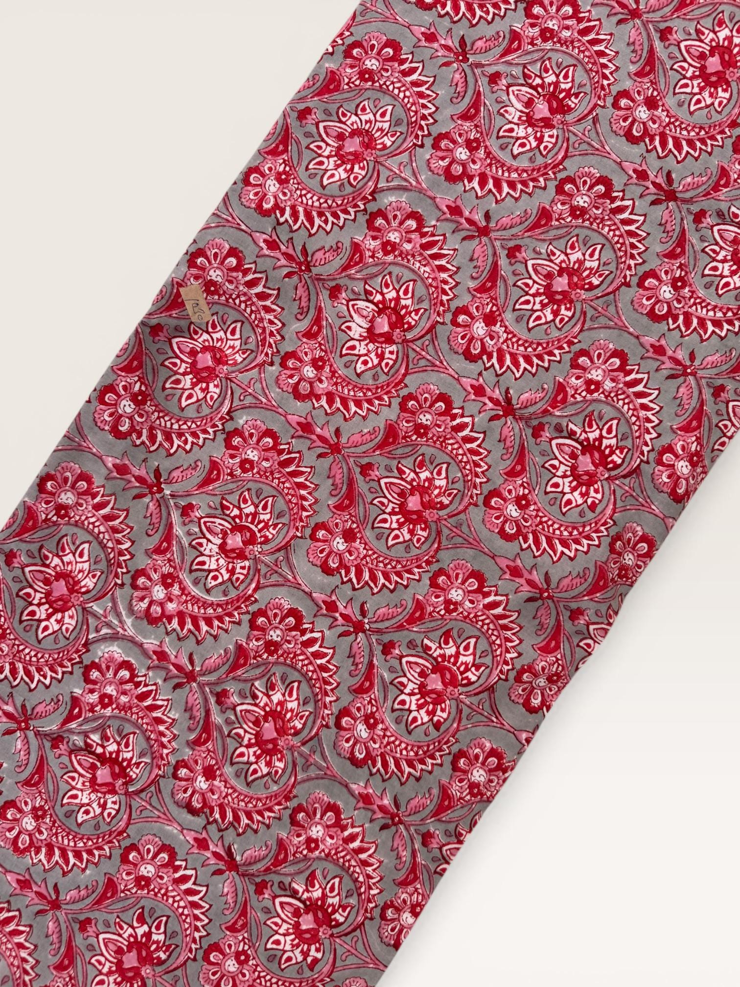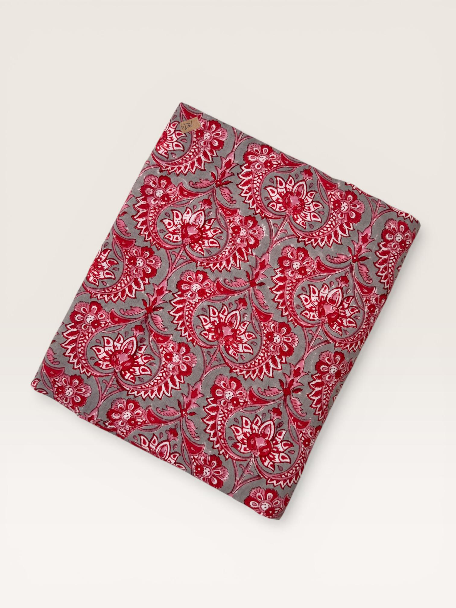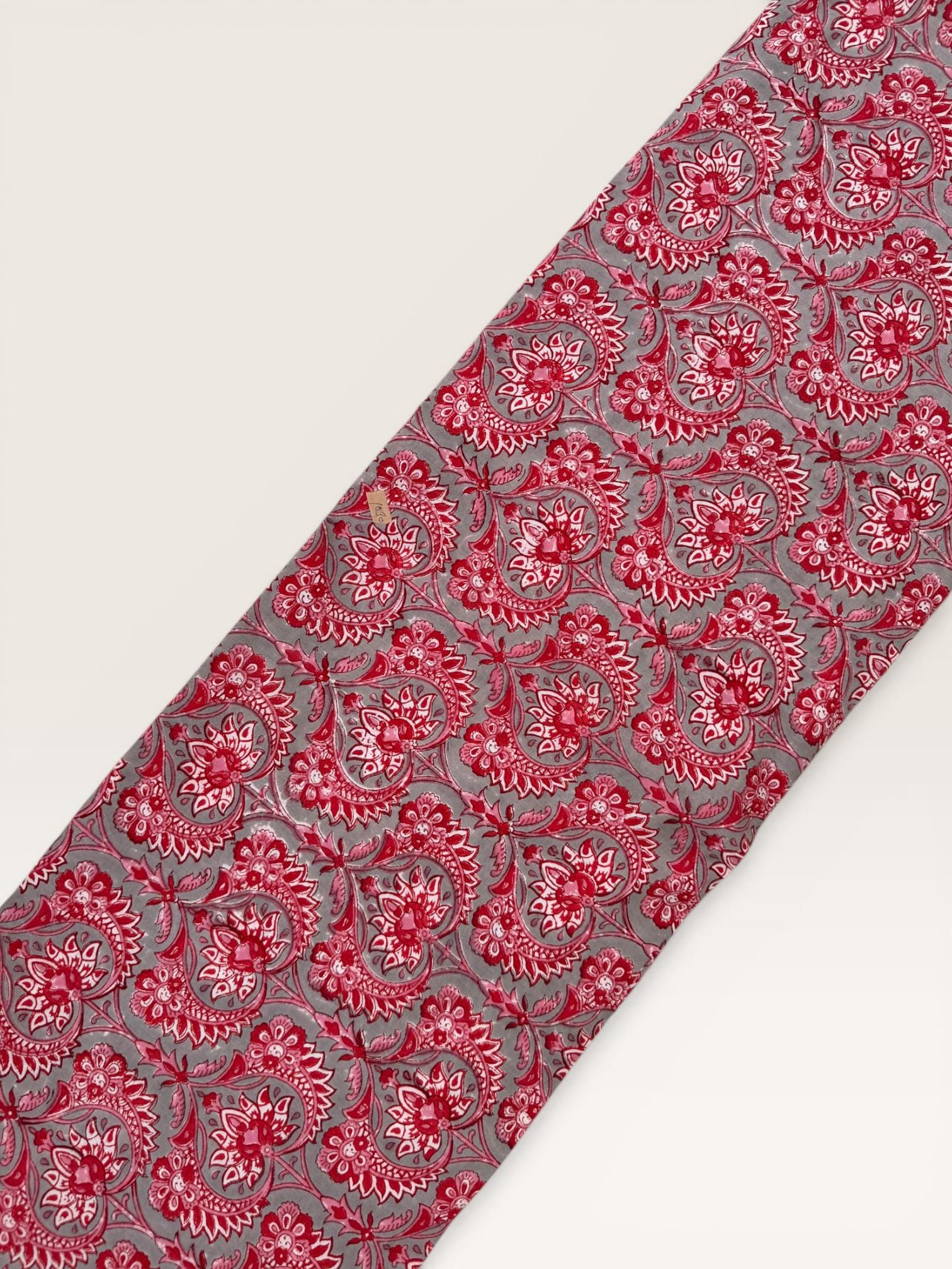 Add a touch of traditional Indian craftsmanship to your sewing projects with this beautiful hand block printed running cotton fabric. Carefully crafted by skilled artisans, this textile features an elegant floral paisley pattern printed using traditional wooden blocks.
