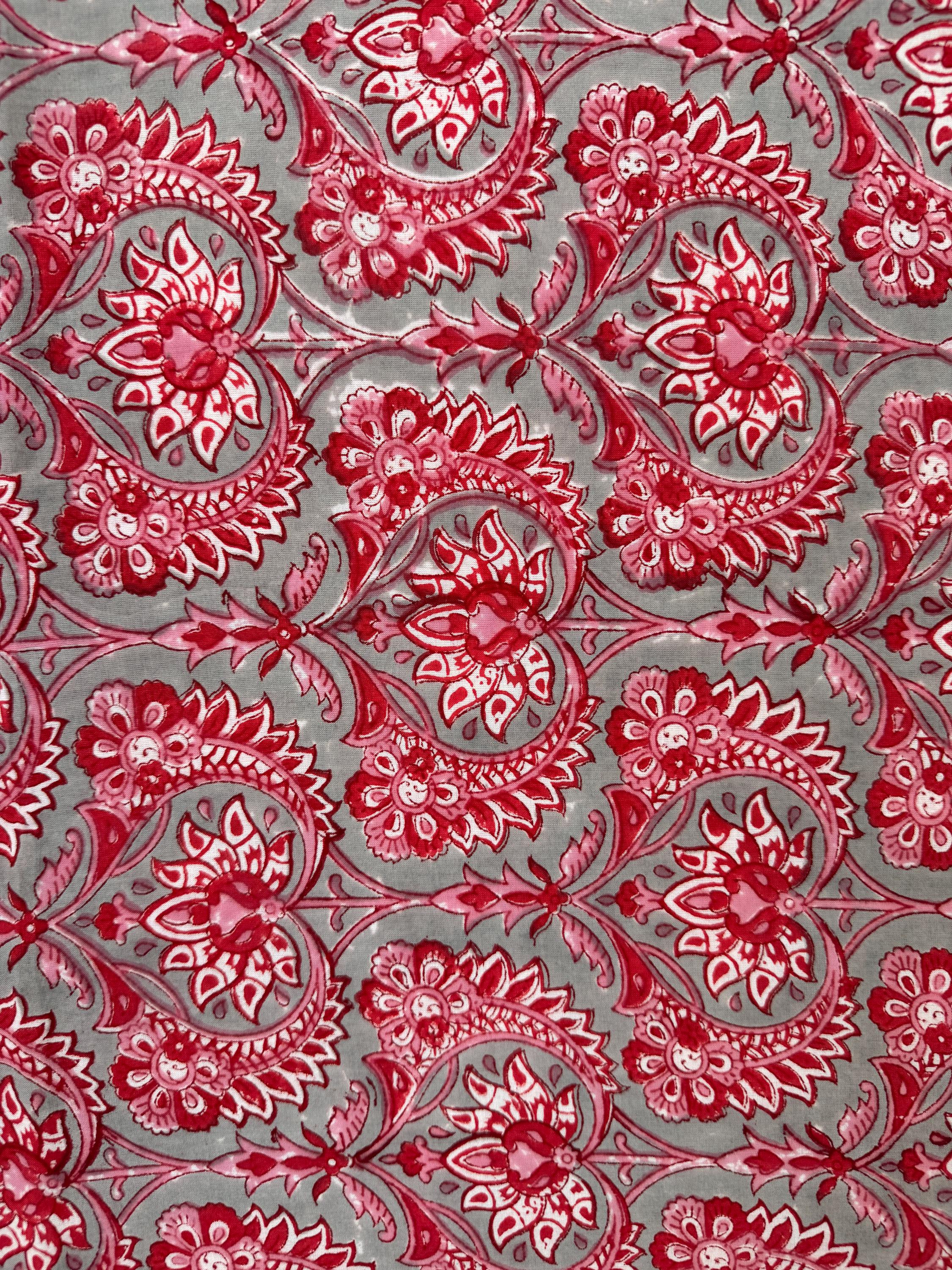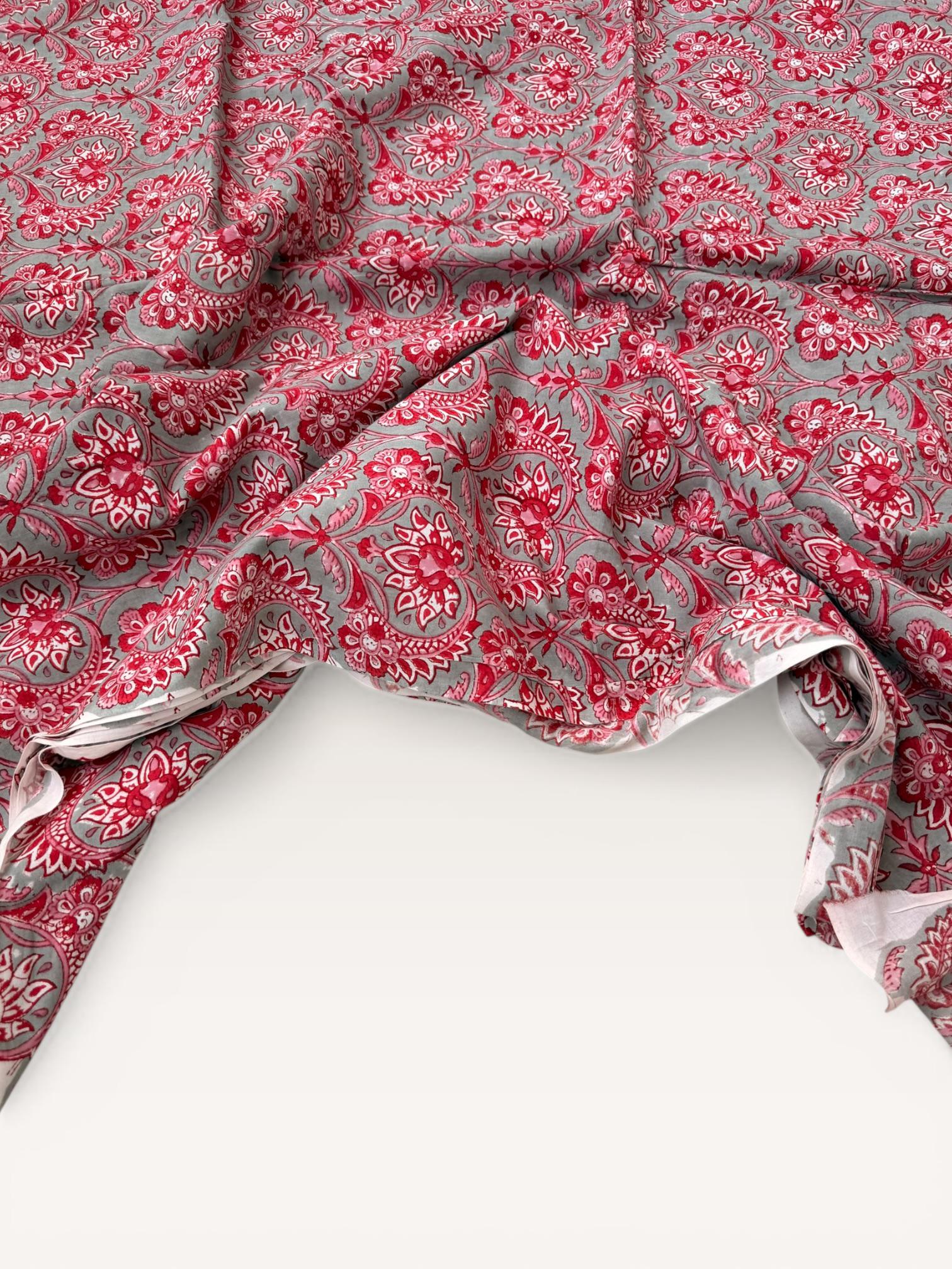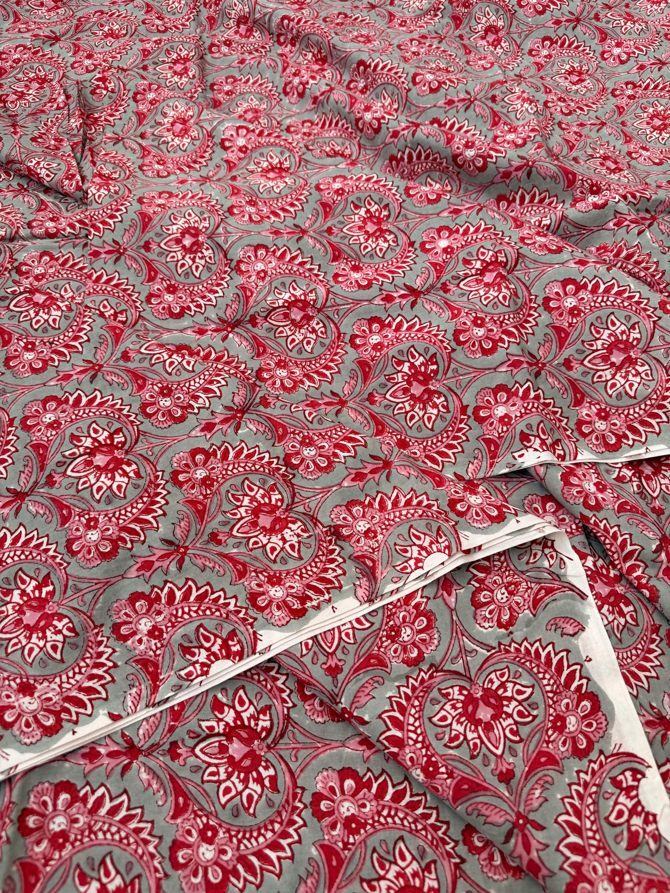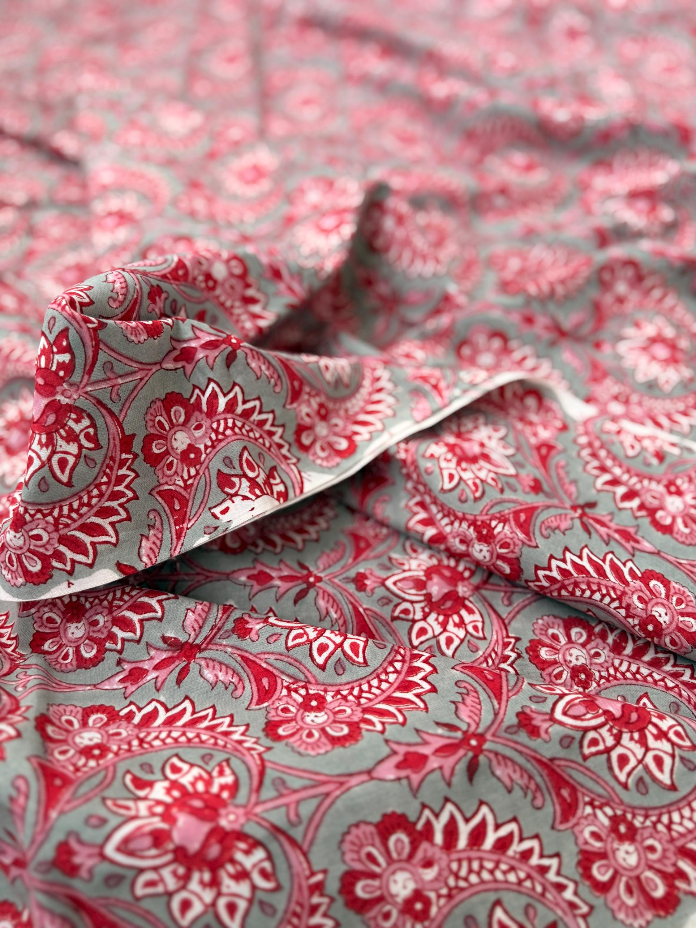 Red Floral Paisley Hand Block Print Cotton Fabric by Yard, Indian Running Fabric, Jaipur Block Print Textile for Dress,Quilting & DIY Sewing