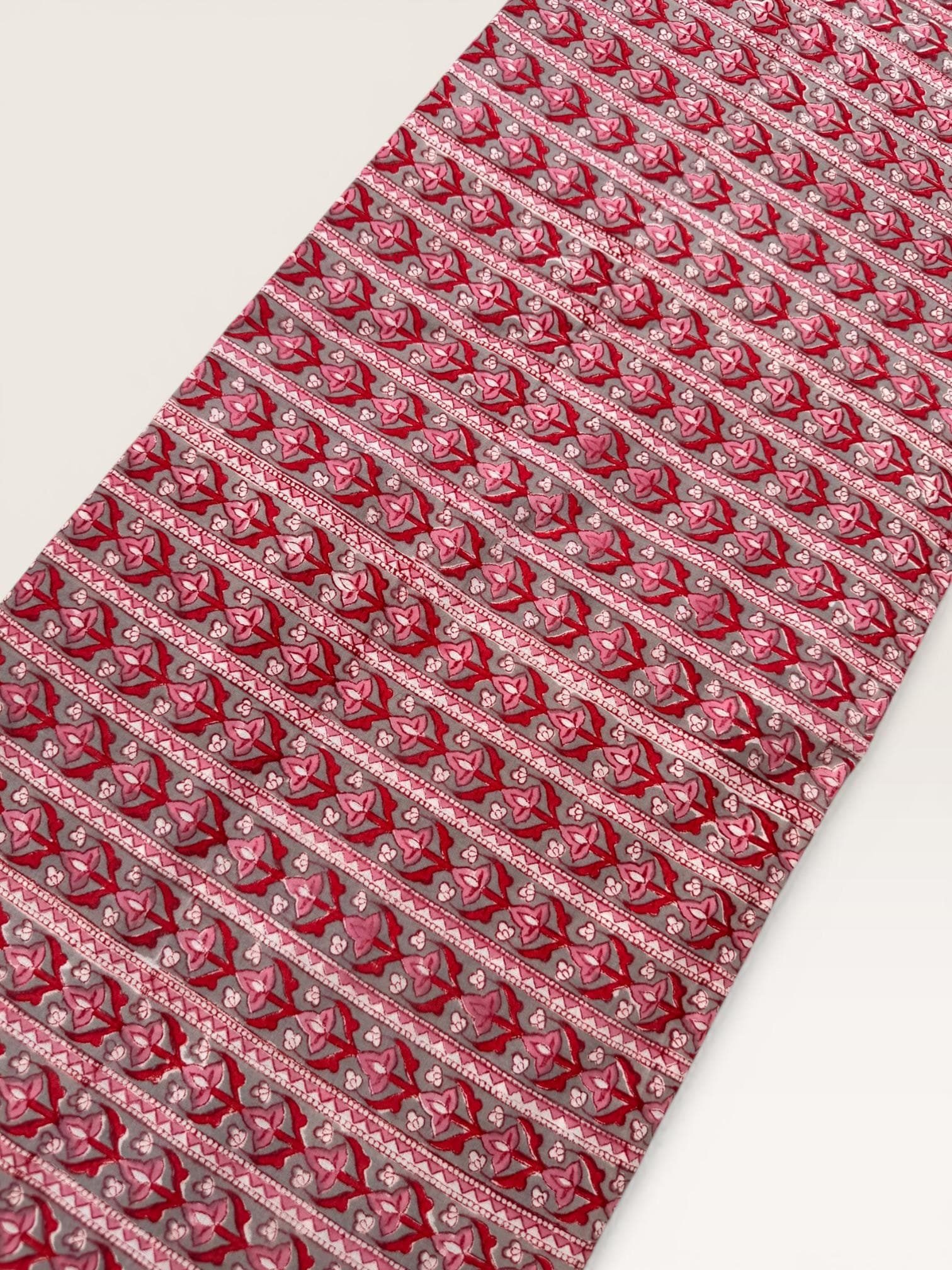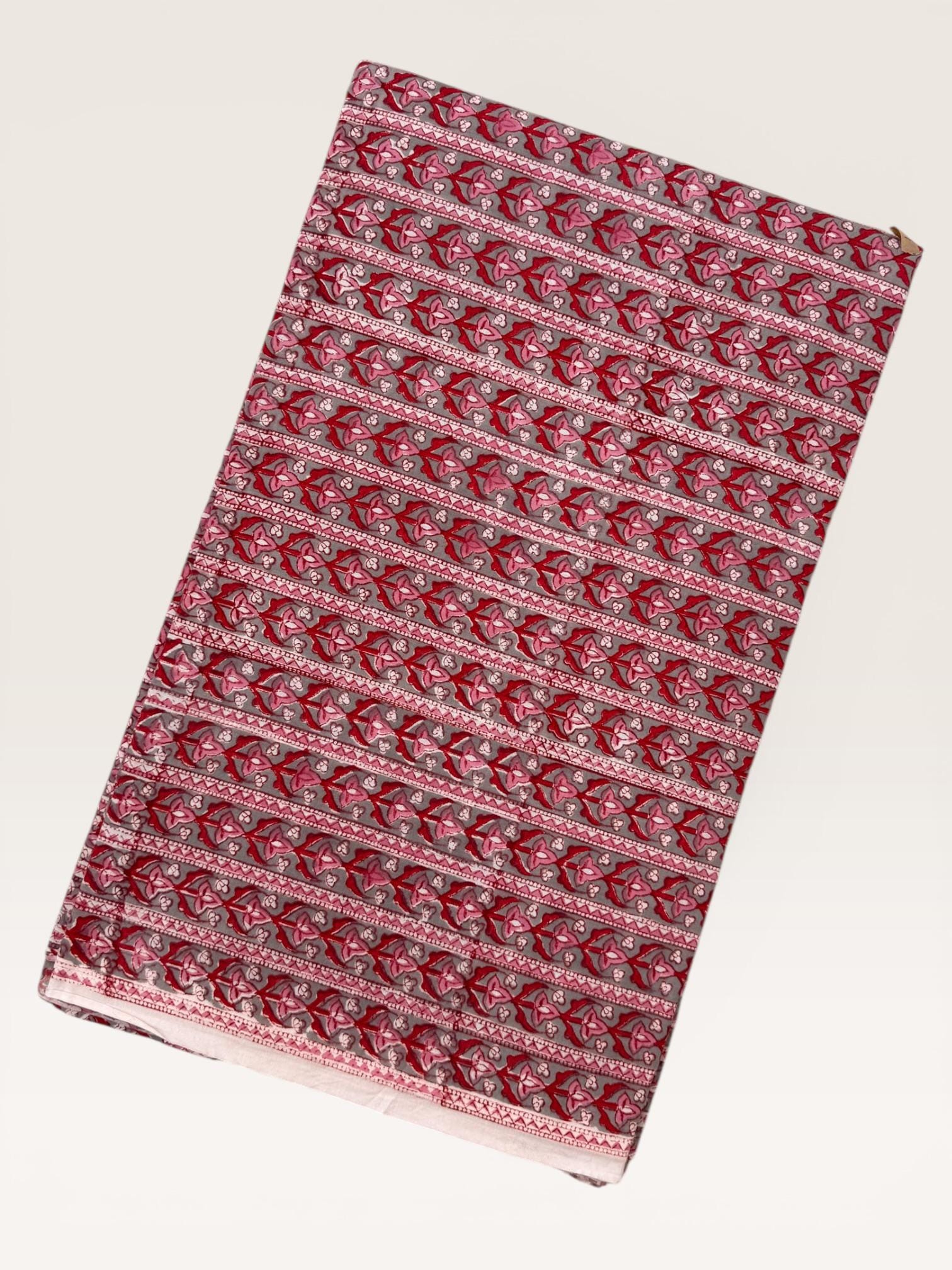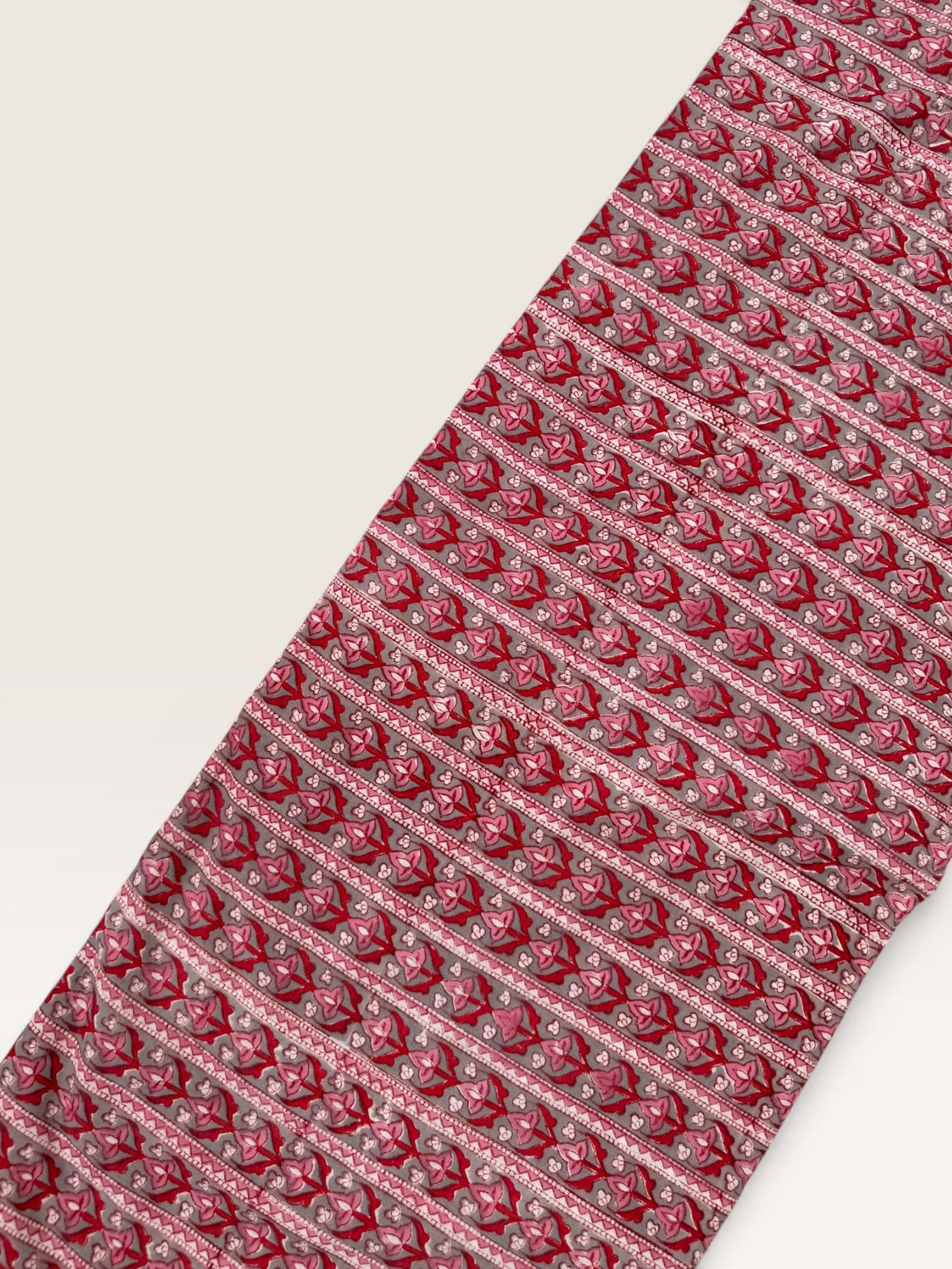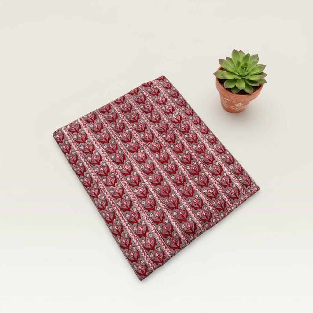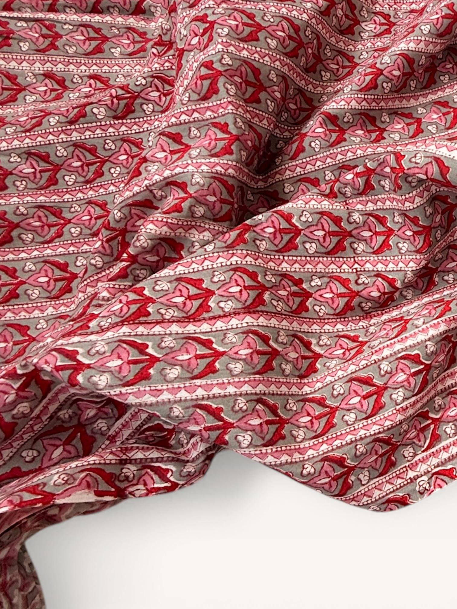 Bring authentic Indian craftsmanship into your sewing projects with this beautiful hand block printed running cotton fabric. Carefully created using traditional wooden blocks by skilled artisans, this fabric features elegant floral stripe patterns inspired by classic Jaipur block printing.