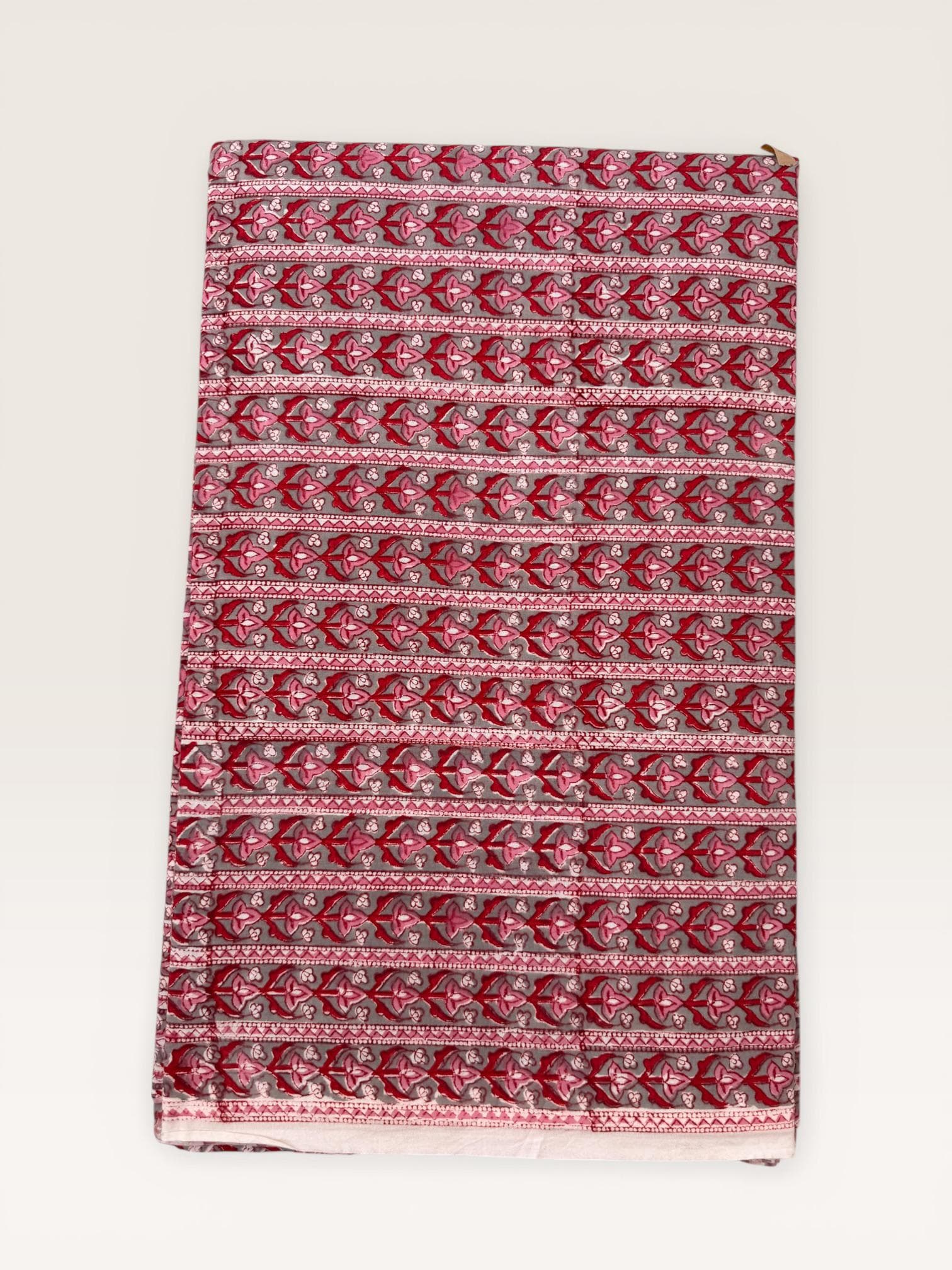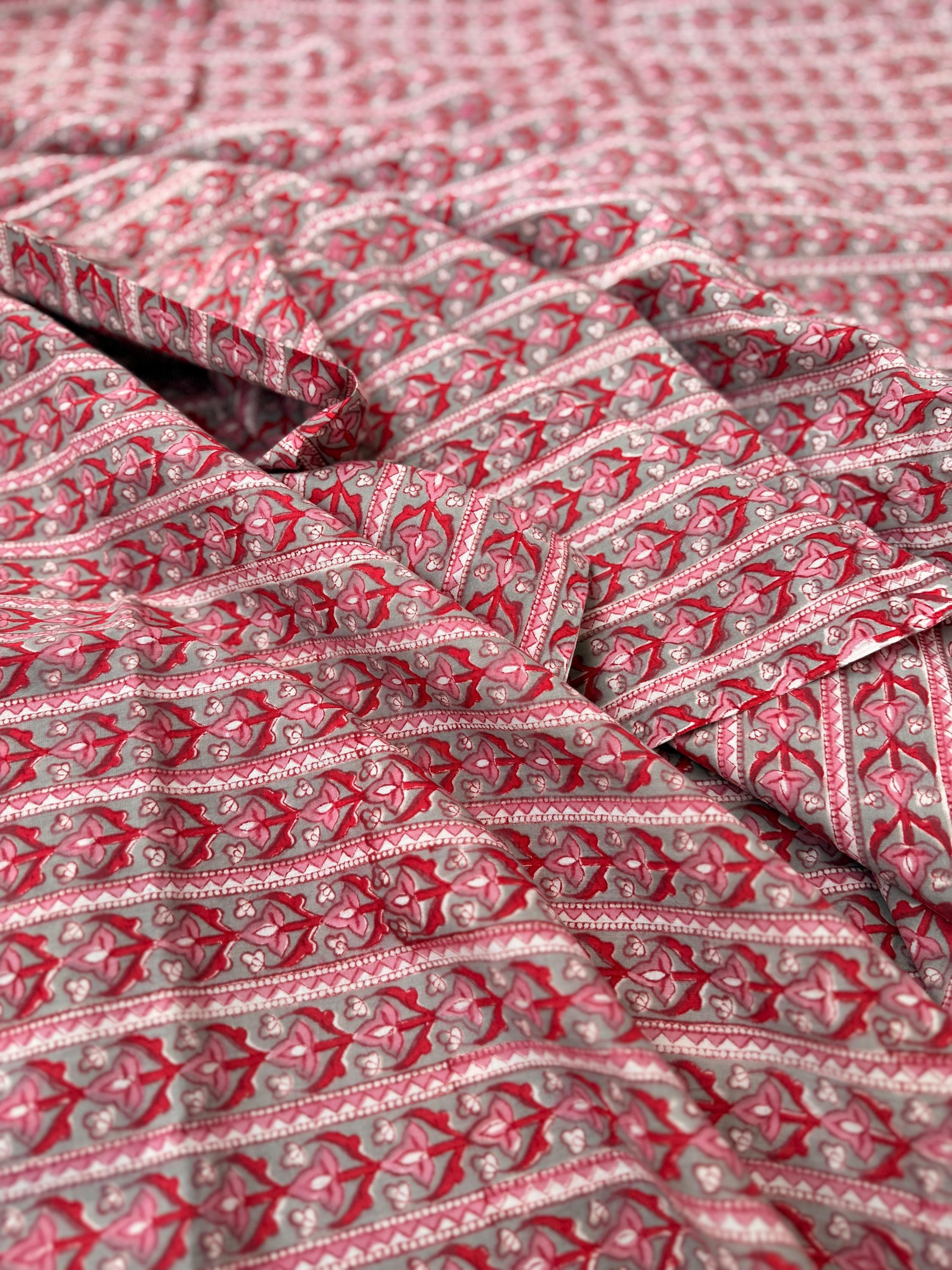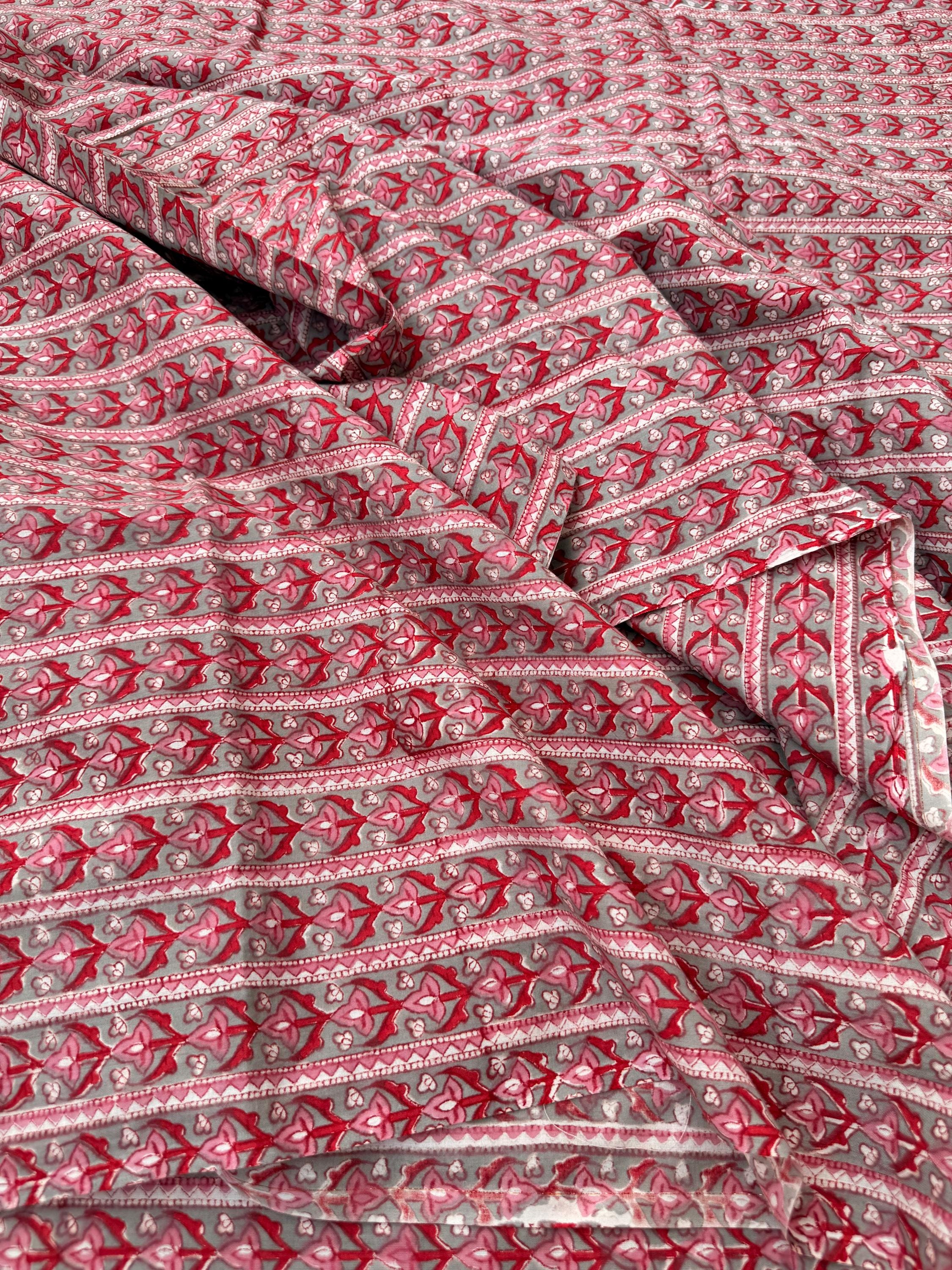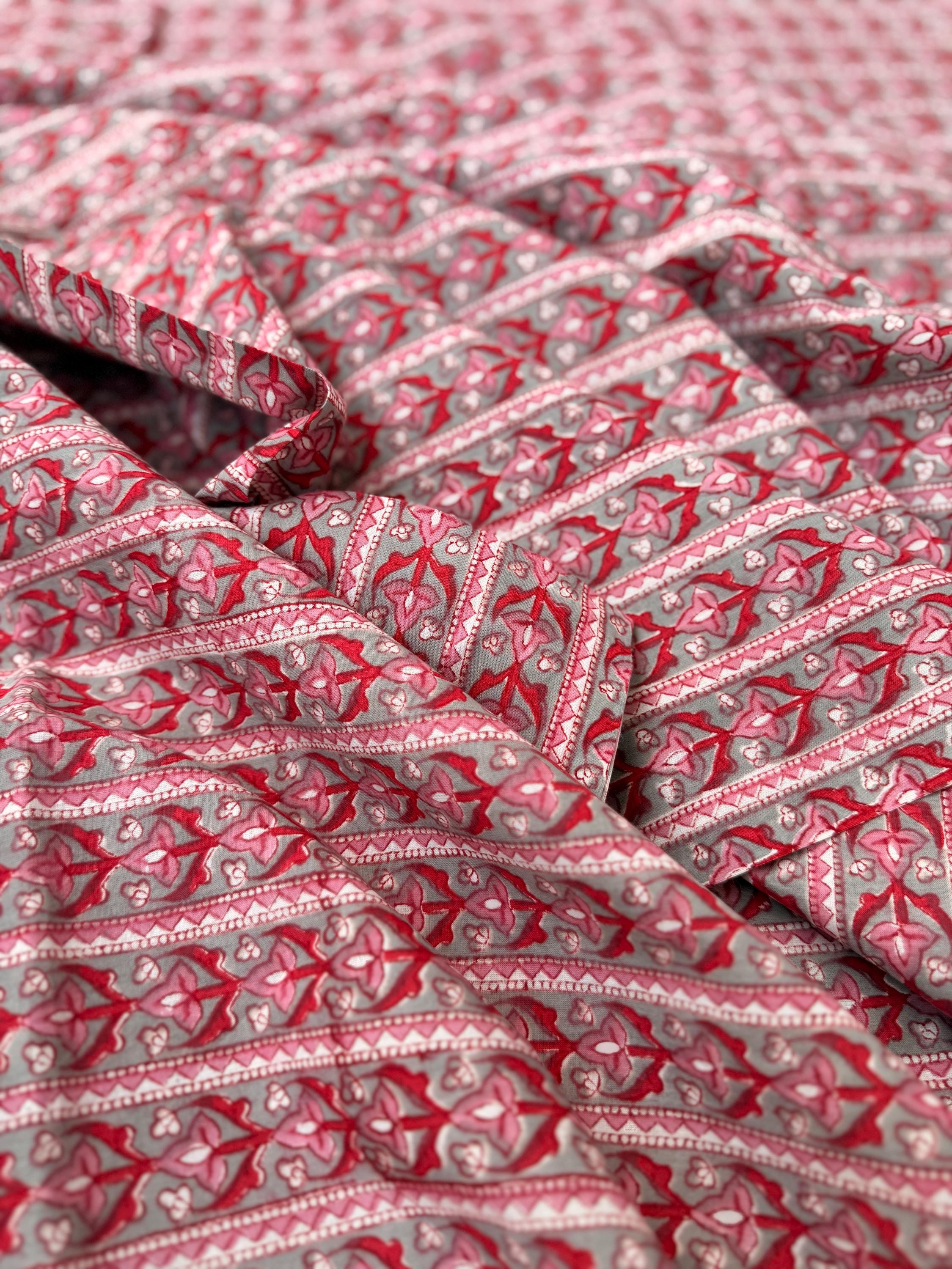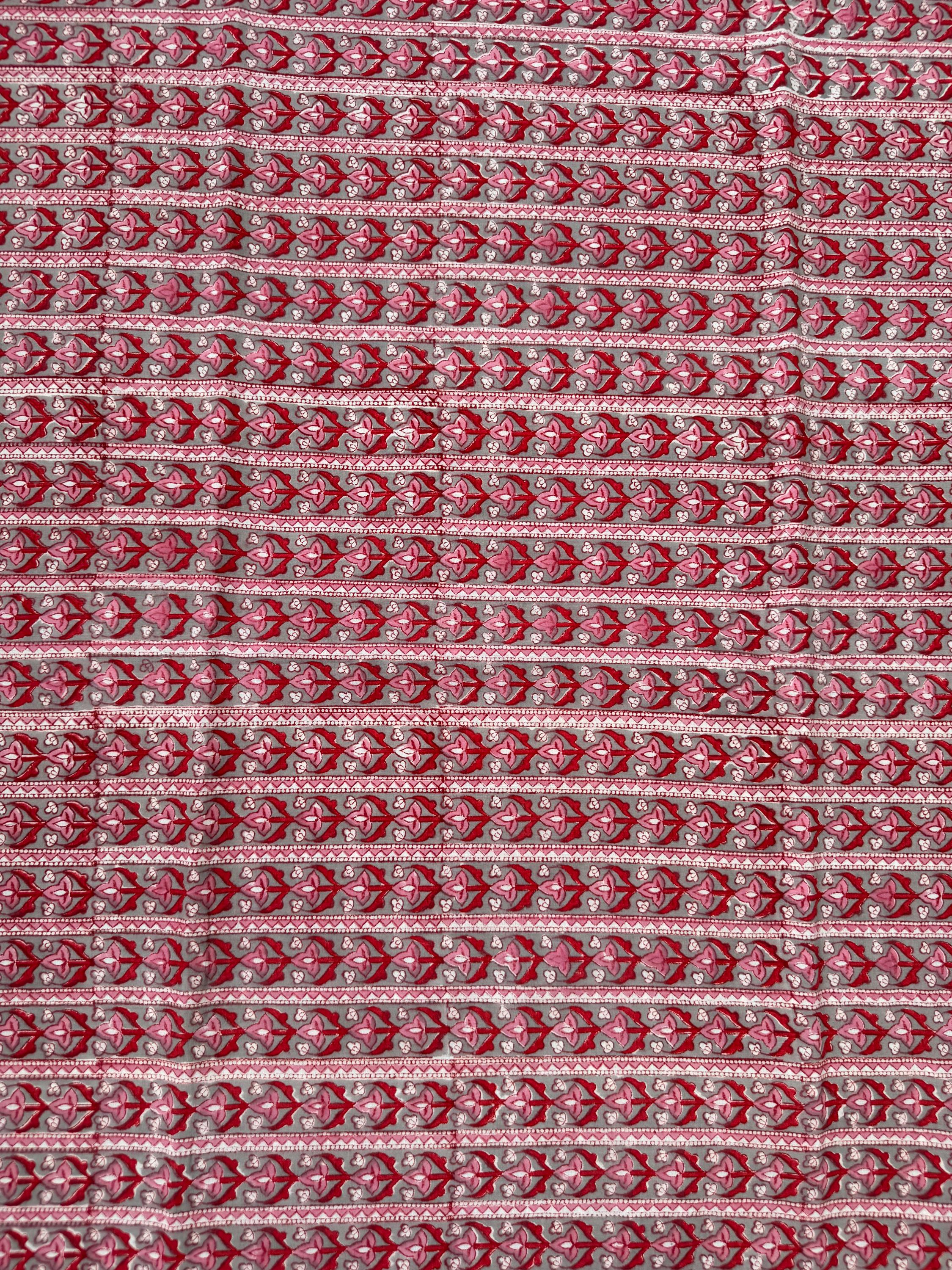 Bring authentic Indian craftsmanship into your sewing projects with this beautiful hand block printed running cotton fabric. Carefully created using traditional wooden blocks by skilled artisans, this fabric features elegant floral stripe patterns inspired by classic Jaipur block printing.