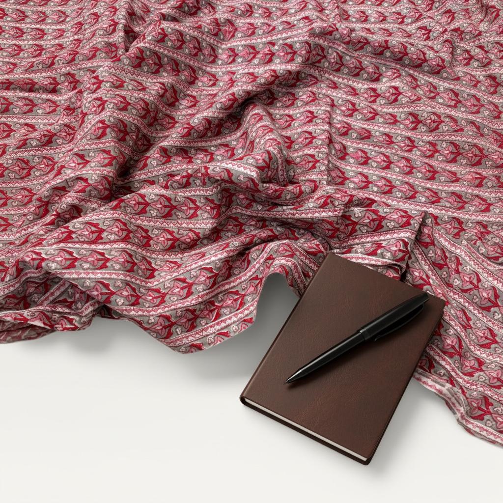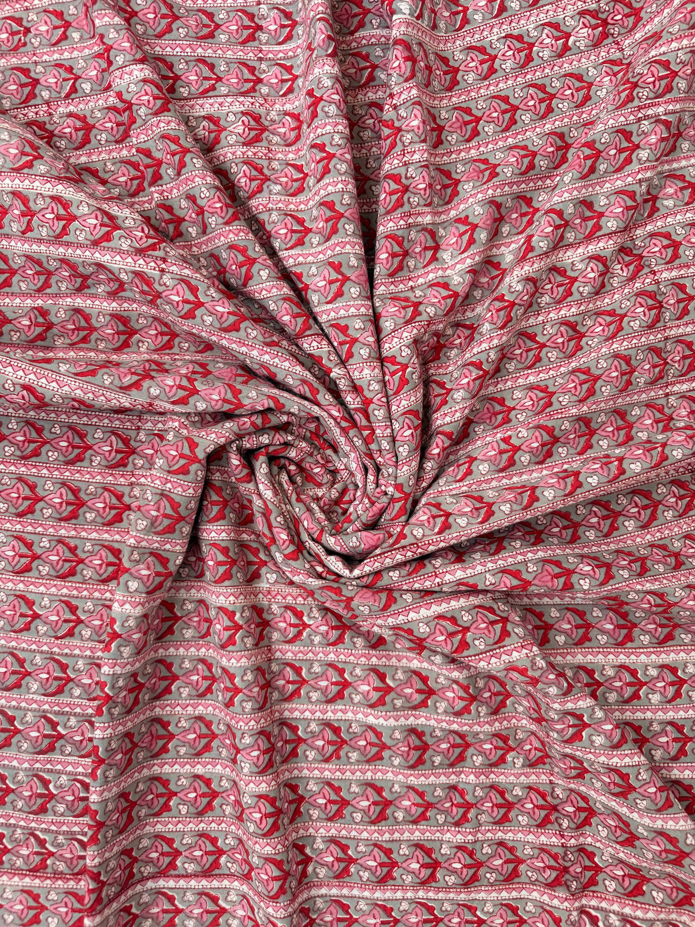 Red Floral Stripe Hand Block Print Cotton Fabric by Yard,Indian Running Fabric, Jaipur Block Print Textile for Dress, Quilting, & DIY Sewing
