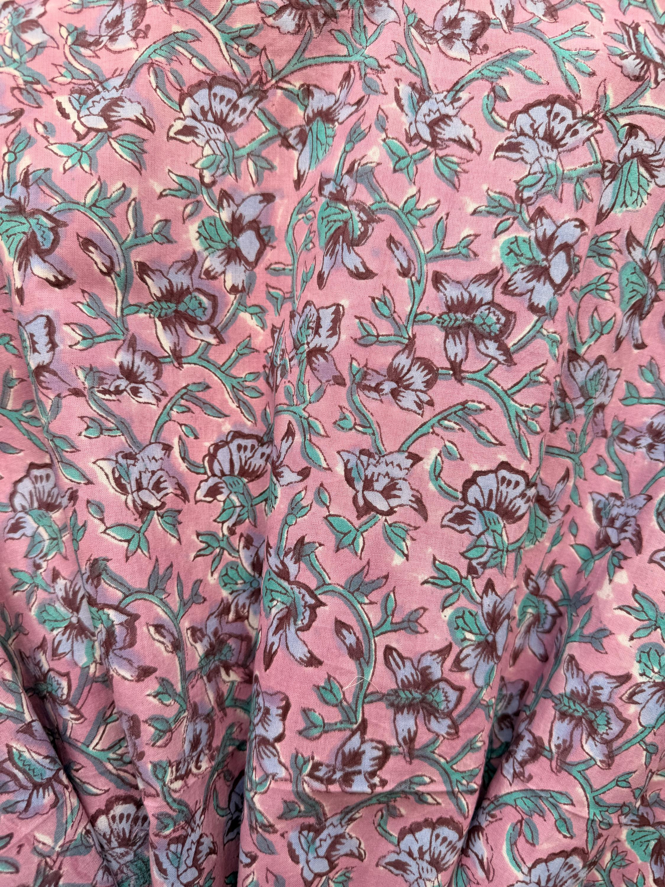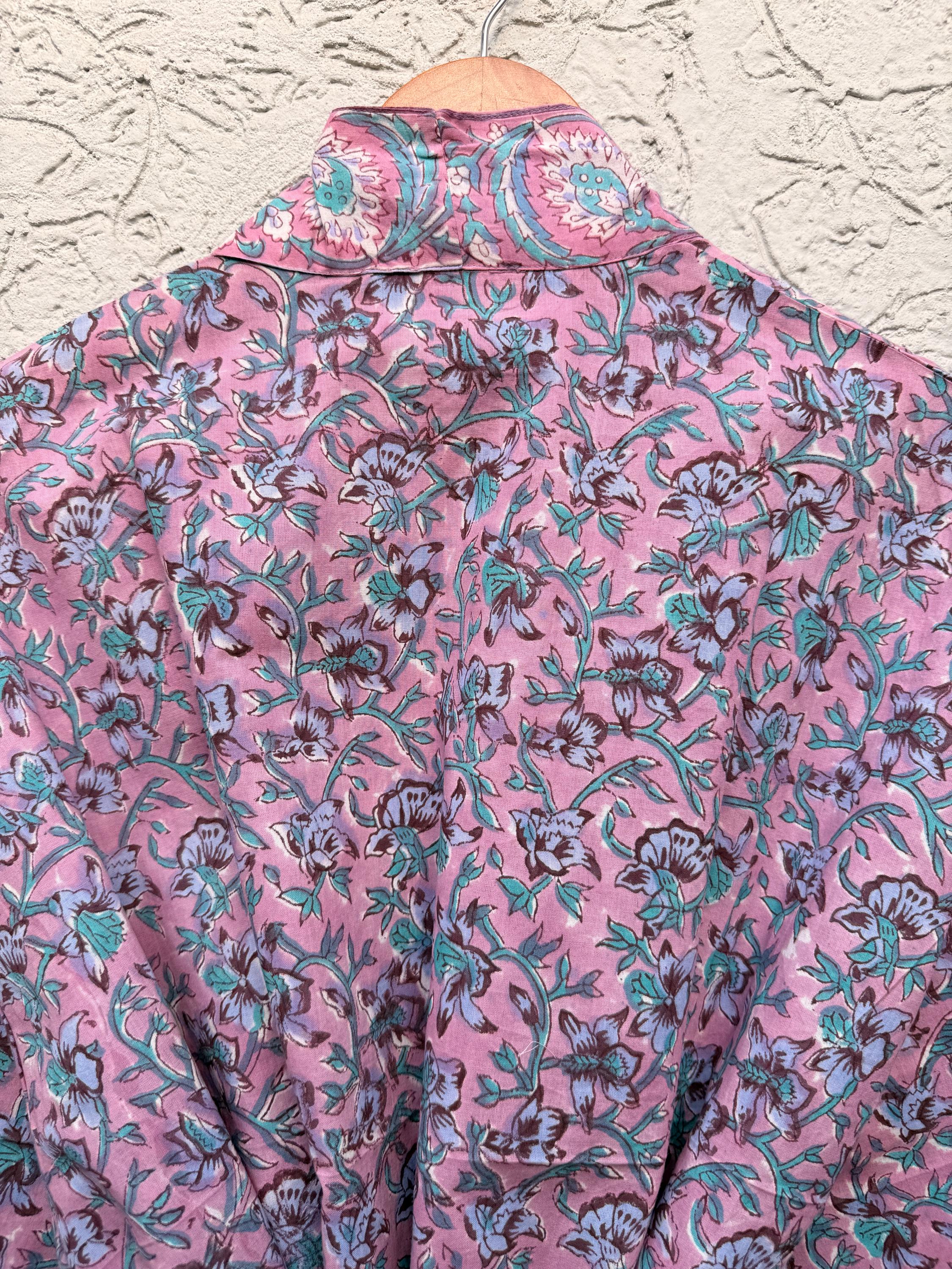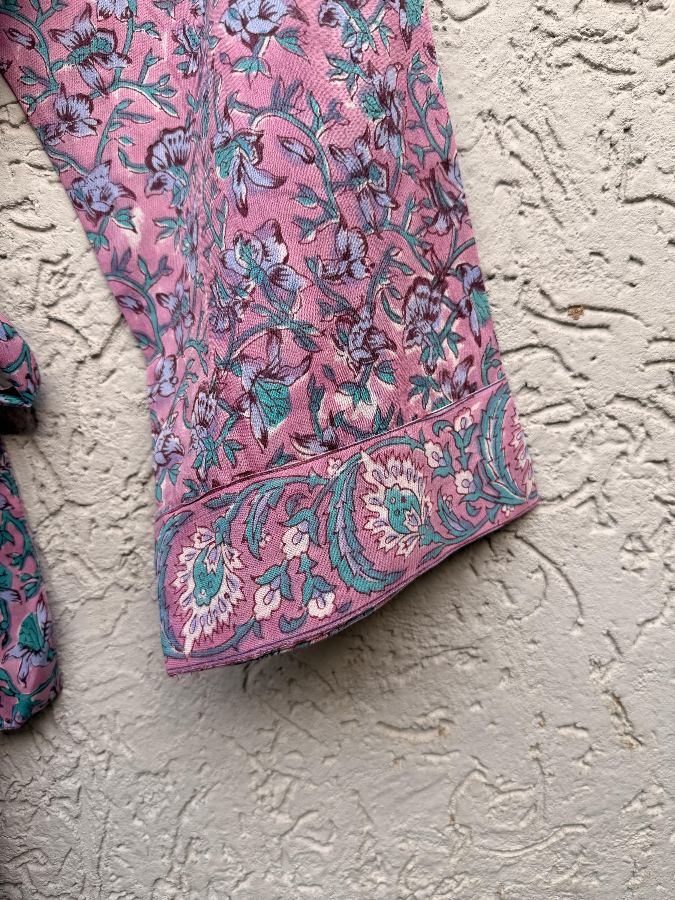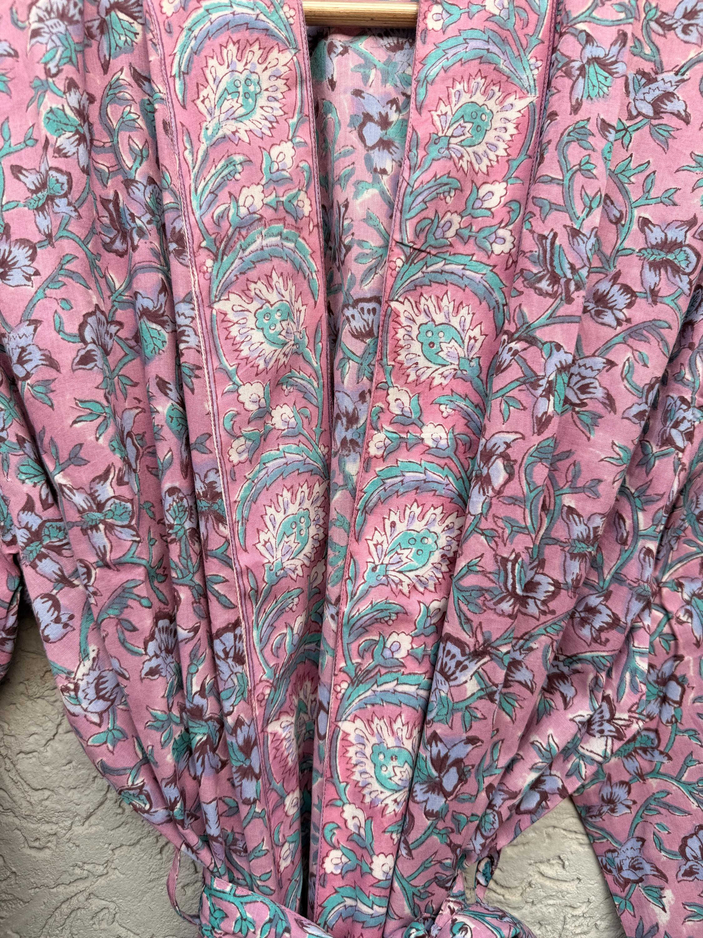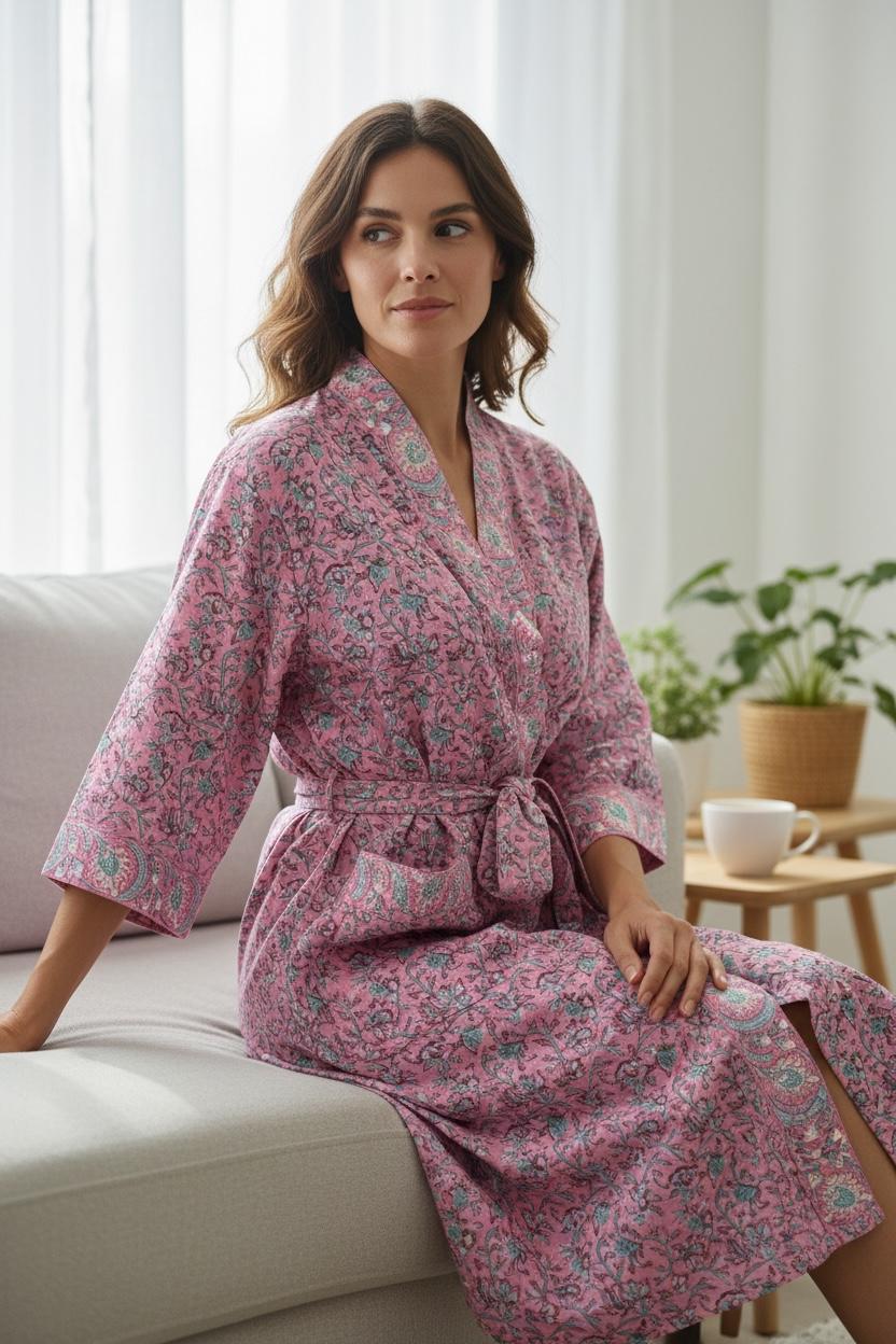 Pink Floral Block Print Cotton Bathrobe | Handmade Indian Robe | Lightweight Kimono Robe | Bridal Getting Ready Robe | Summer Loungewear