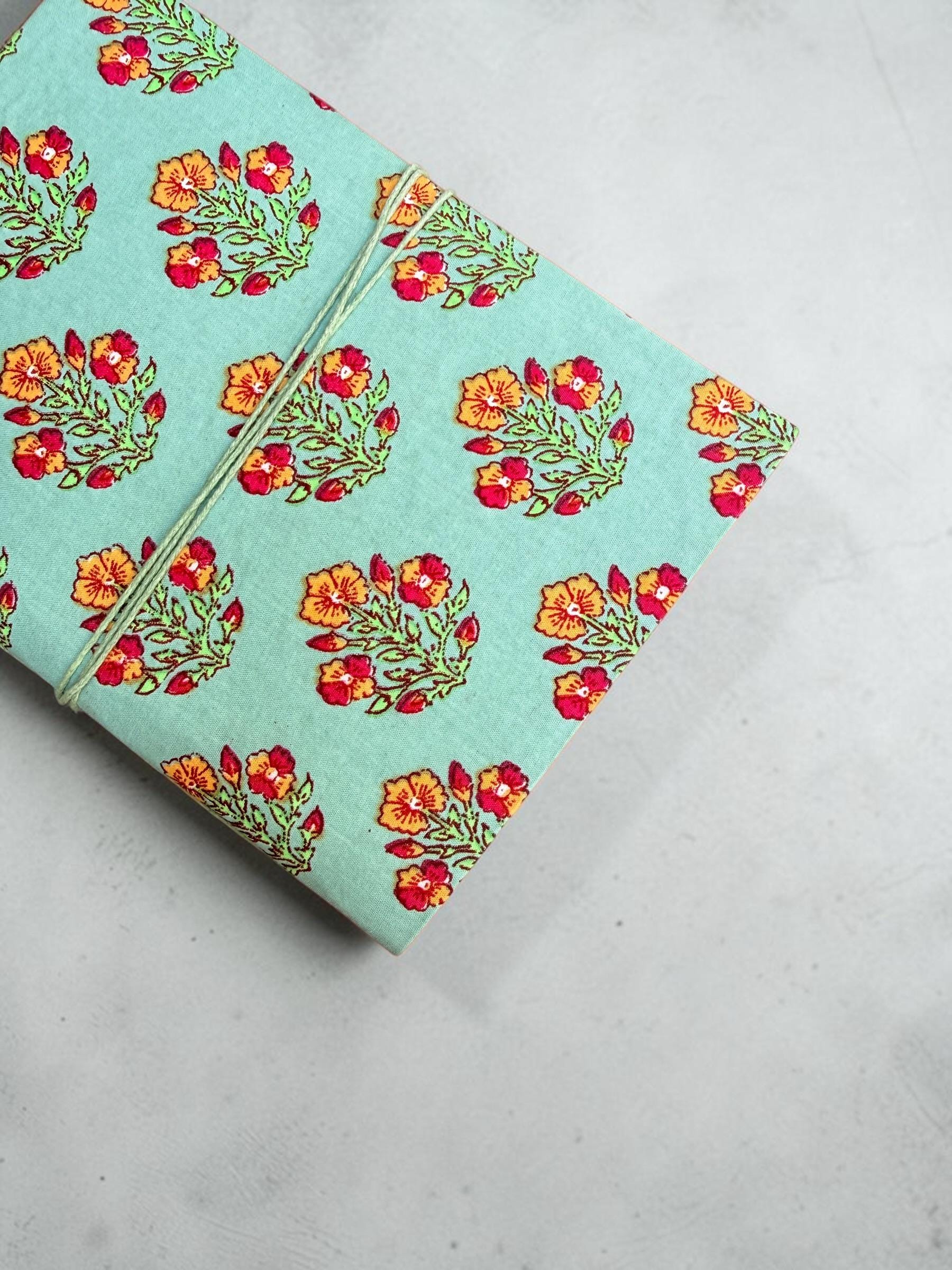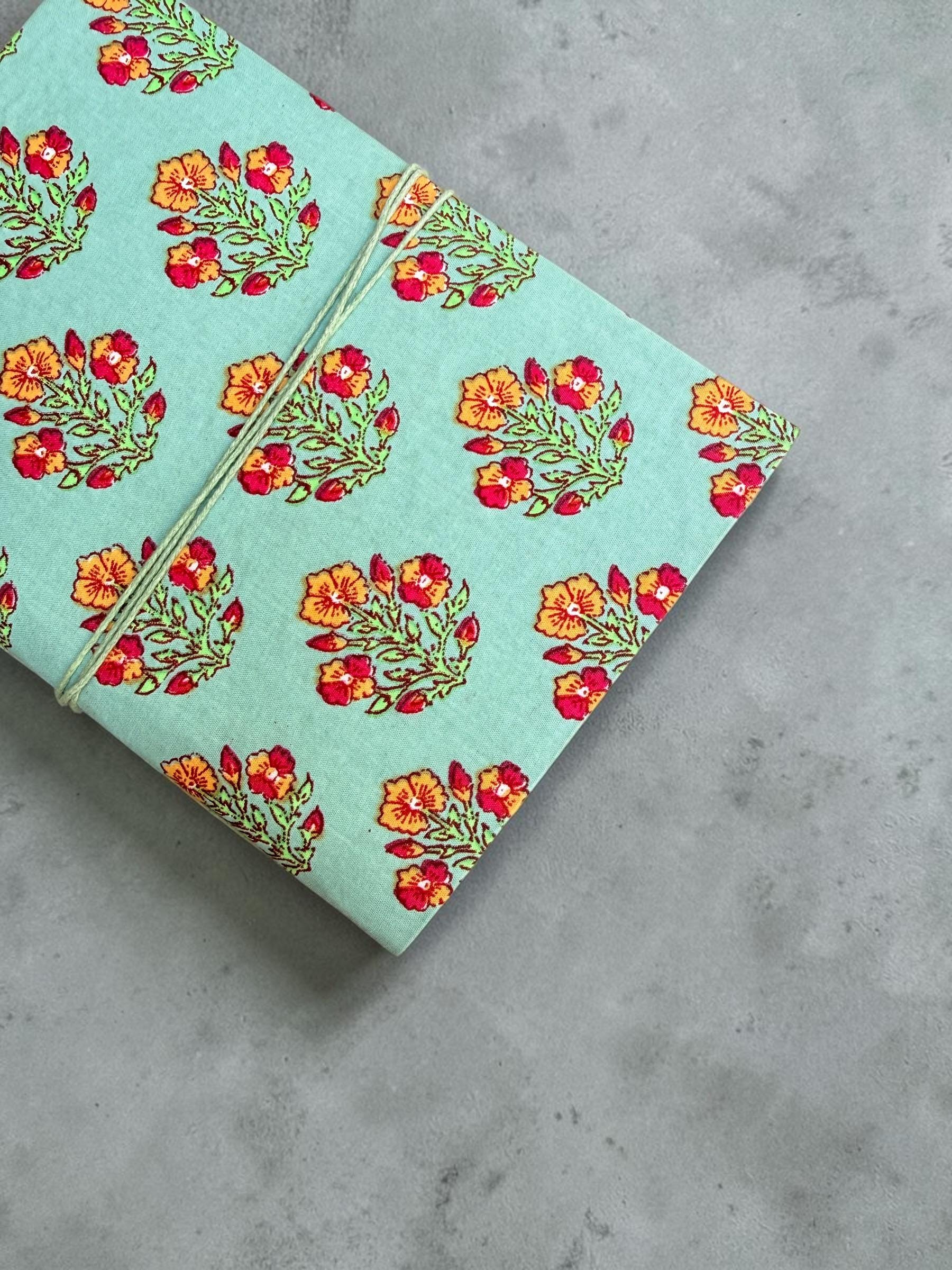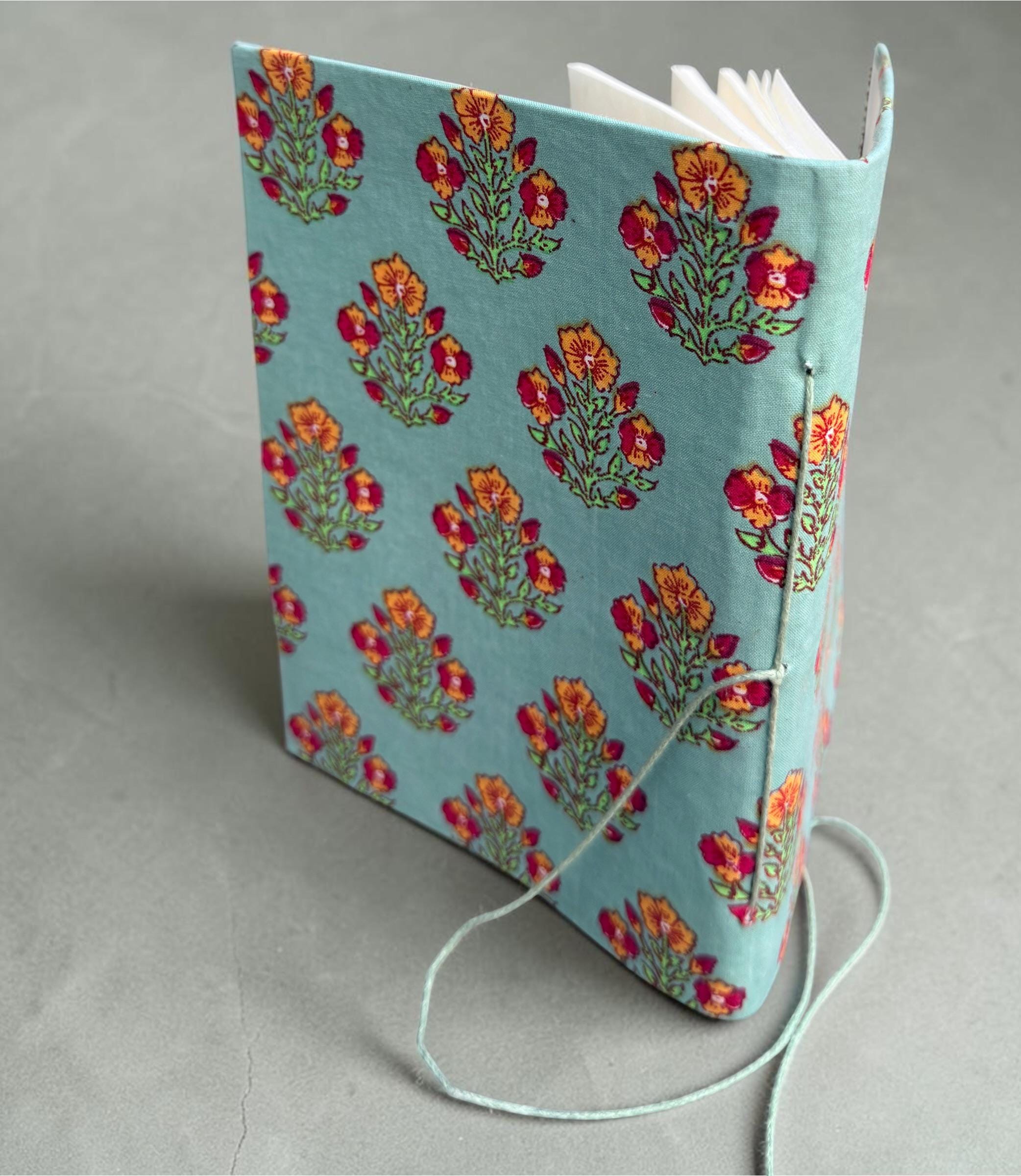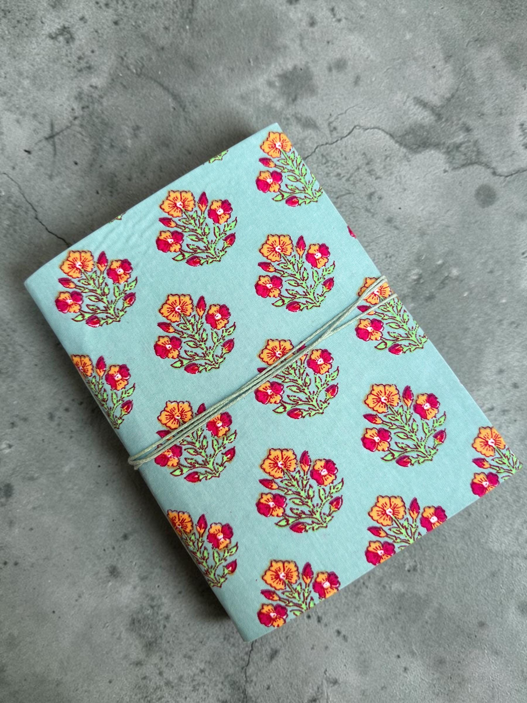 Handmade Floral Block Print Diary | Cotton Fabric Journal | Light Blue Notebook | Travel Journal | Artisan Handmade Gift for Writers