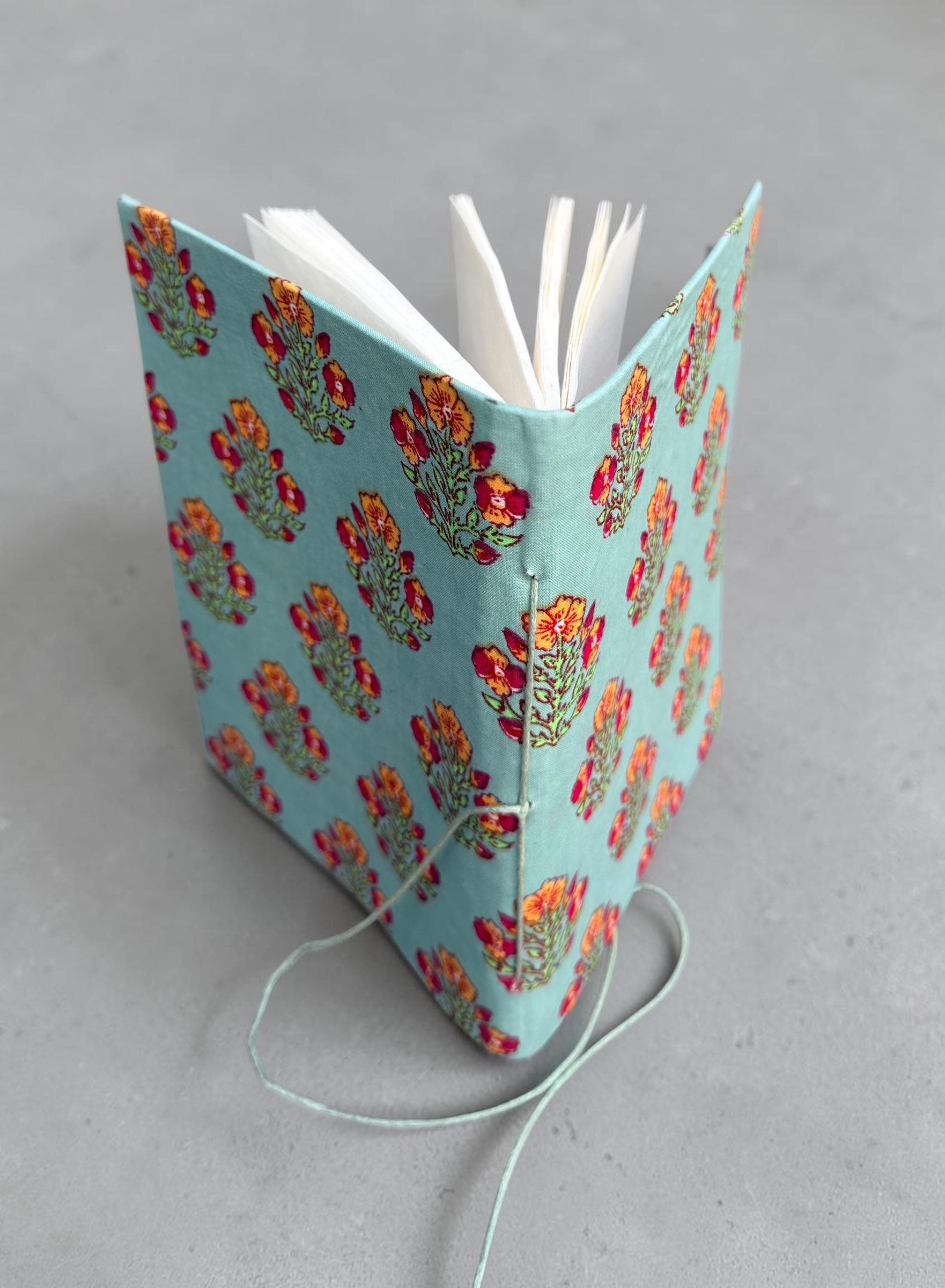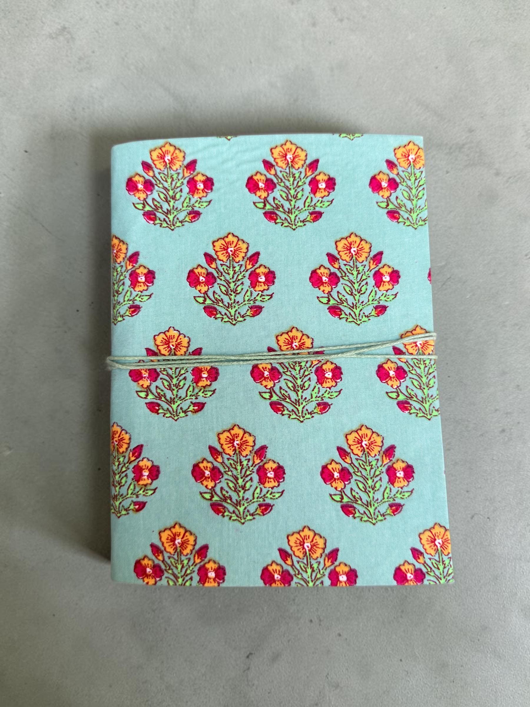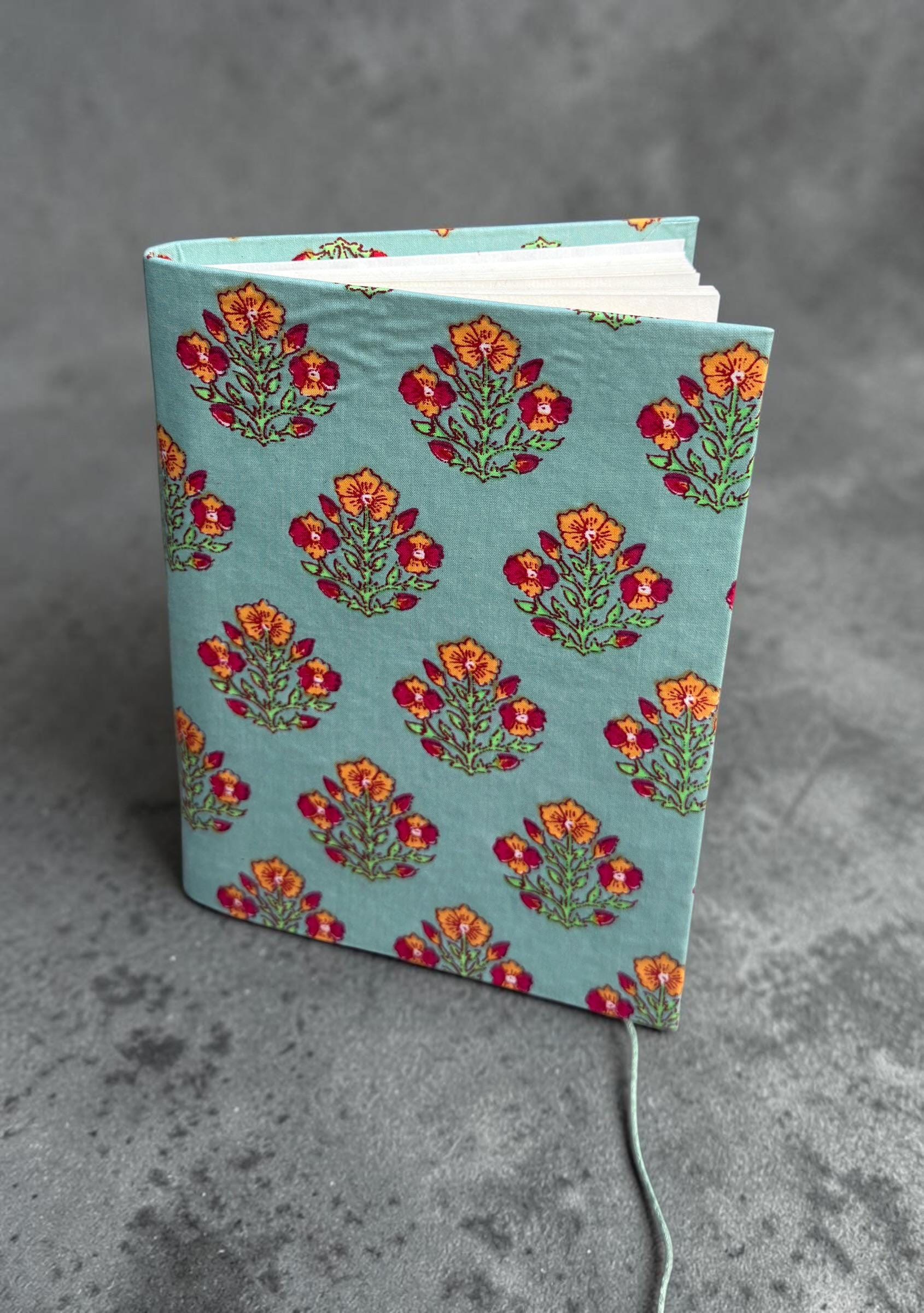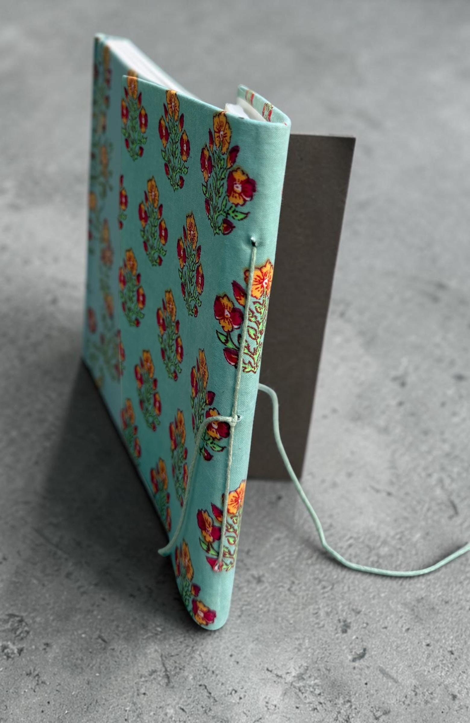 Handmade Floral Block Print Diary | Cotton Fabric Journal | Light Blue Notebook | Travel Journal | Artisan Handmade Gift for Writers