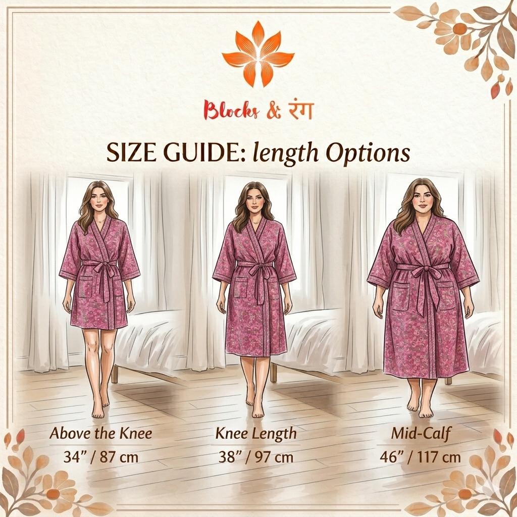 Experience comfort with a touch of nature in this beautifully handcrafted block print cotton bathrobe. Made using traditional hand block printing techniques, this robe reflects timeless artistry while offering modern-day comfort.