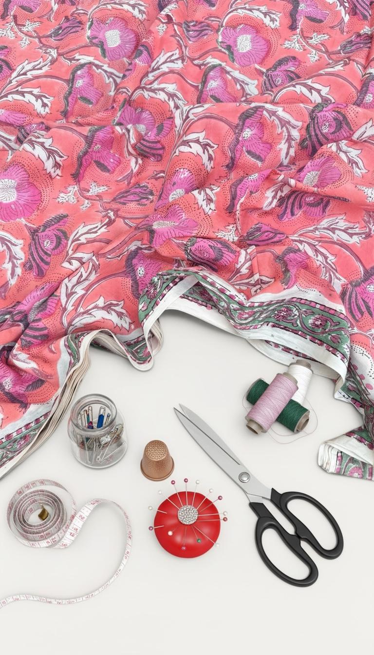 Made from high-quality, breathable cotton, this fabric is lightweight, soft on the skin, and easy to work with—ideal for both beginners and professional makers. The intricate hand-printed detailing and subtle imperfections highlight its authentic handmade charm, making each piece truly unique.