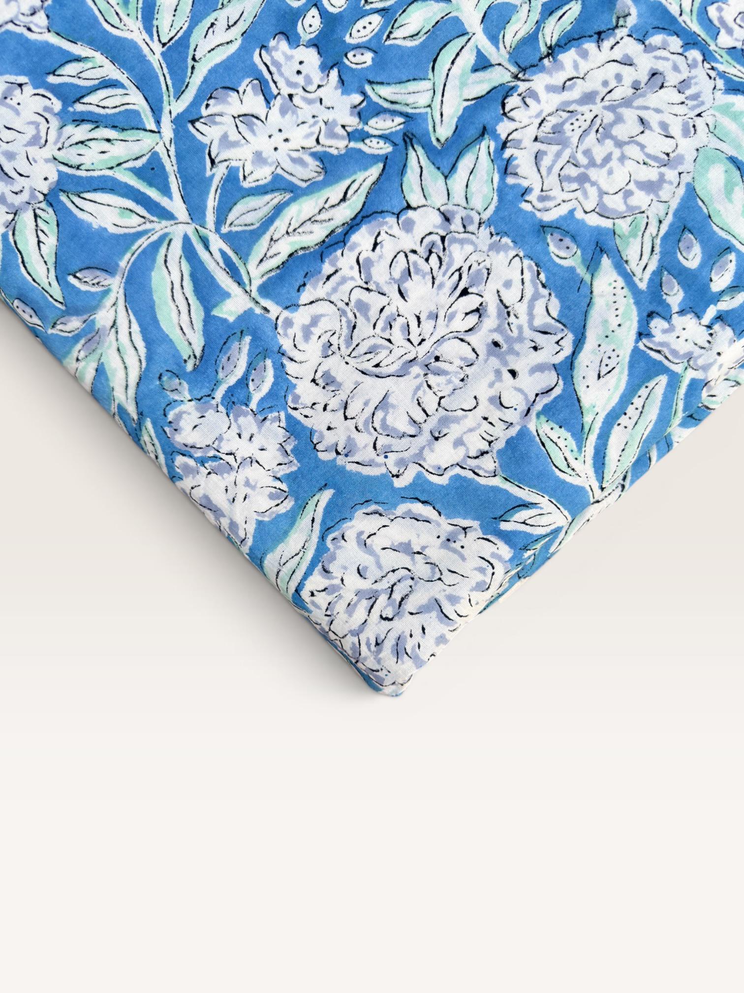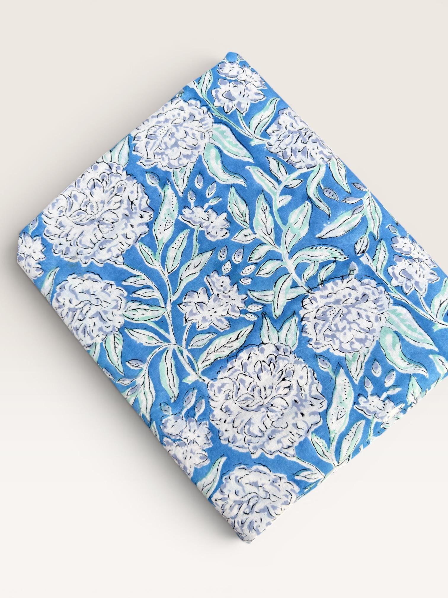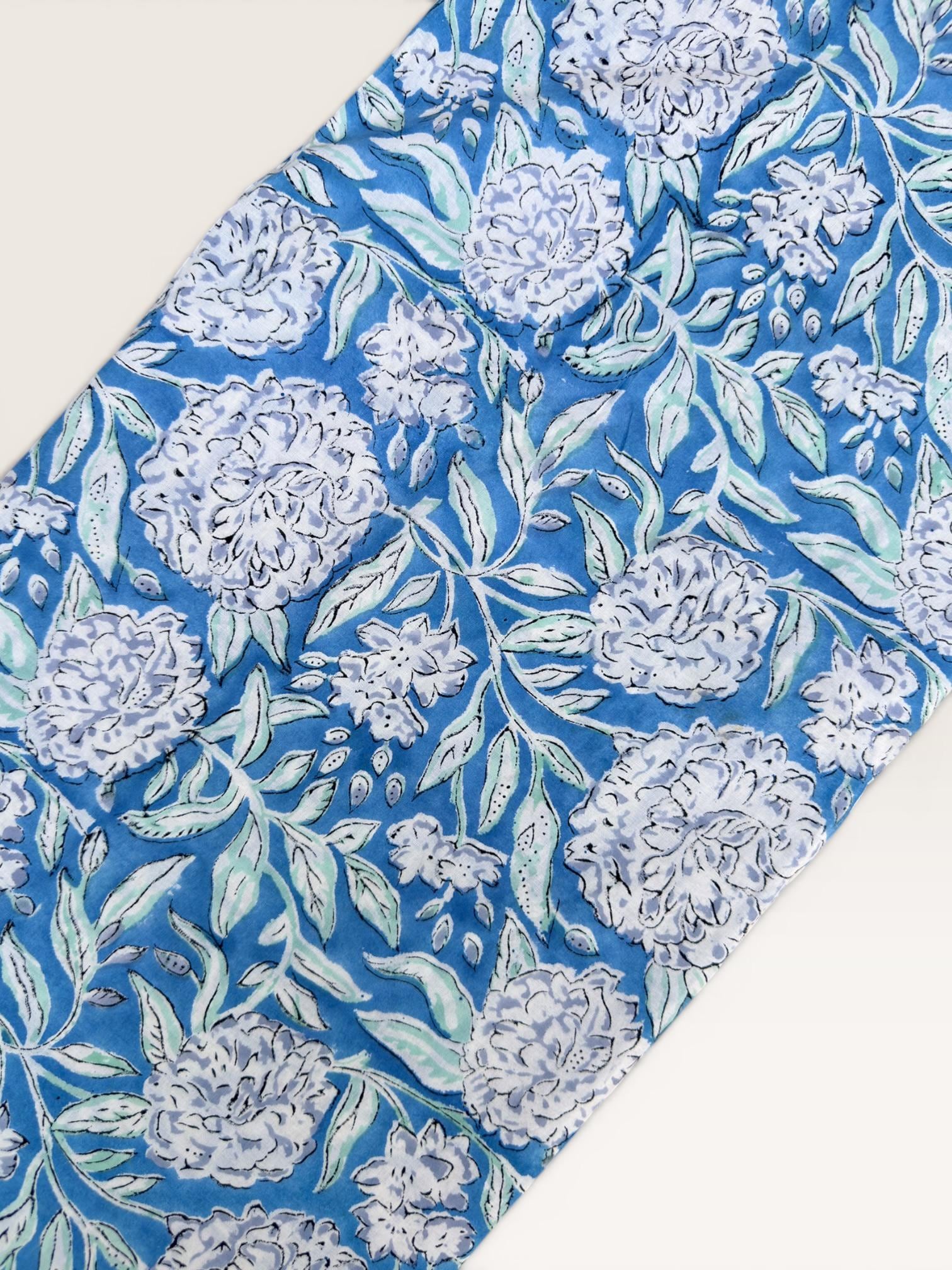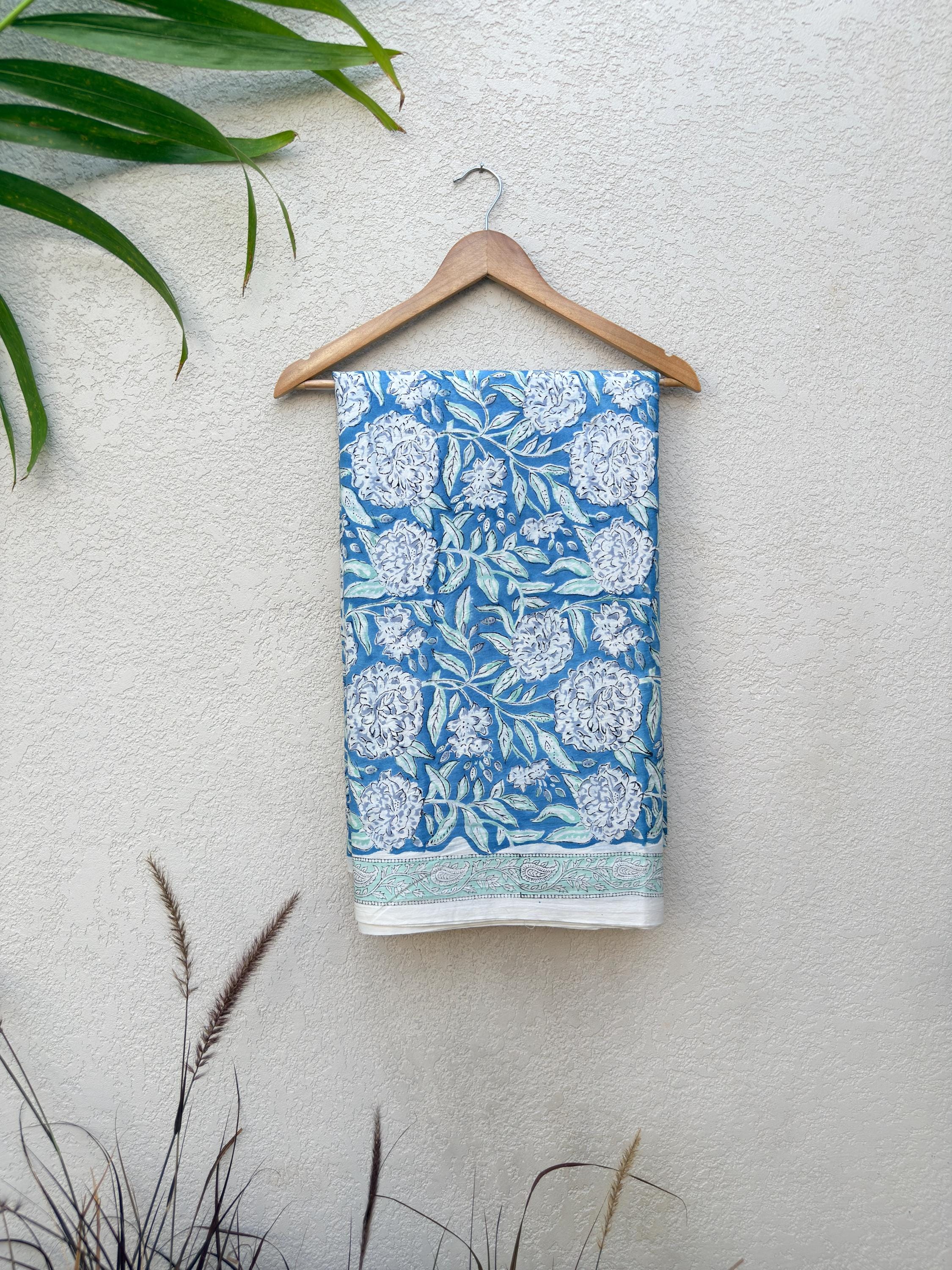 Bring timeless elegance to your sewing projects with this beautiful hand block printed cotton fabric in a refreshing blue color palette. Featuring intricate floral motifs in shades of indigo, sky blue, and soft mint green, this running fabric is perfect for creating breezy garments and stylish home décor.