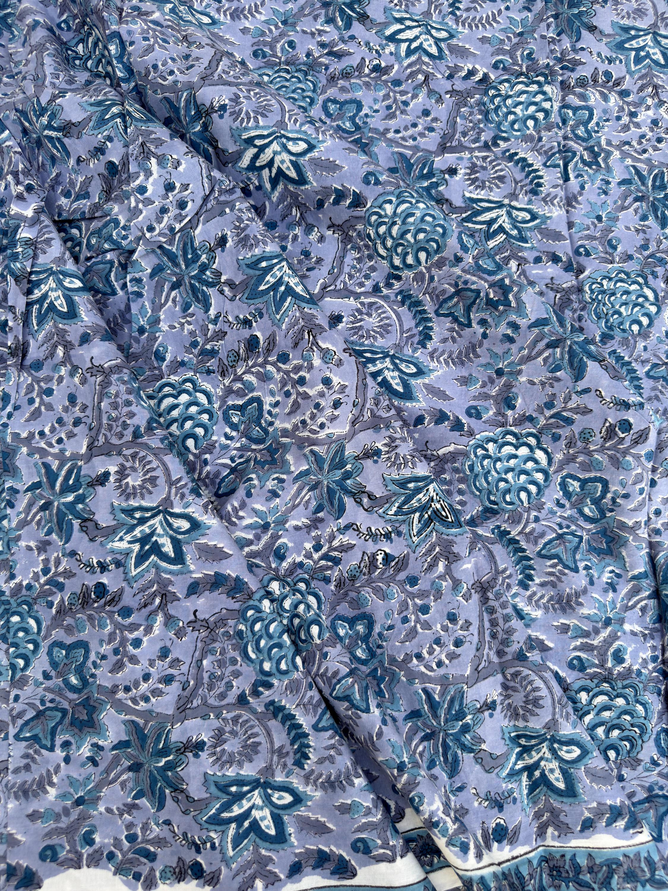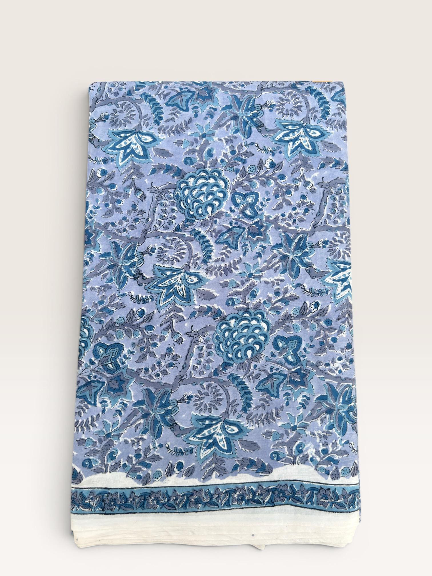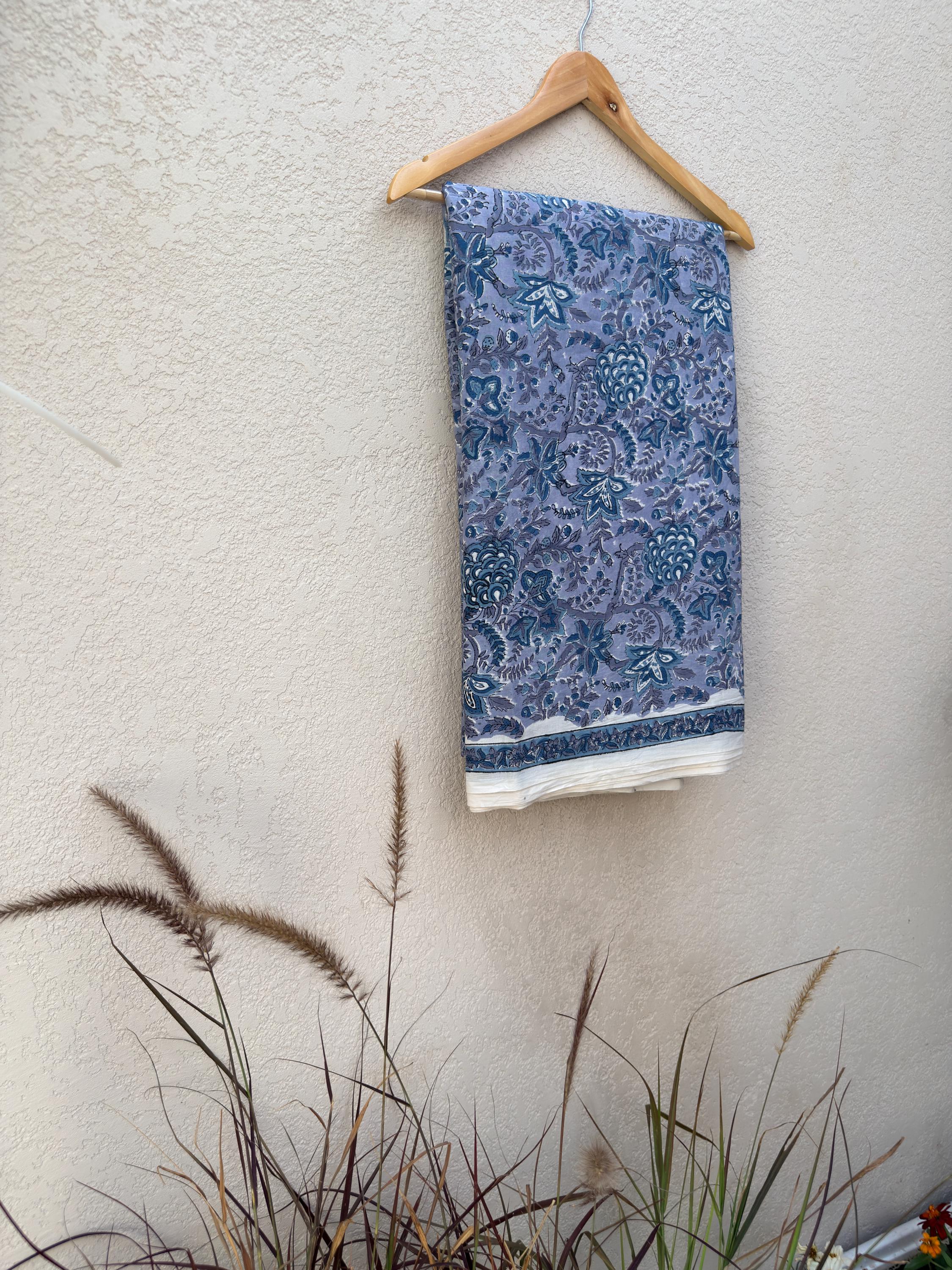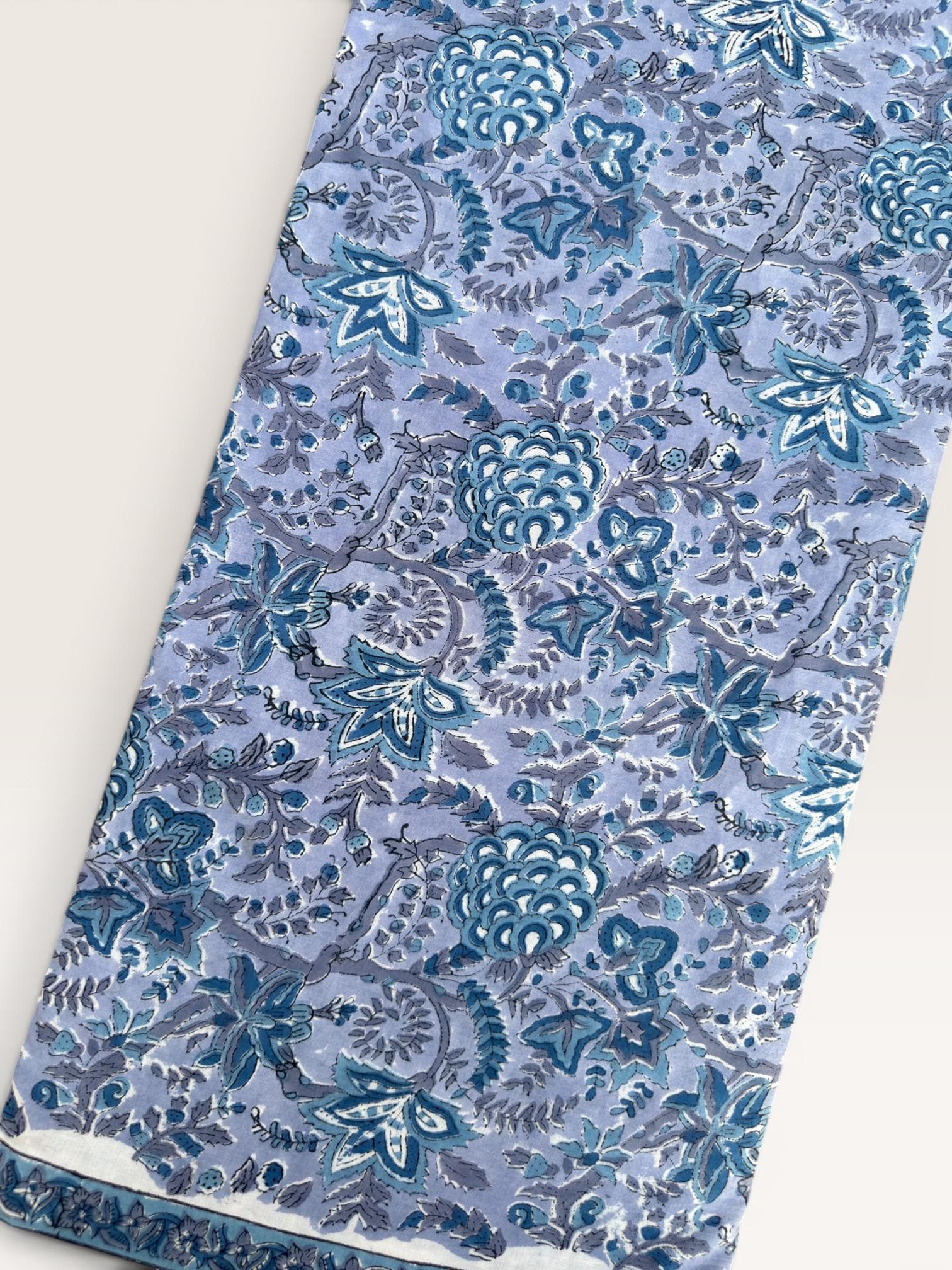 Each piece is carefully handcrafted using traditional block printing techniques, giving it a unique charm and artisanal touch. The delicate floral design paired with a detailed border adds sophistication and versatility to the fabric.