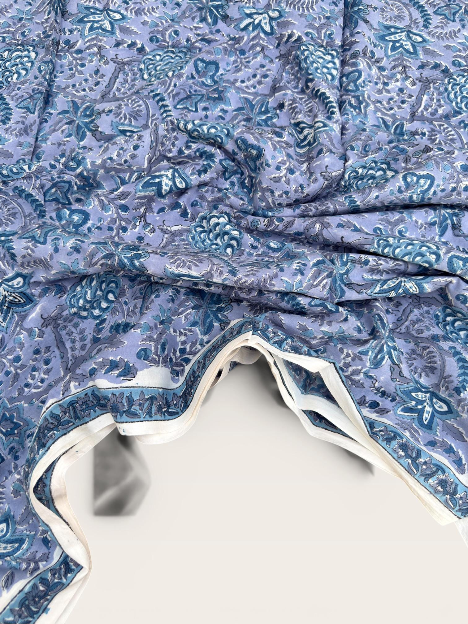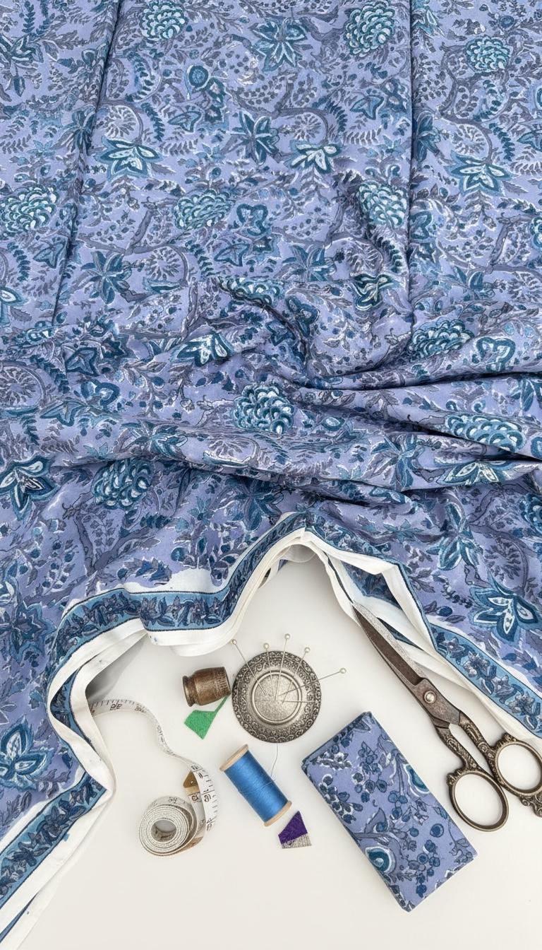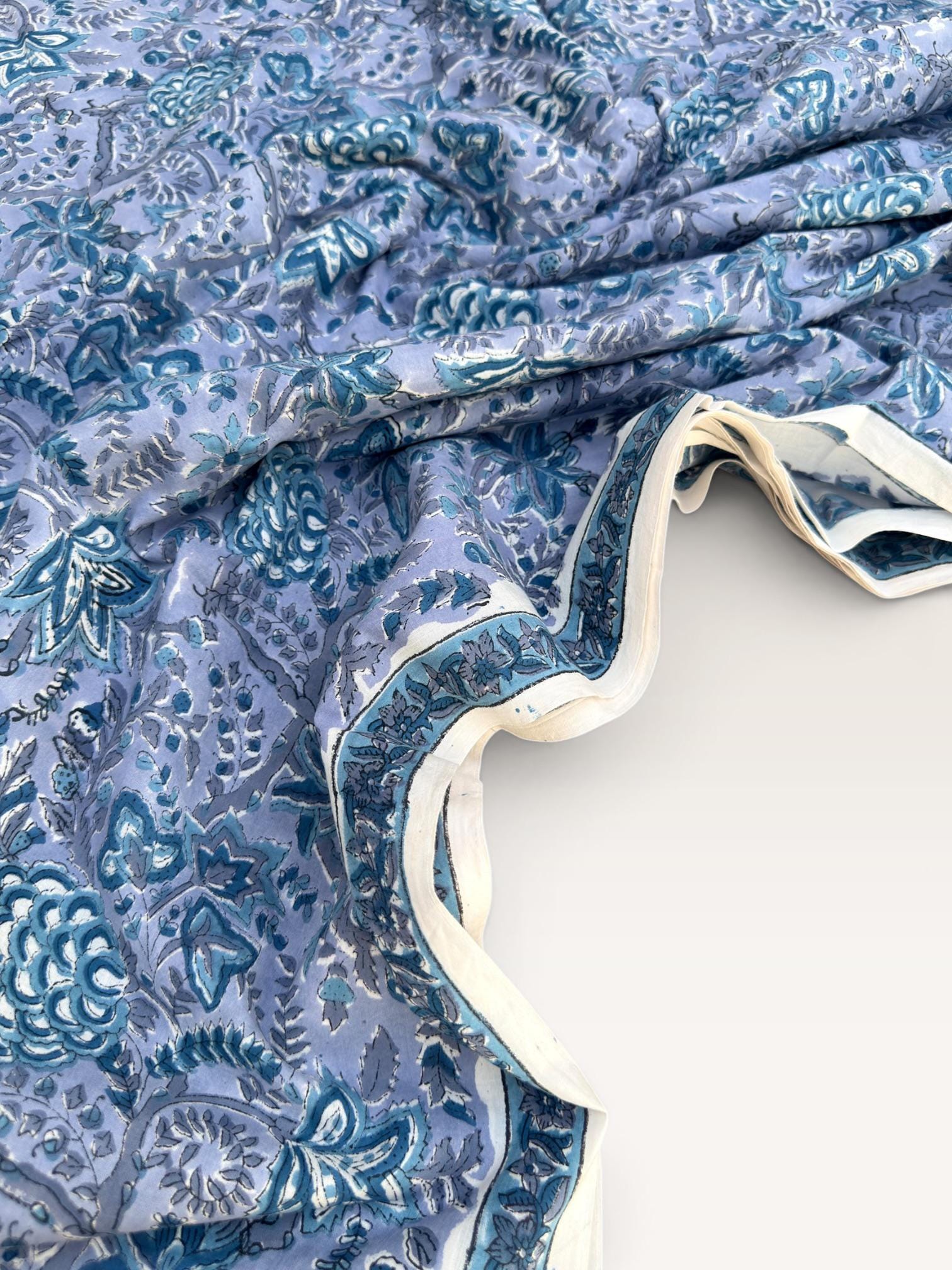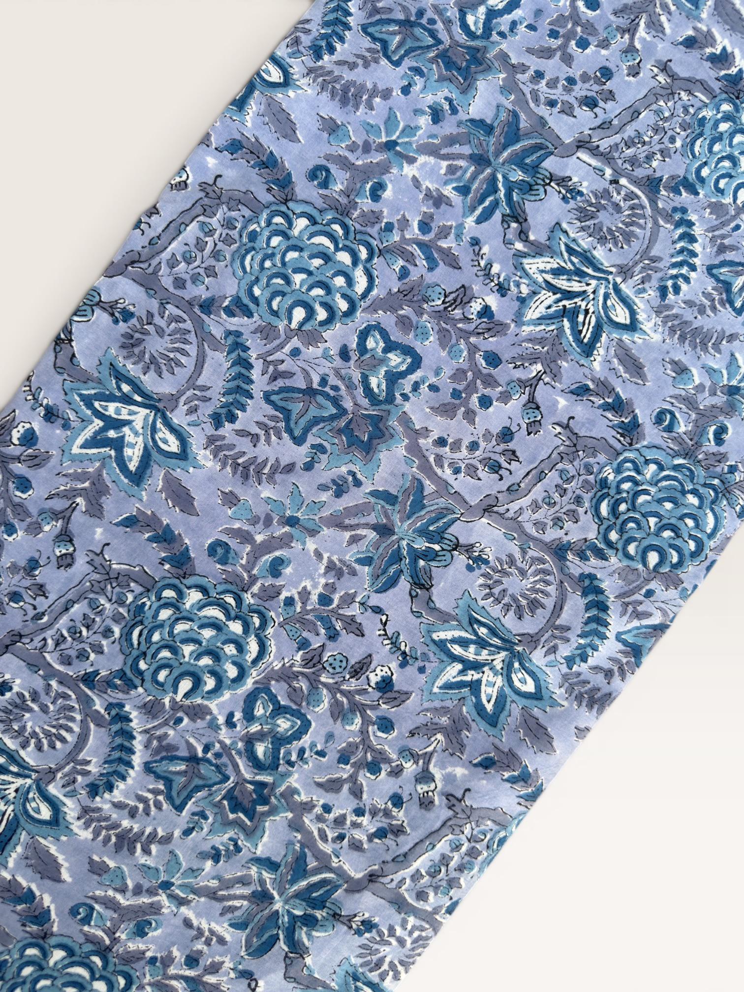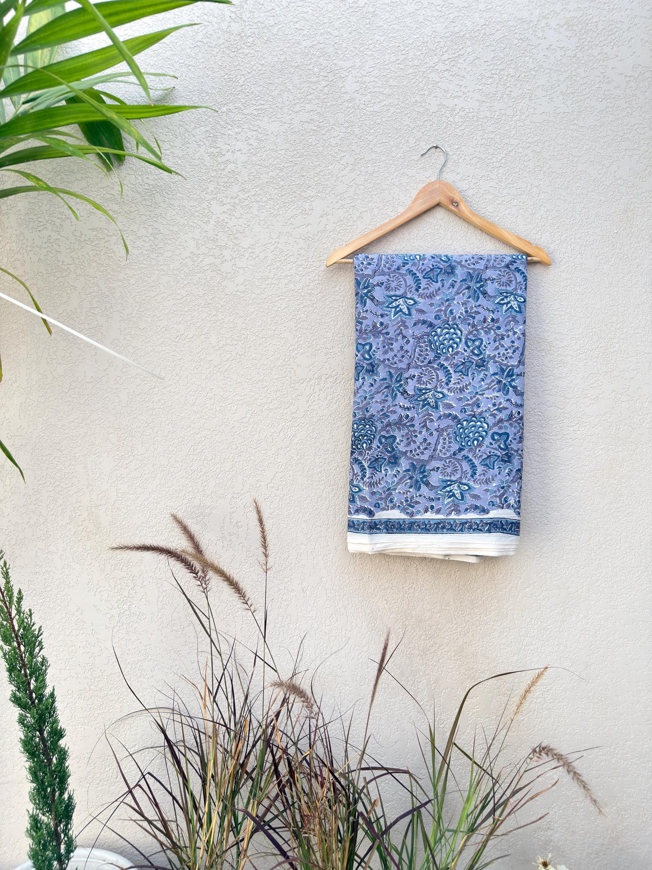 Each piece is carefully handcrafted using traditional block printing techniques, giving it a unique charm and artisanal touch. The delicate floral design paired with a detailed border adds sophistication and versatility to the fabric.